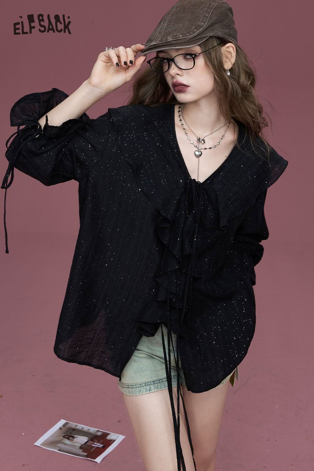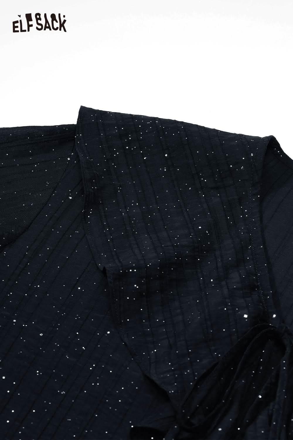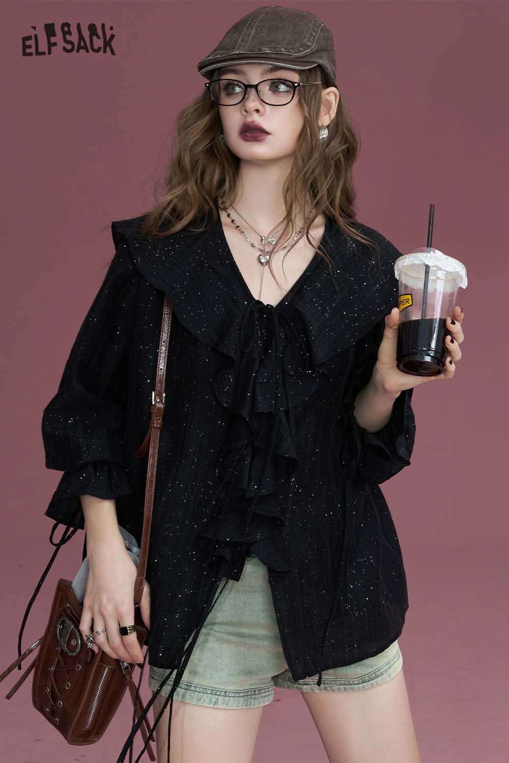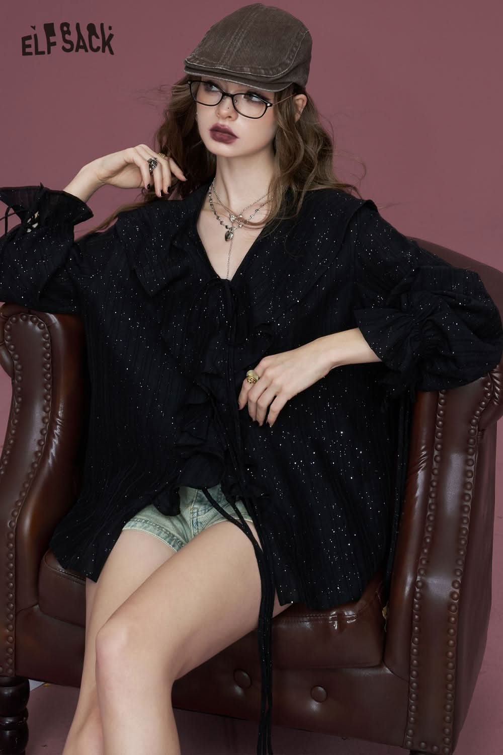 Chiffon Flounce Hem Blouse Silver Foil Print