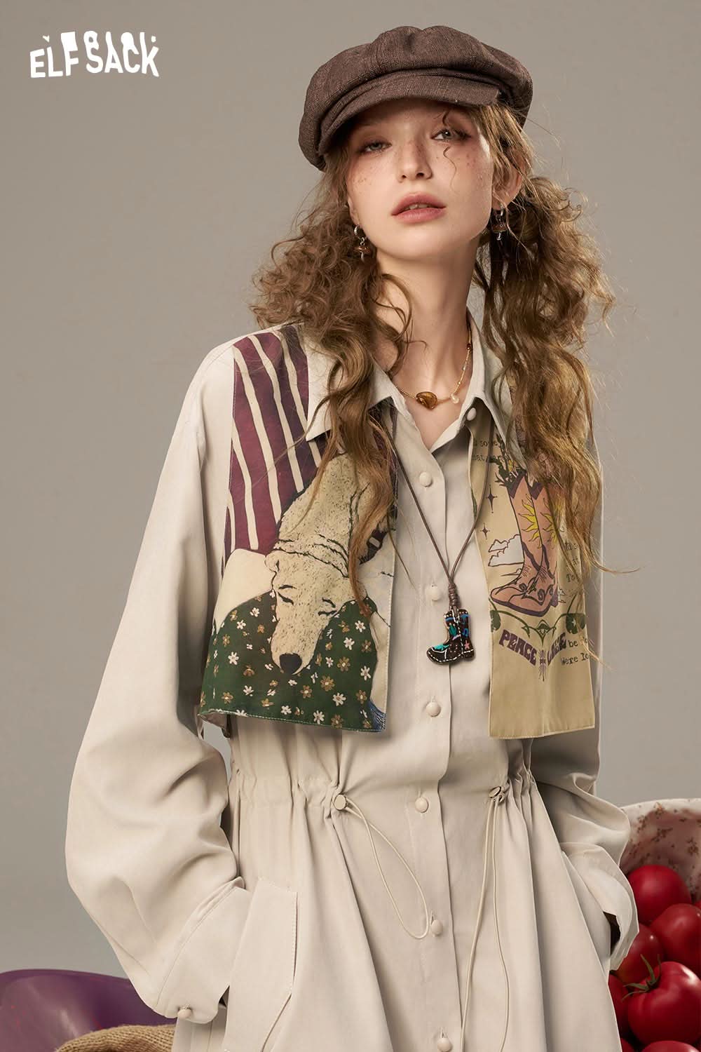 Soft Multiple Buttons Waist Drawstring Long Dress