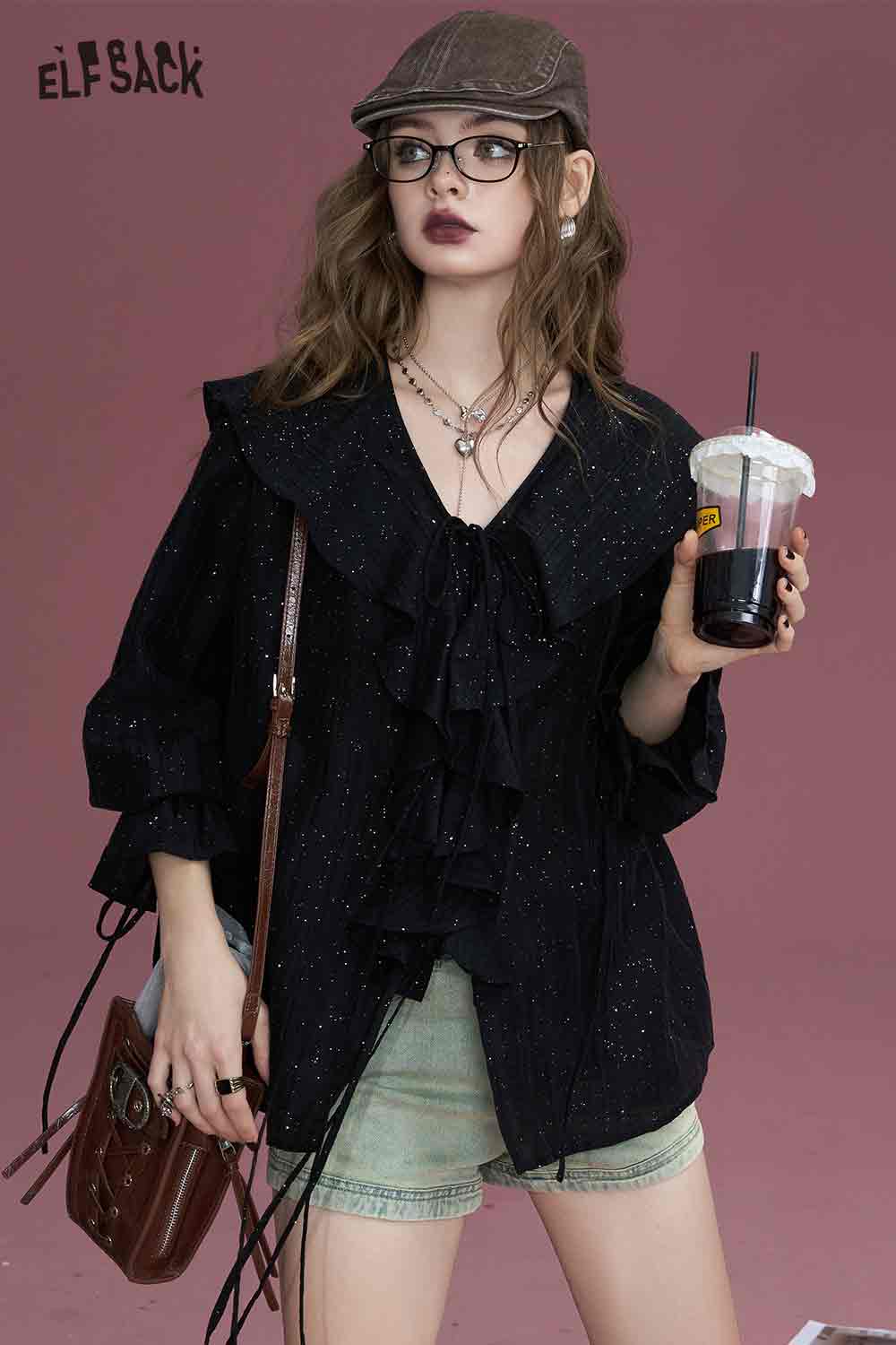 Breathable Vintage Leopard Print Ruffle V Neck Blouse