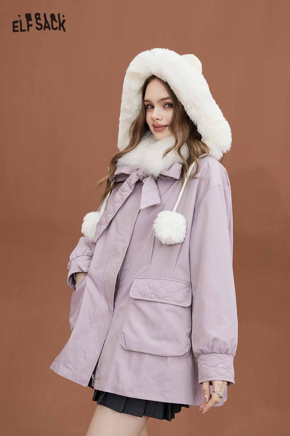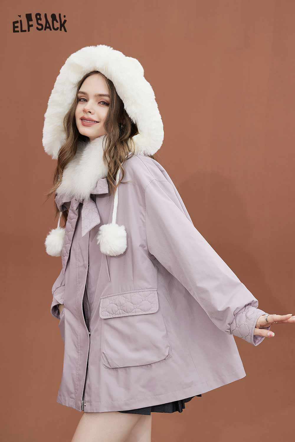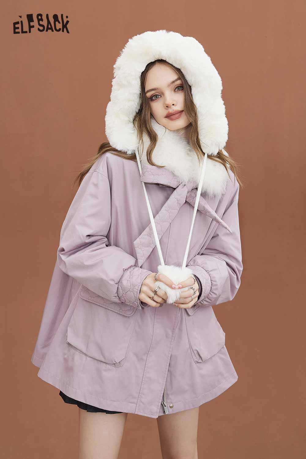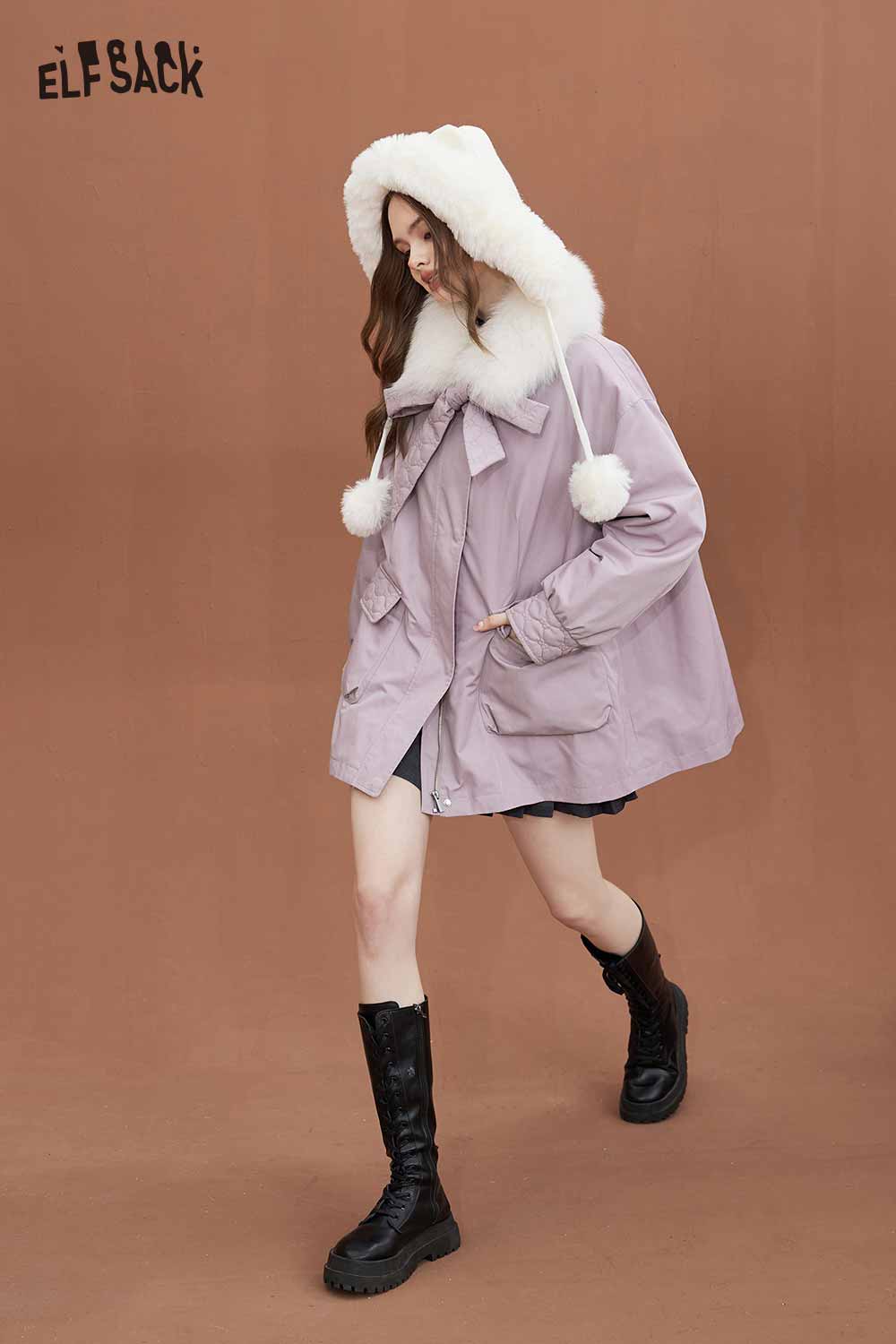 Soft Petite Detachable Fur Collar Pink Cotton Coat
