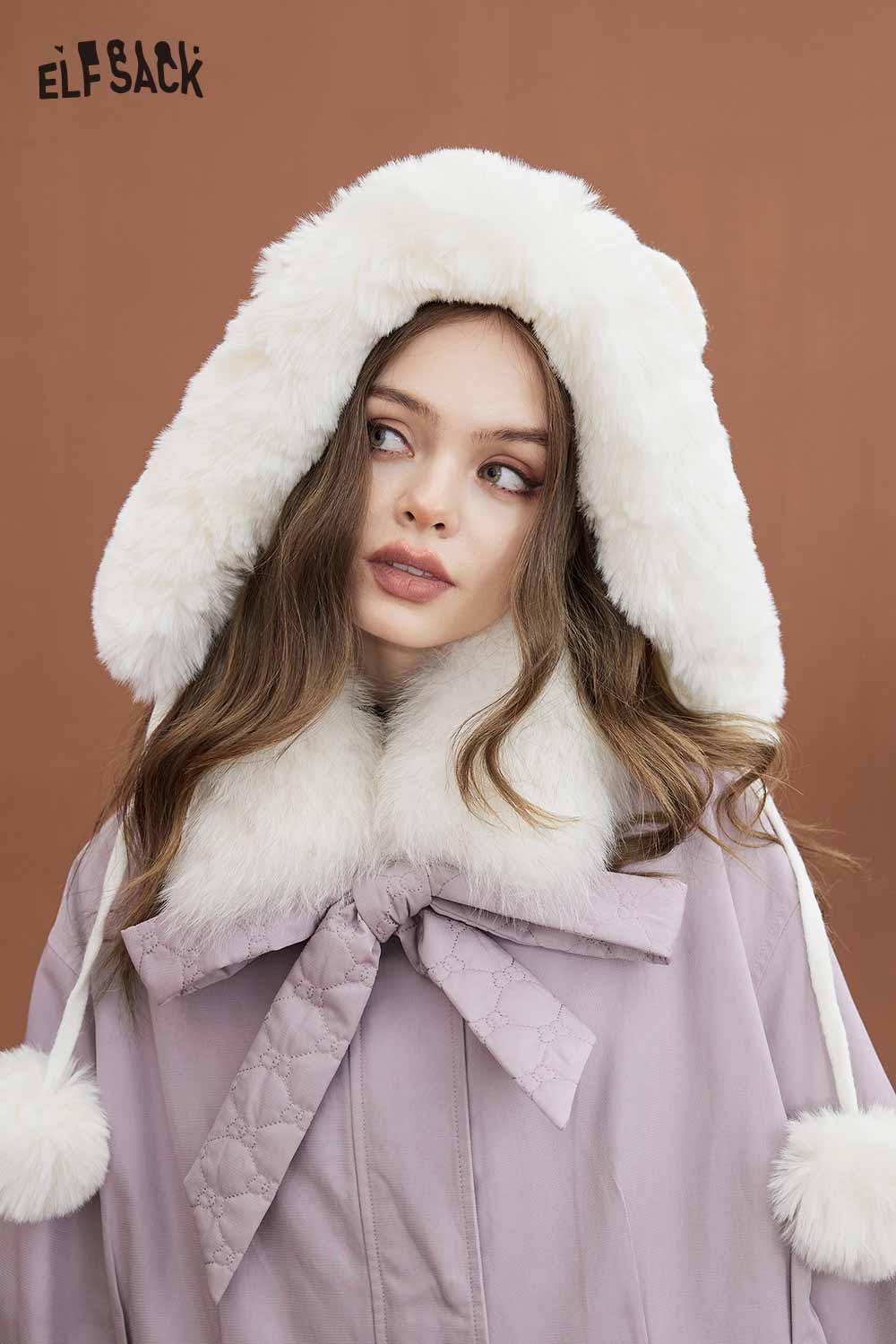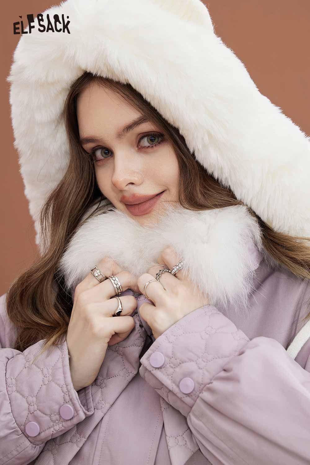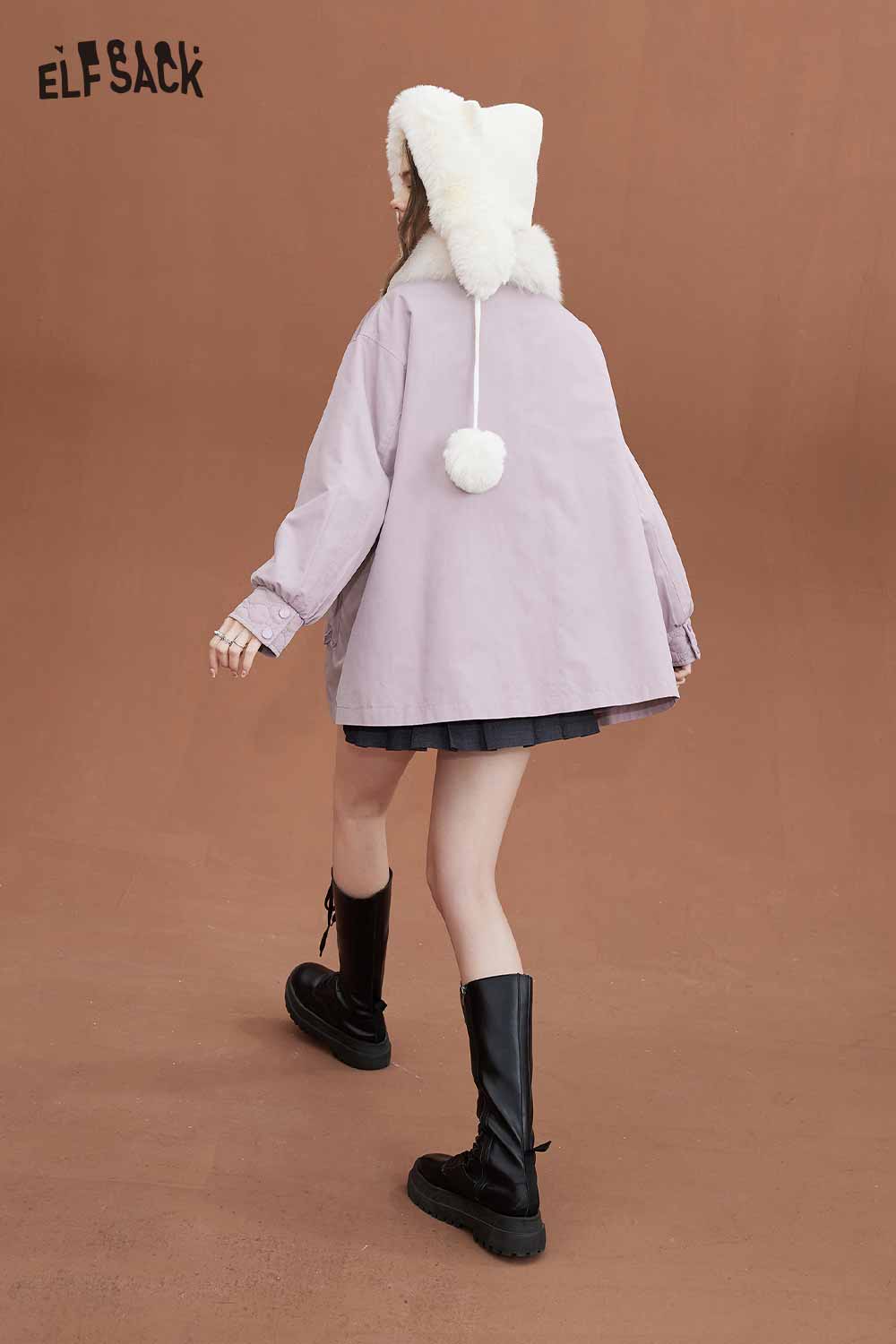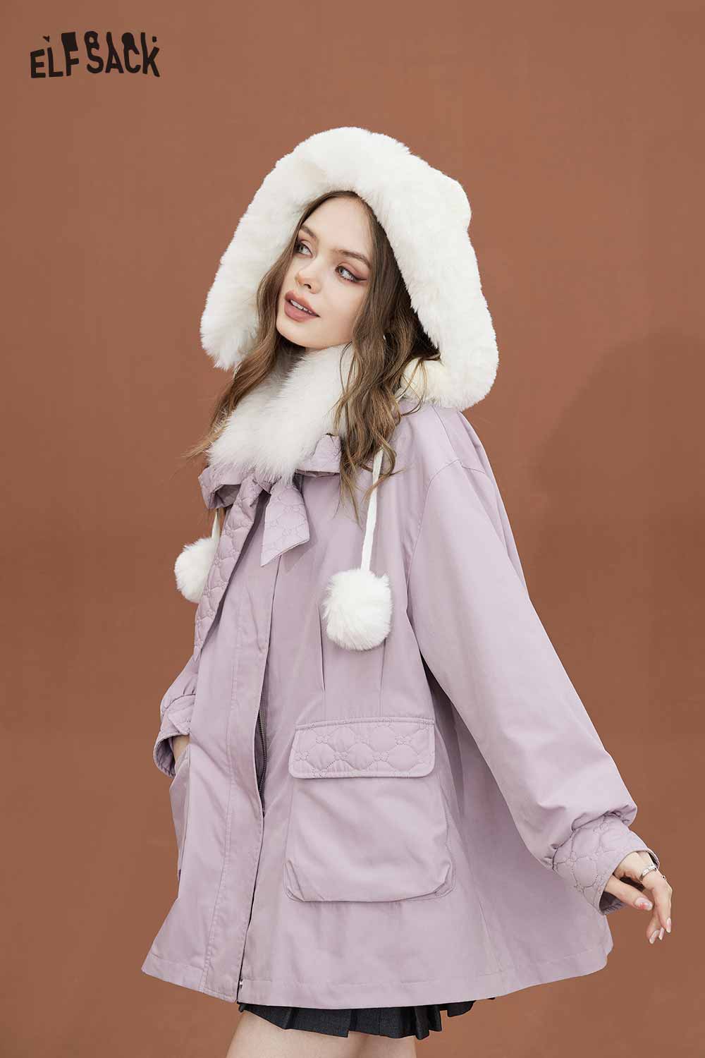 Soft Petite Detachable Fur Collar Pink Cotton Coat