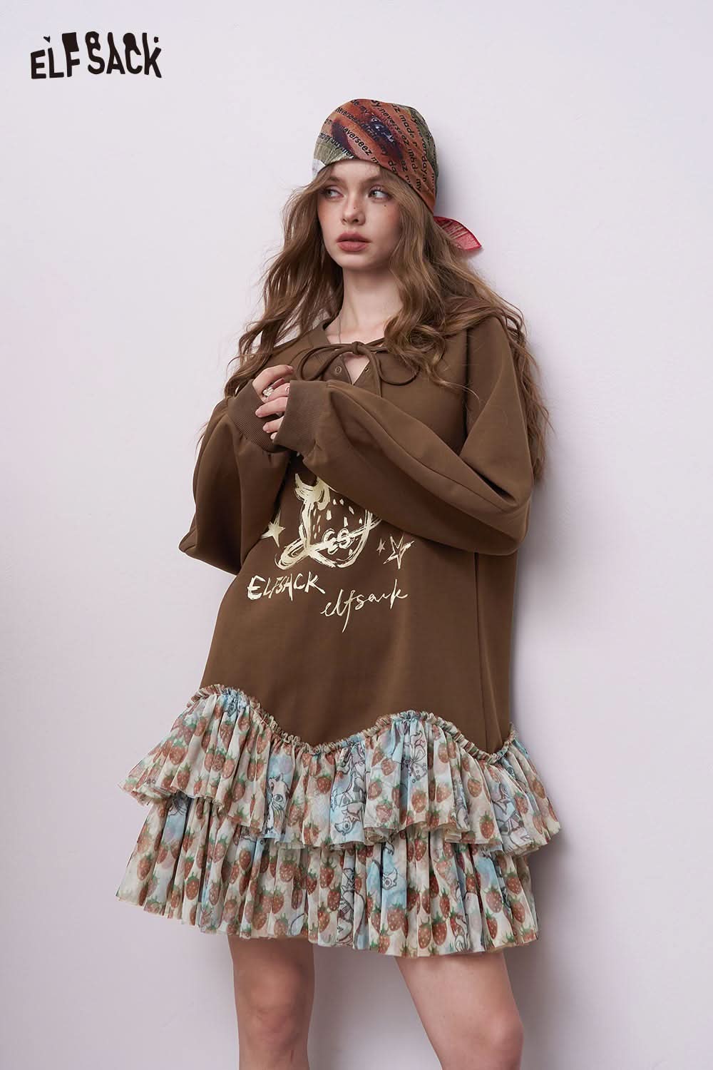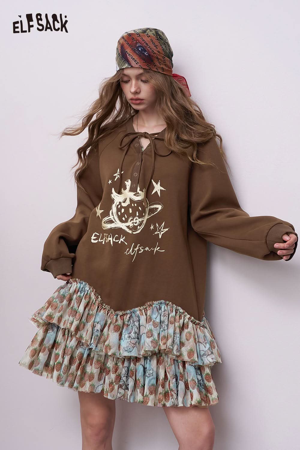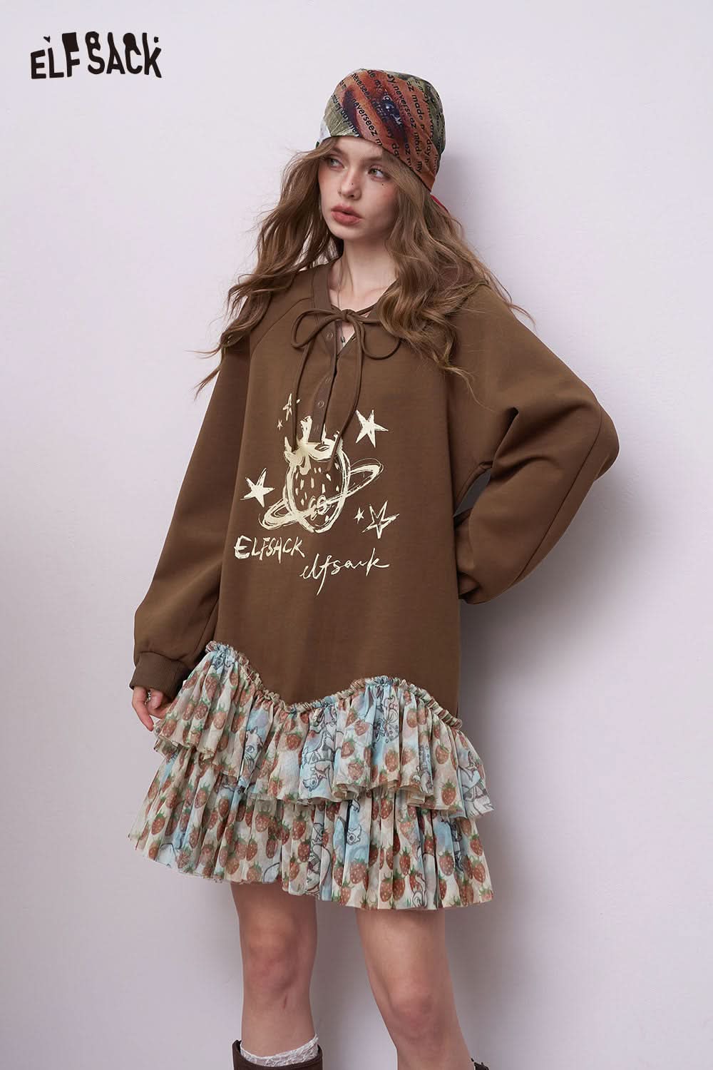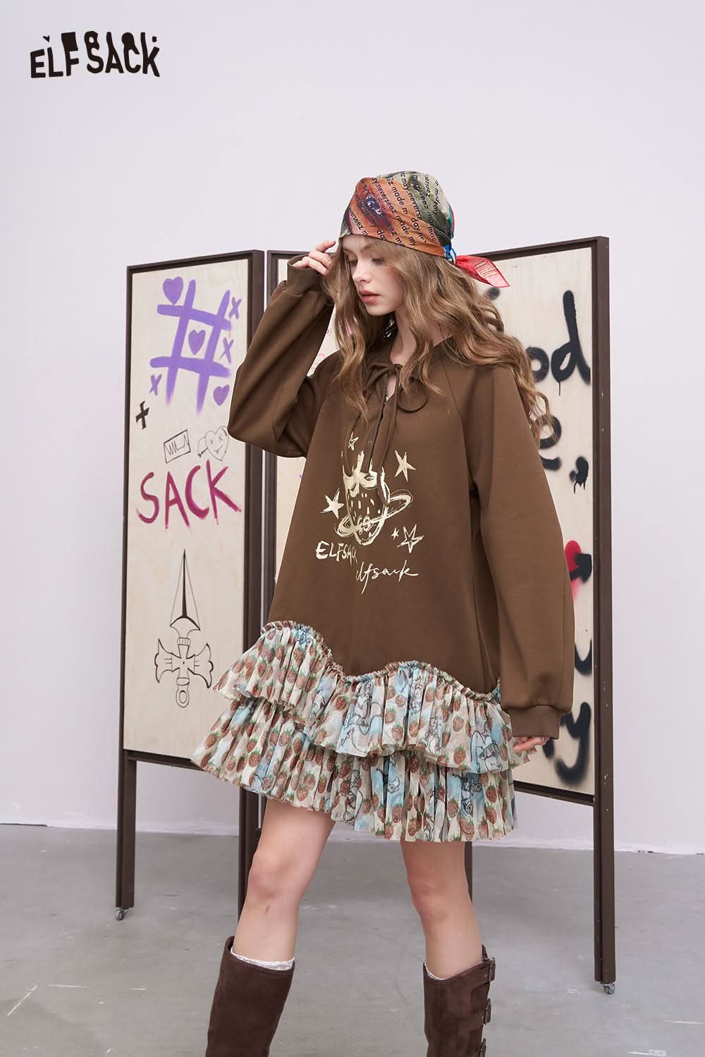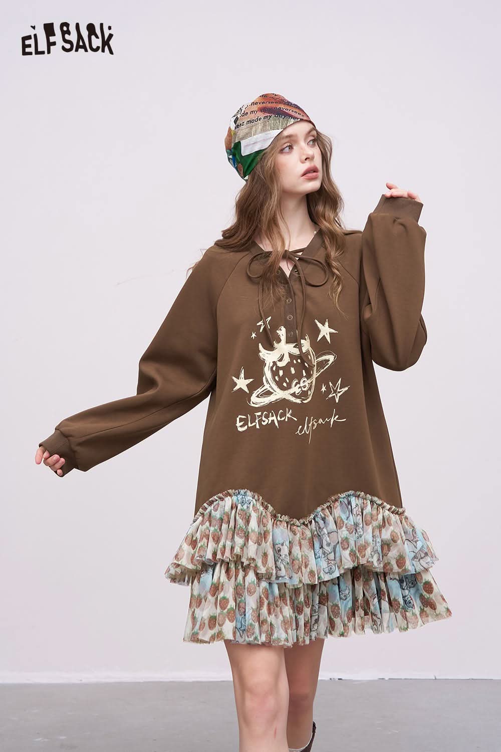 Soft Drawstring Ruffle Patchwork Short Dress