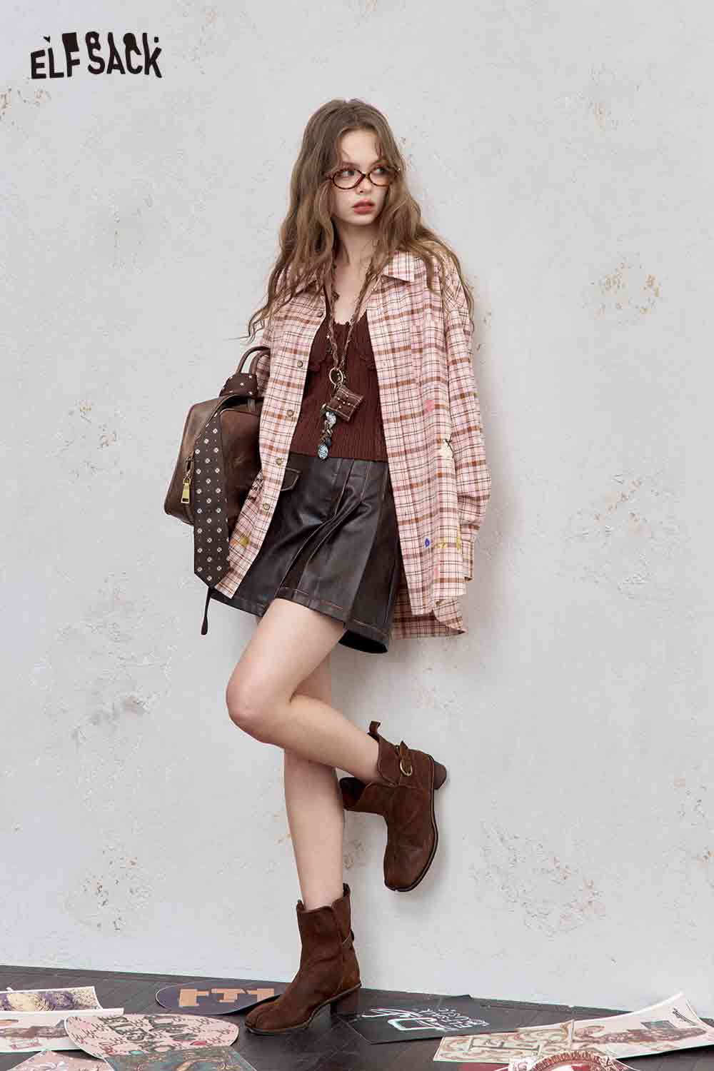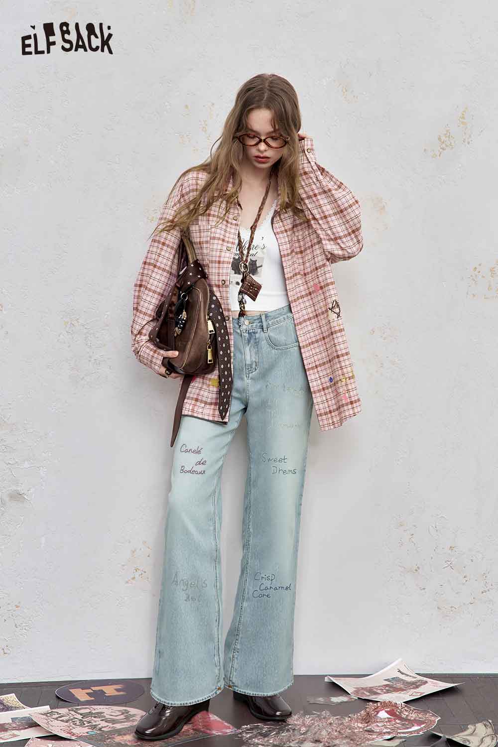 College-Style Hand-Painted Graffiti Plaid Shirt