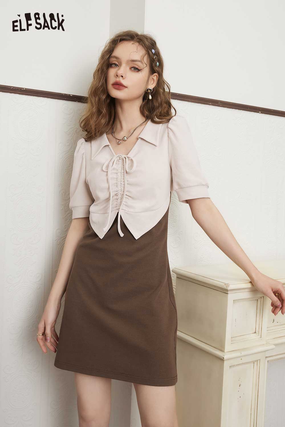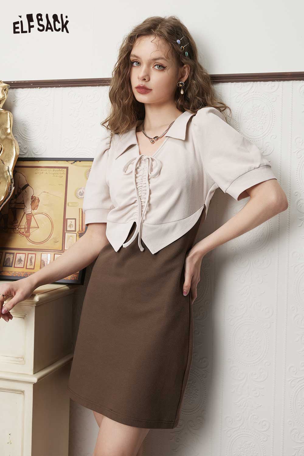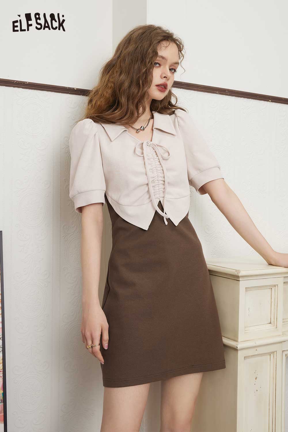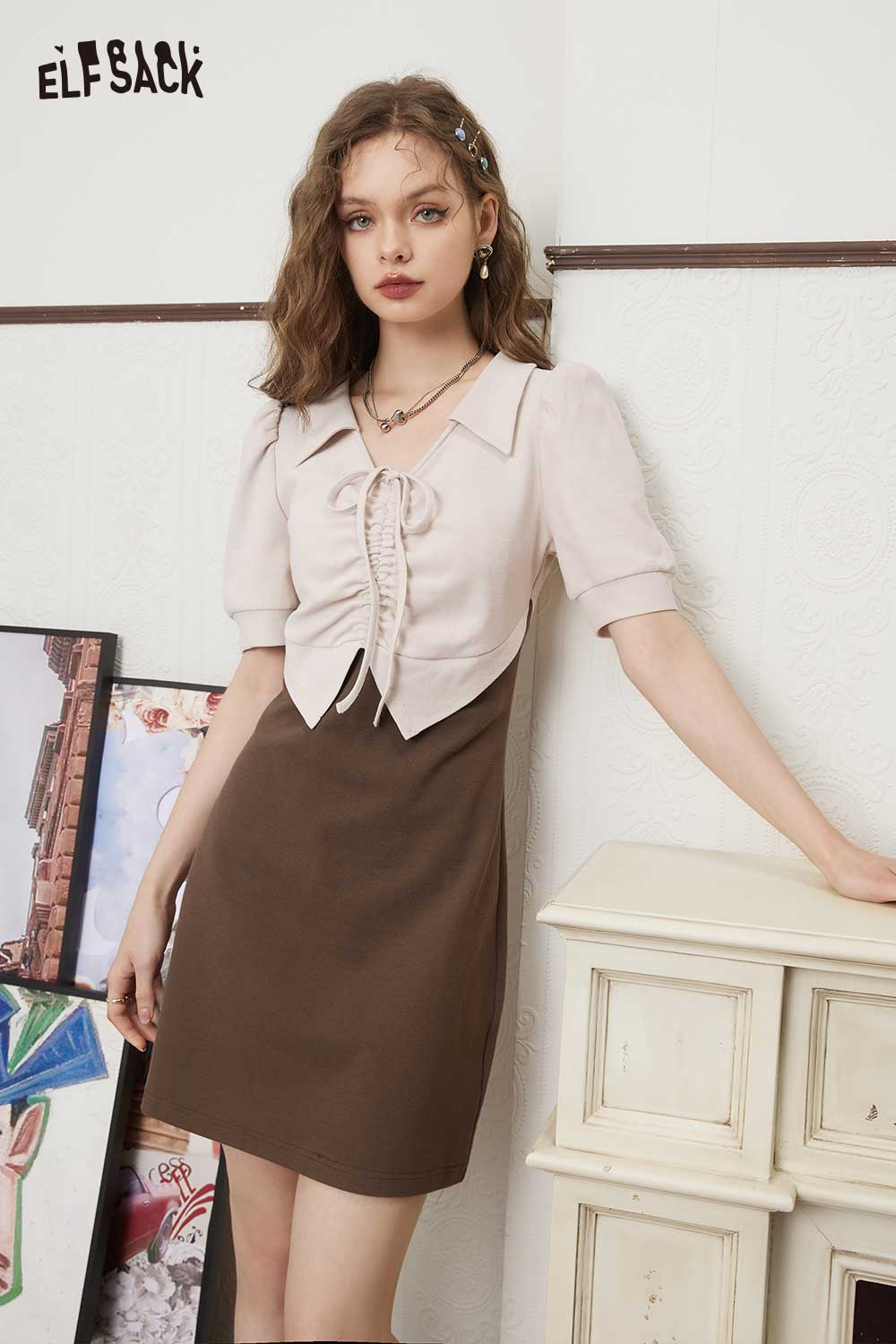 Soft Two Piece Puff Sleeve Slimming Bodycon Dress