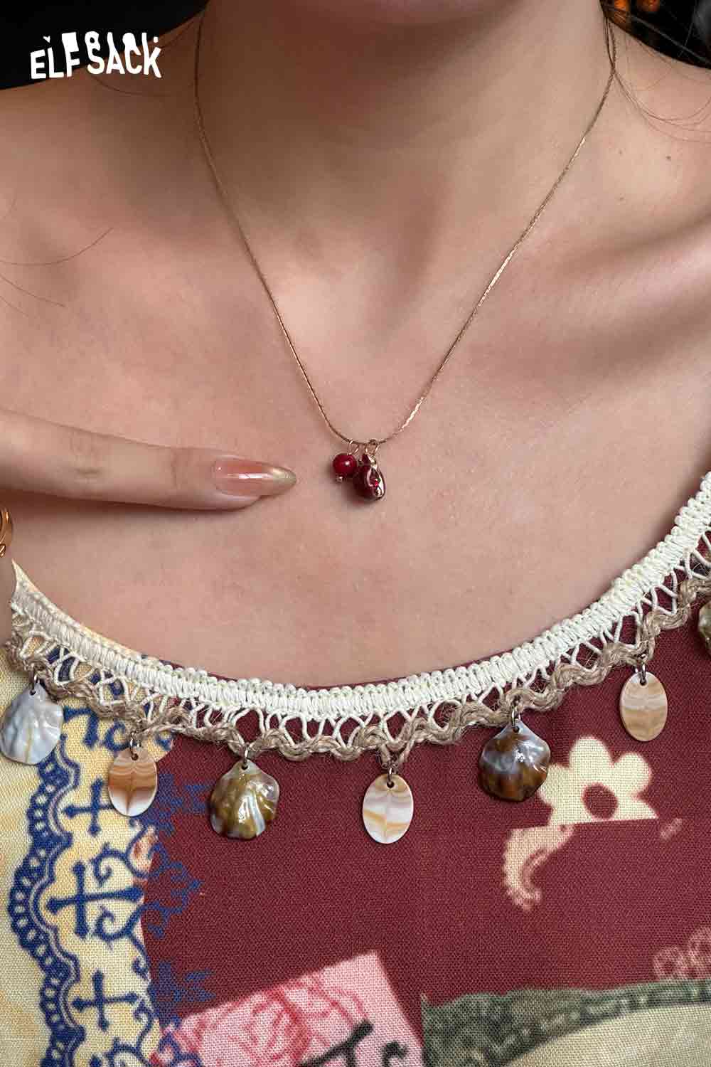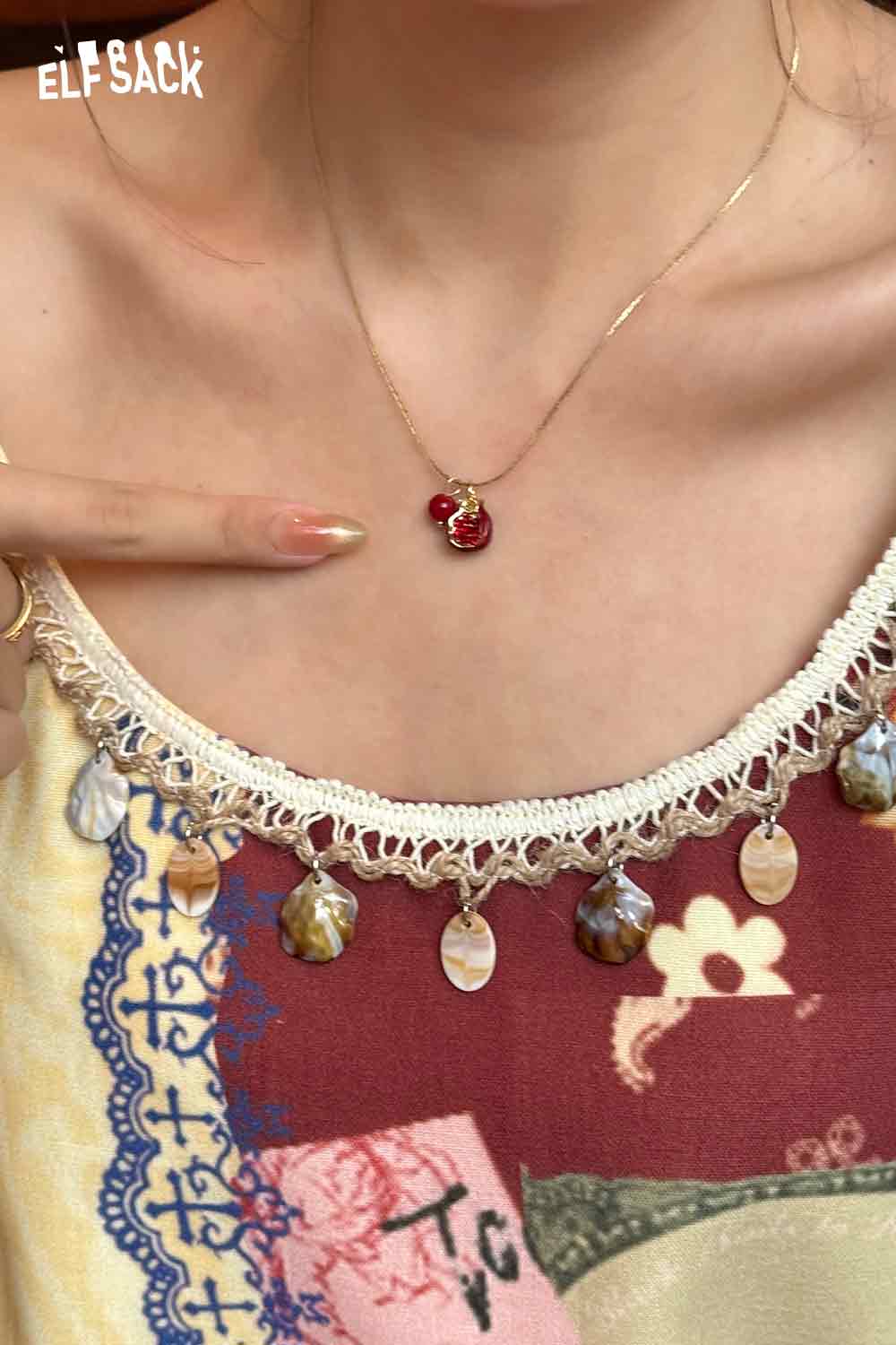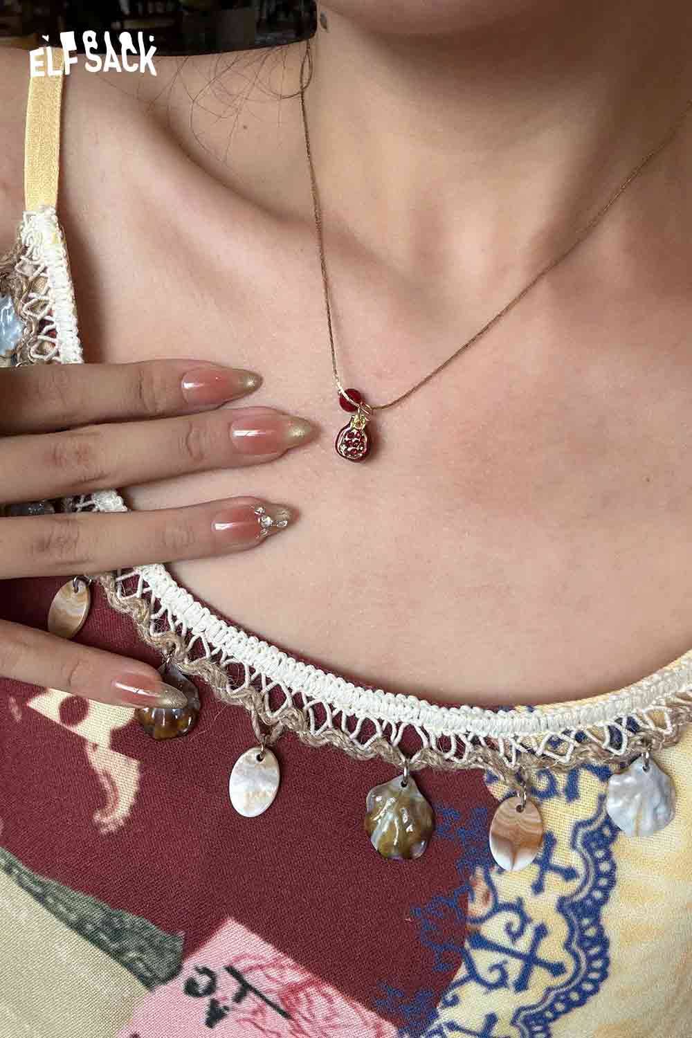 Premium Alloy Pomegranate Drop Pendant Necklace Vintage Inspired Delicate Layering Chain