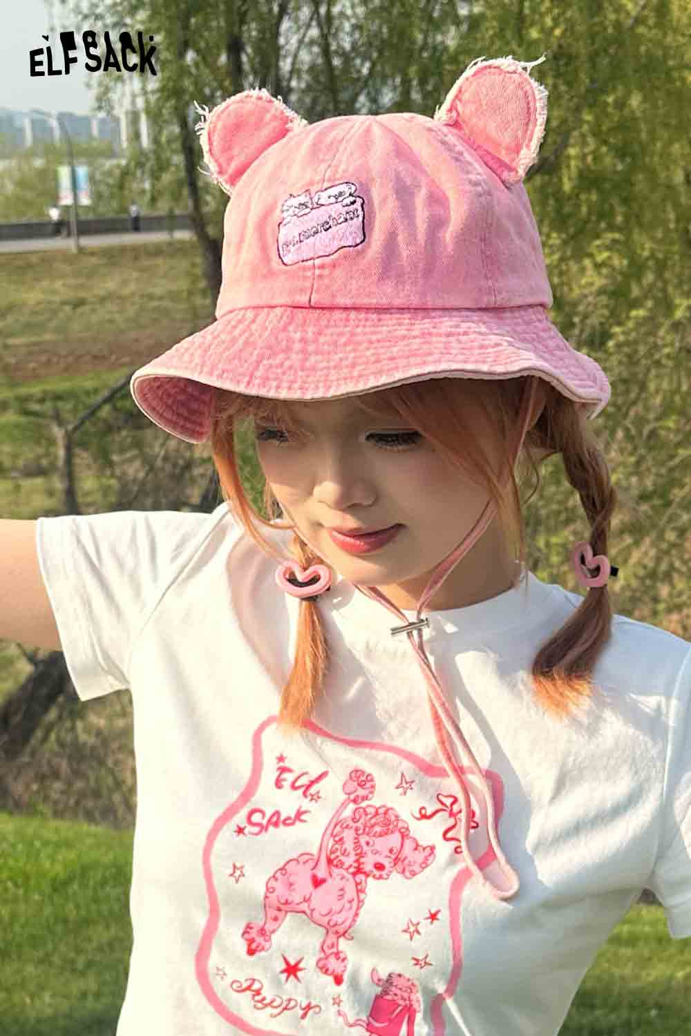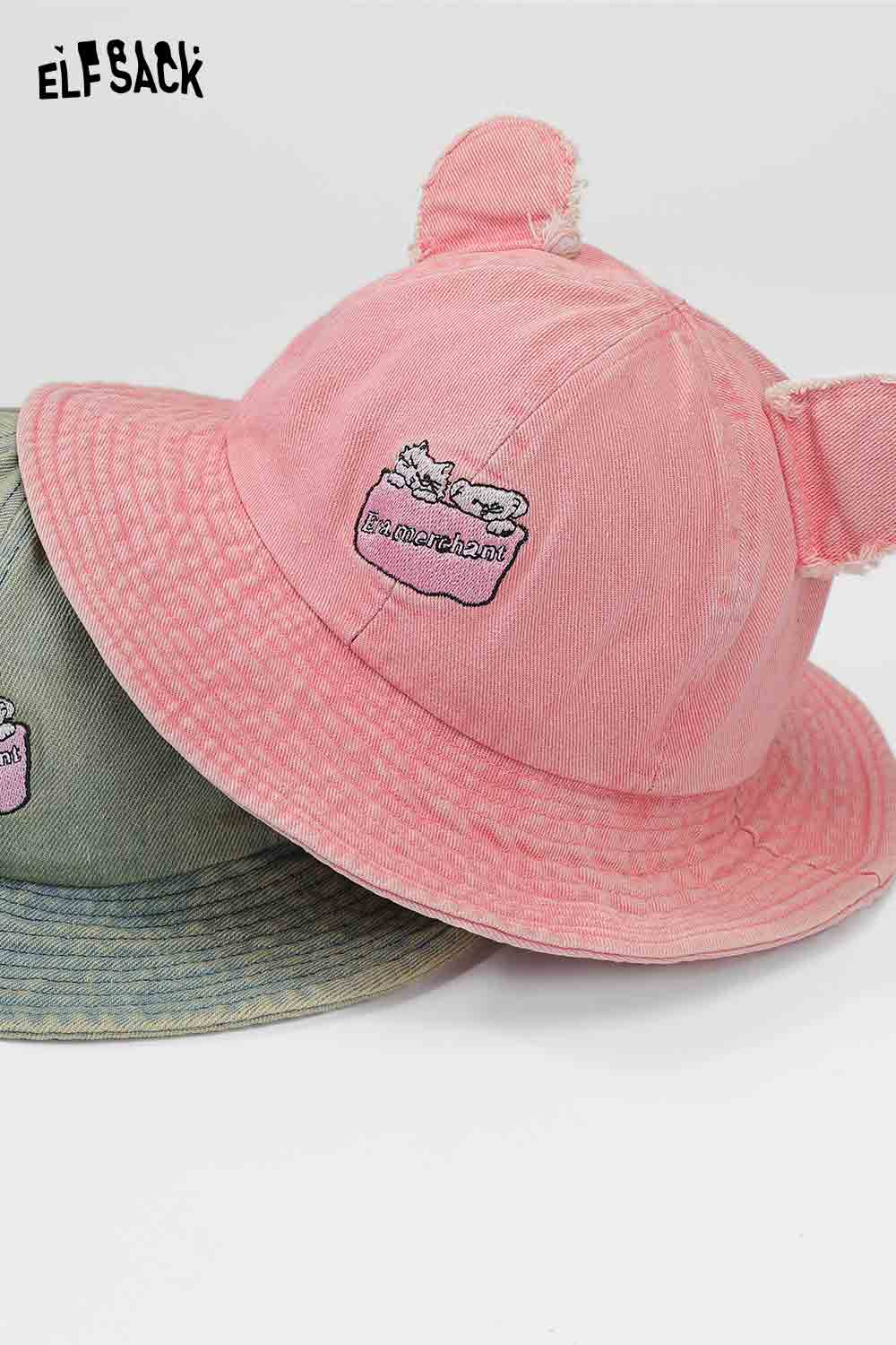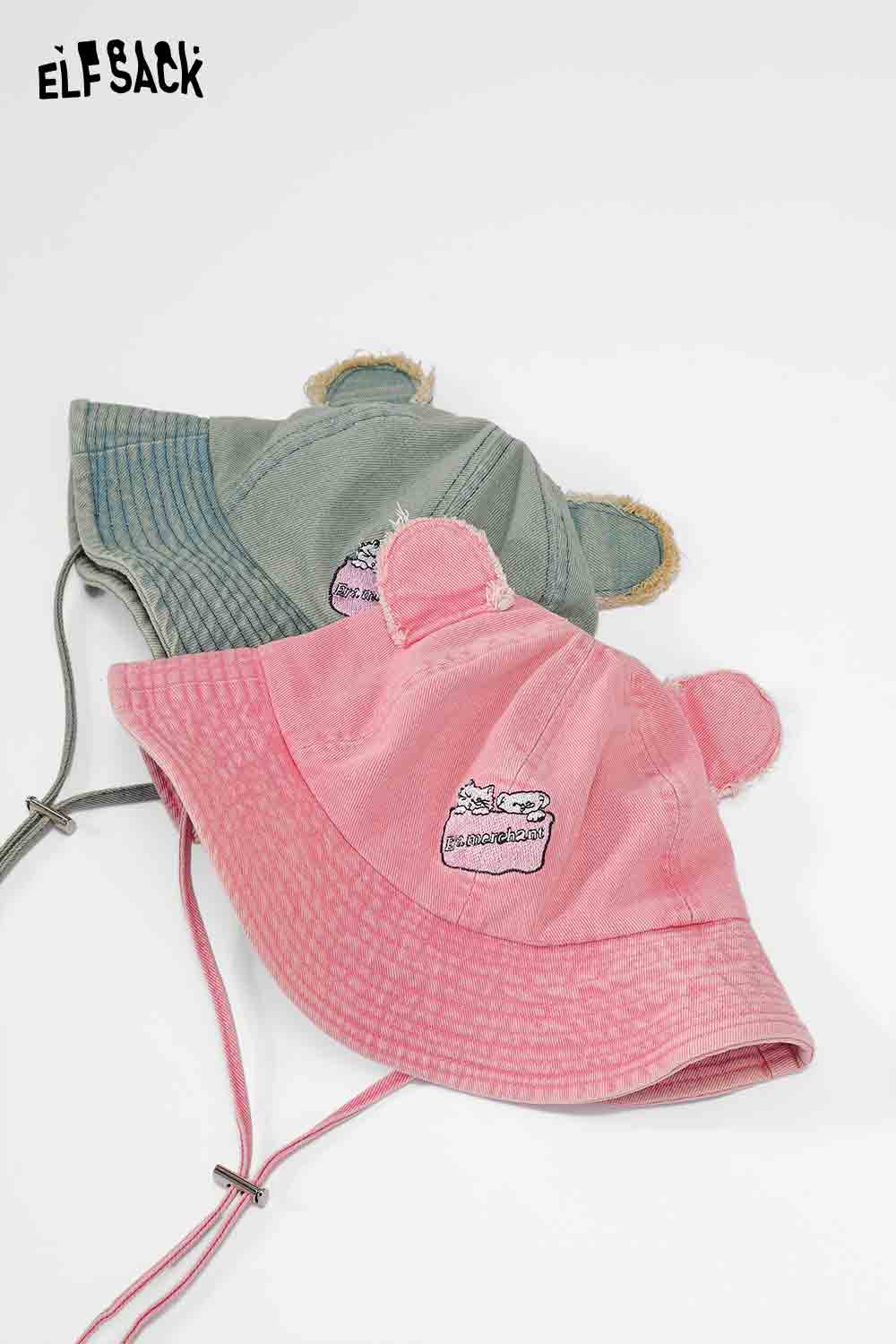 Bear Ears Sweet Denim Fisherman Hat Casual Slim Face Design