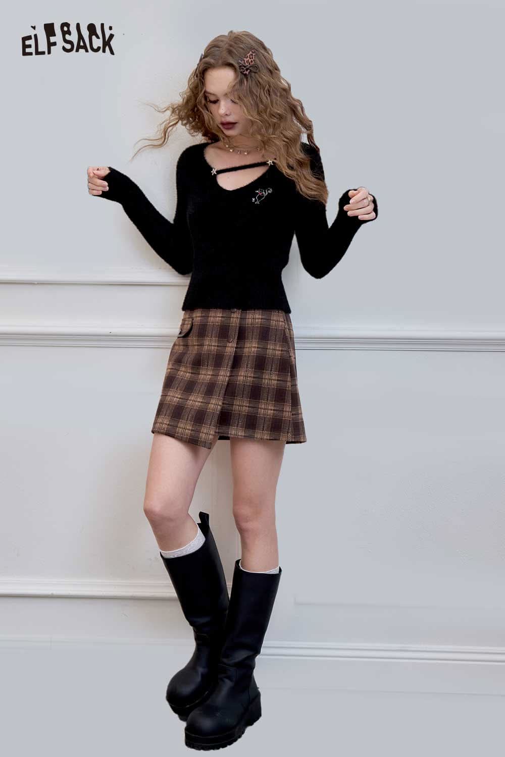 Soft Premium Patchwork Plaid Slimming Short Skirt