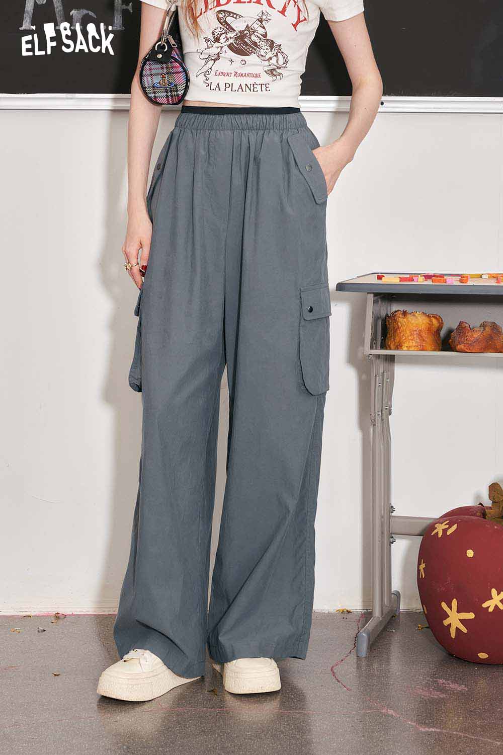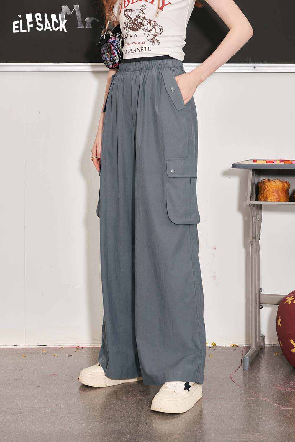Casual Versatile Loose Slimming Elastic Waist Utility Pants