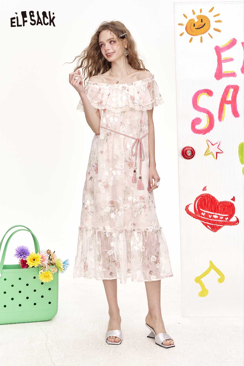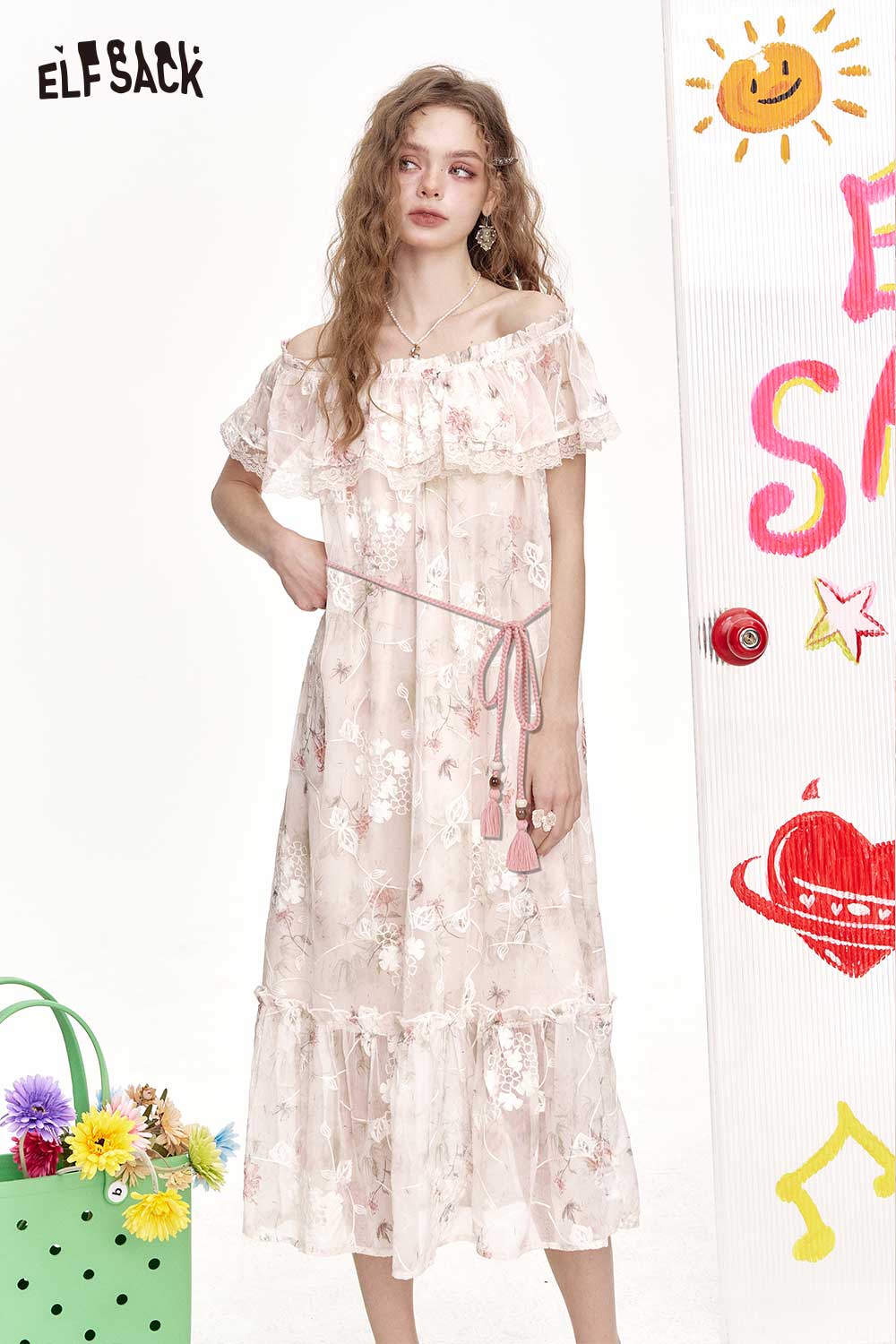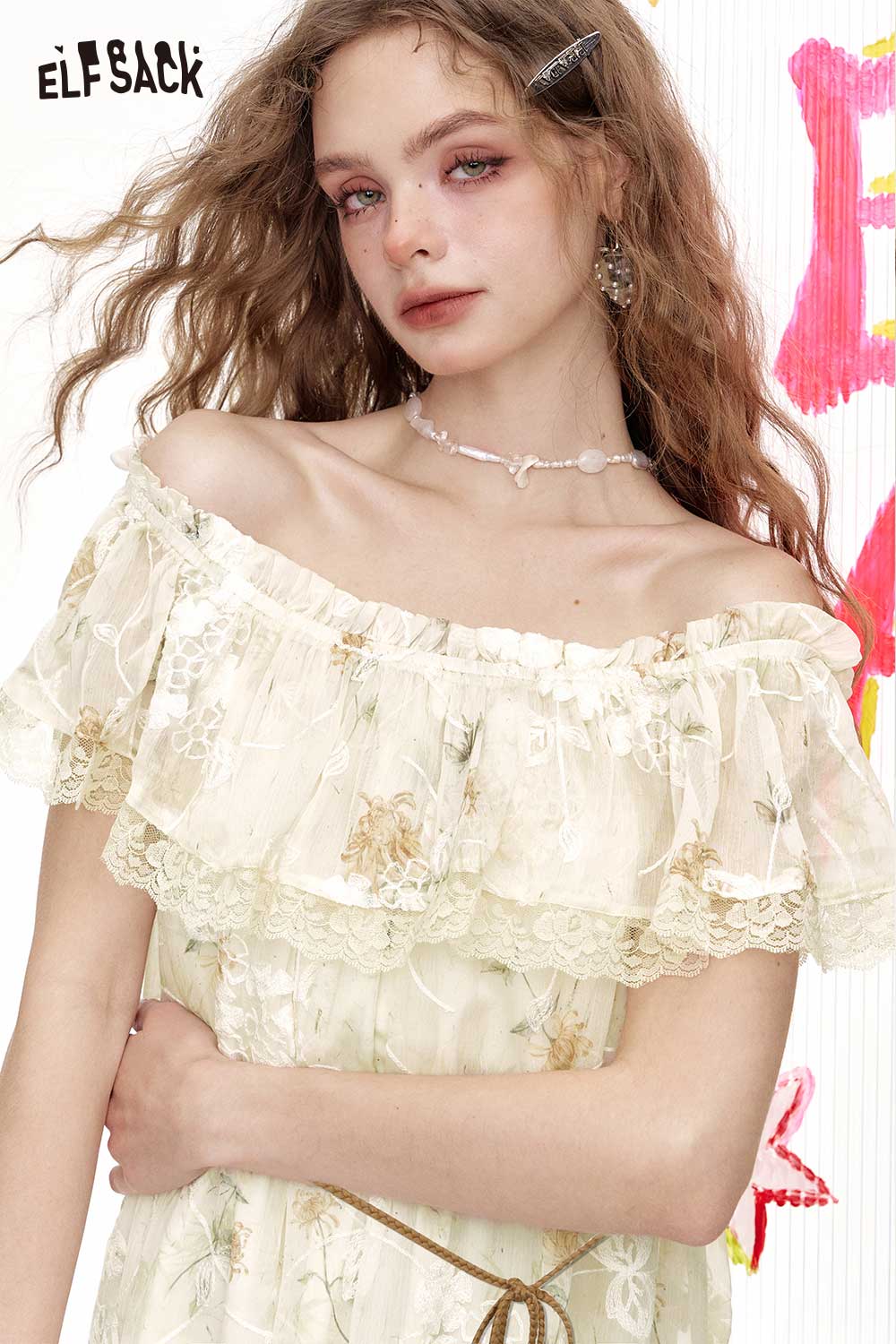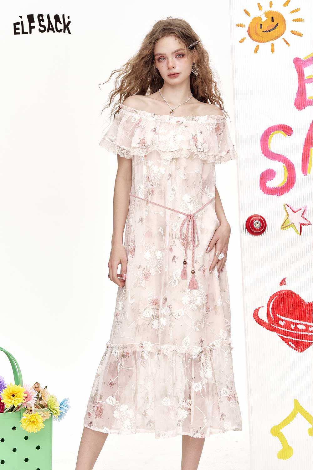 Cute Off Shoulder Lace Floral Elegant Holiday Dress