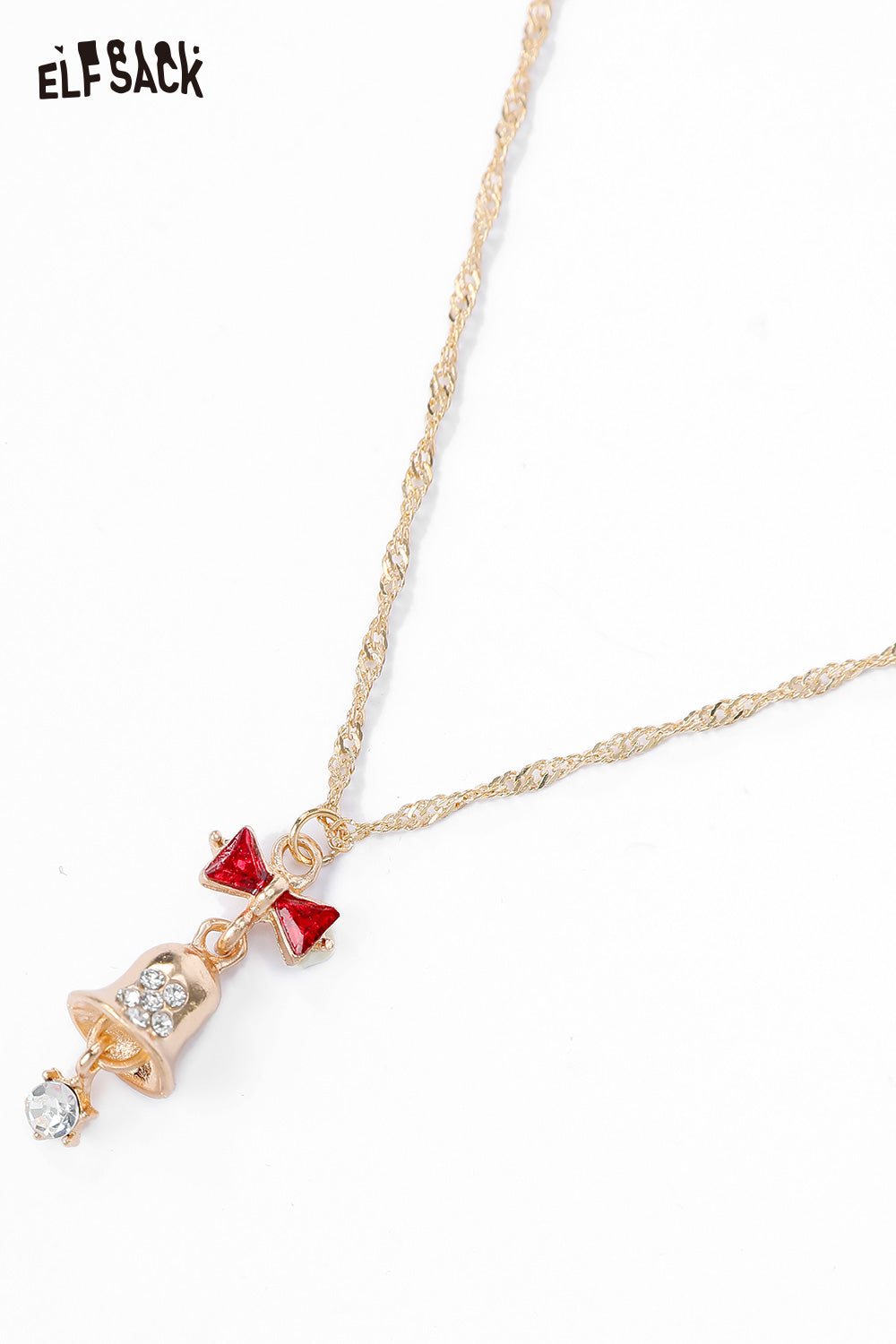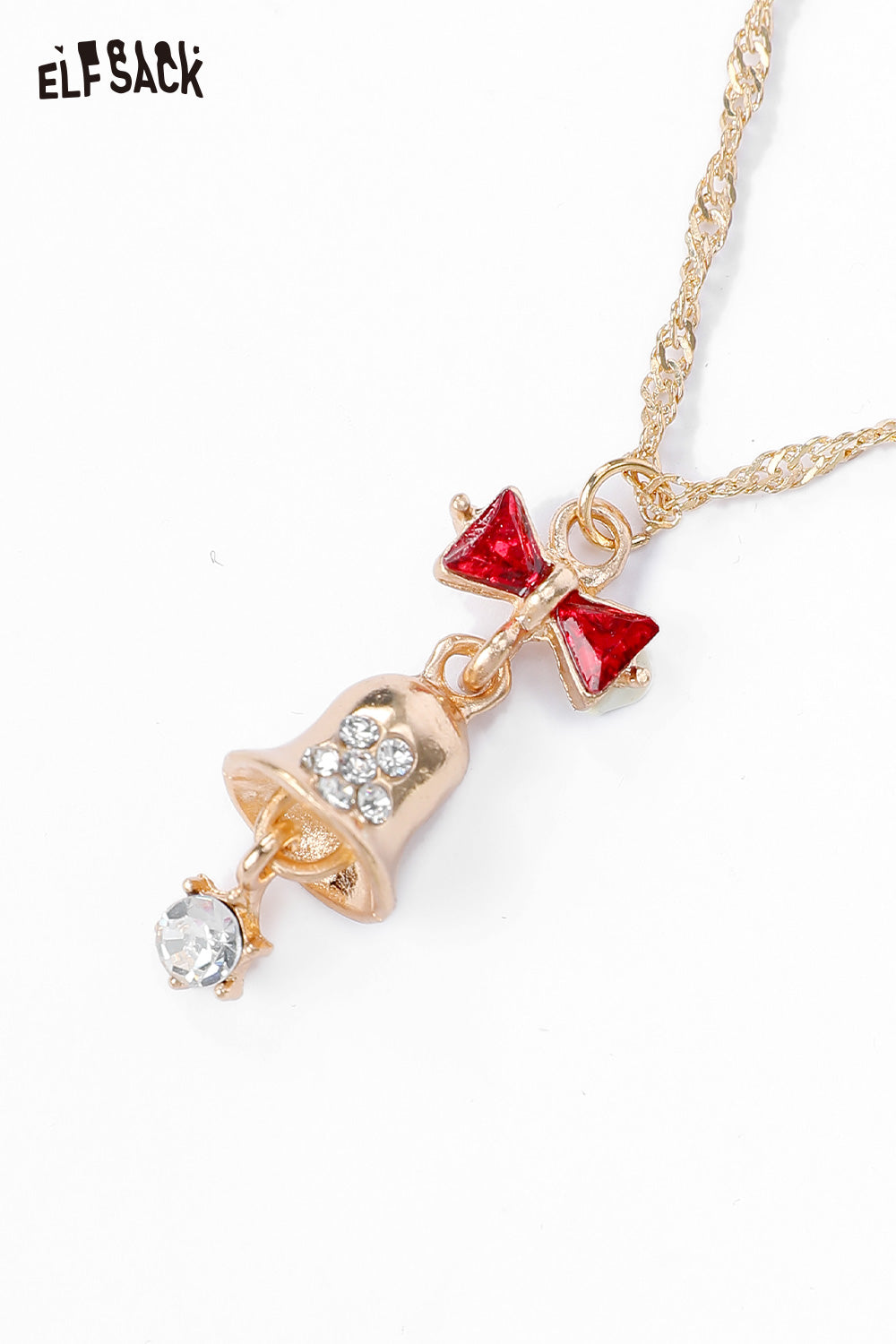 Christmas Bell Rhinestone Bow Pendant Necklace