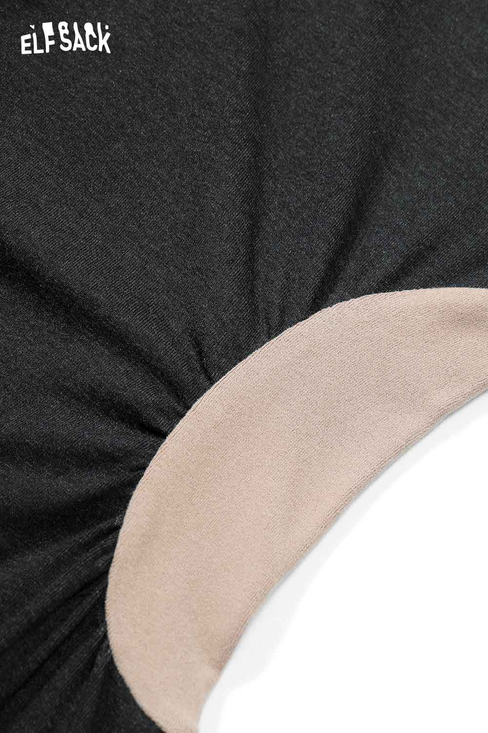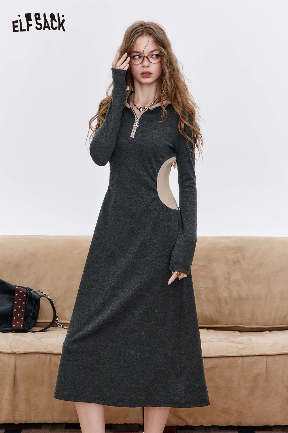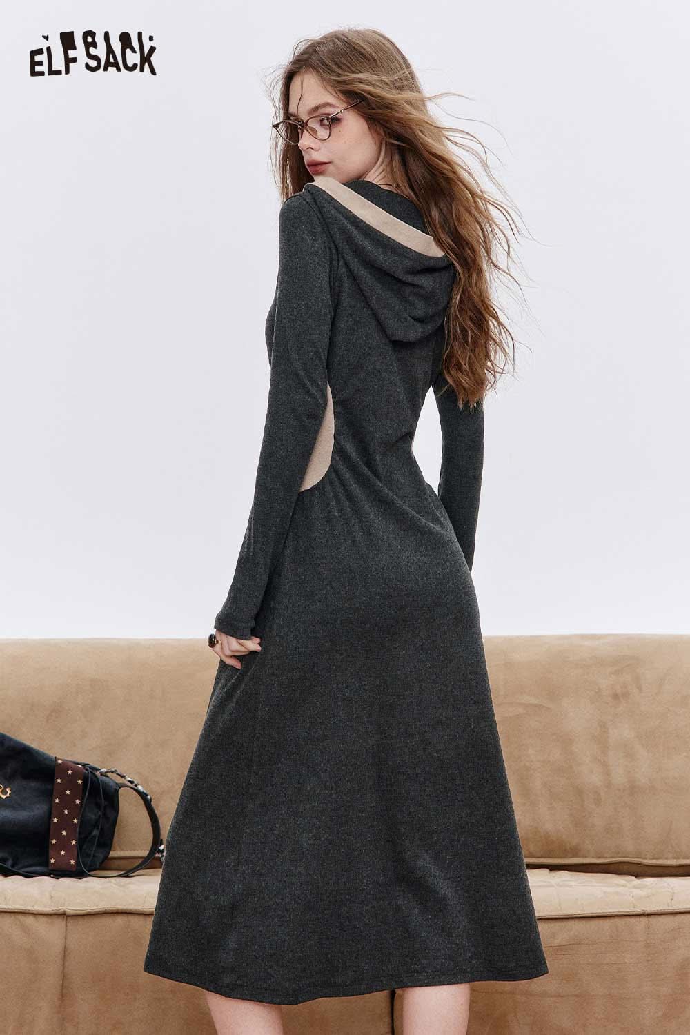 Soft Fabric Drop Shoulder Cut Contrast Color Hooded Dress