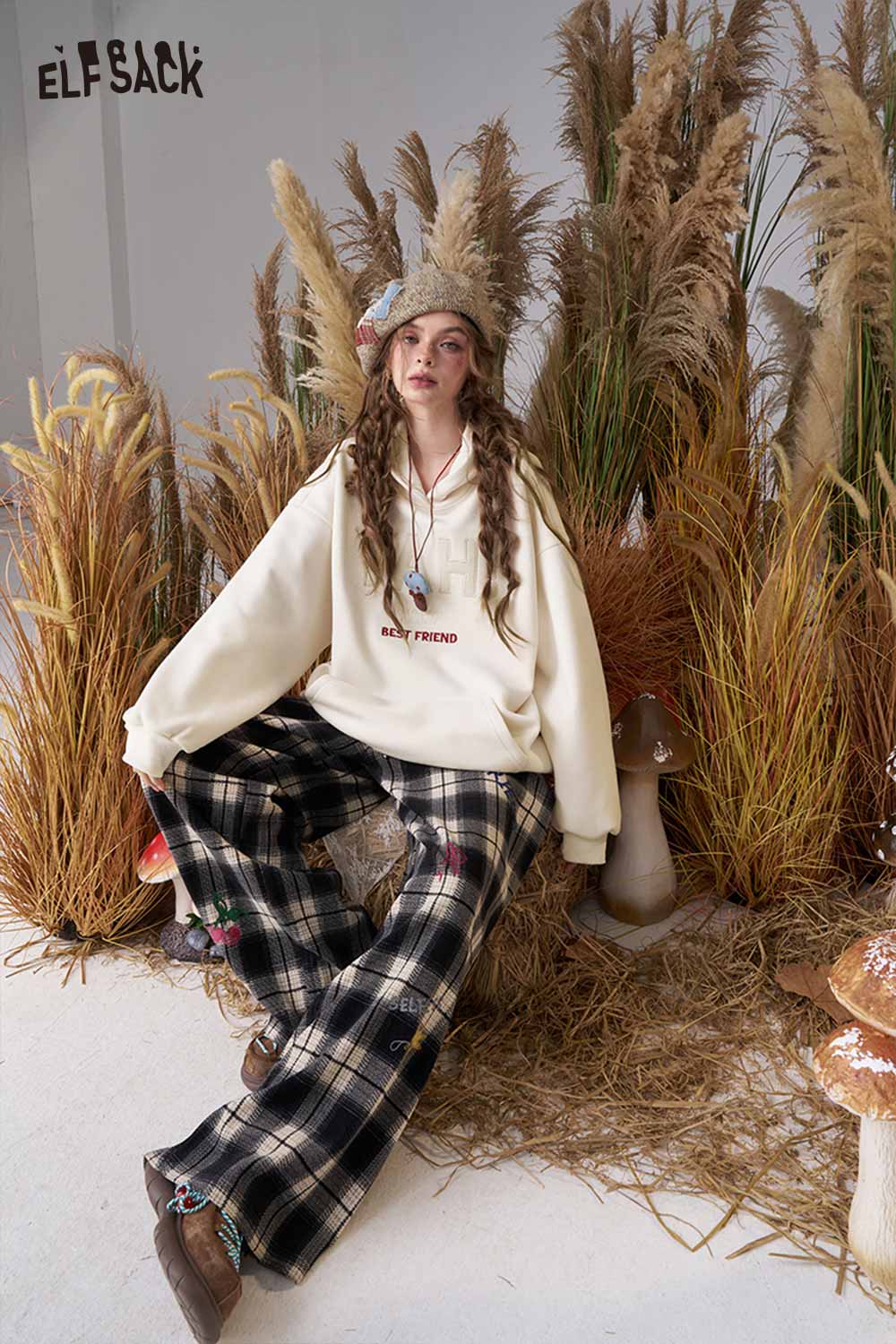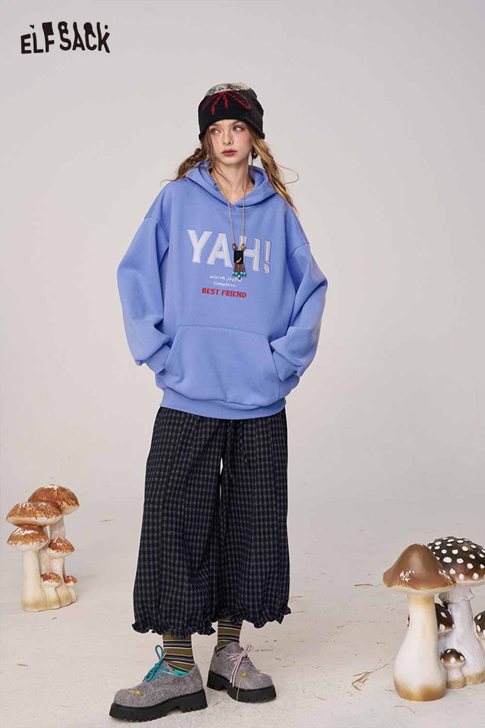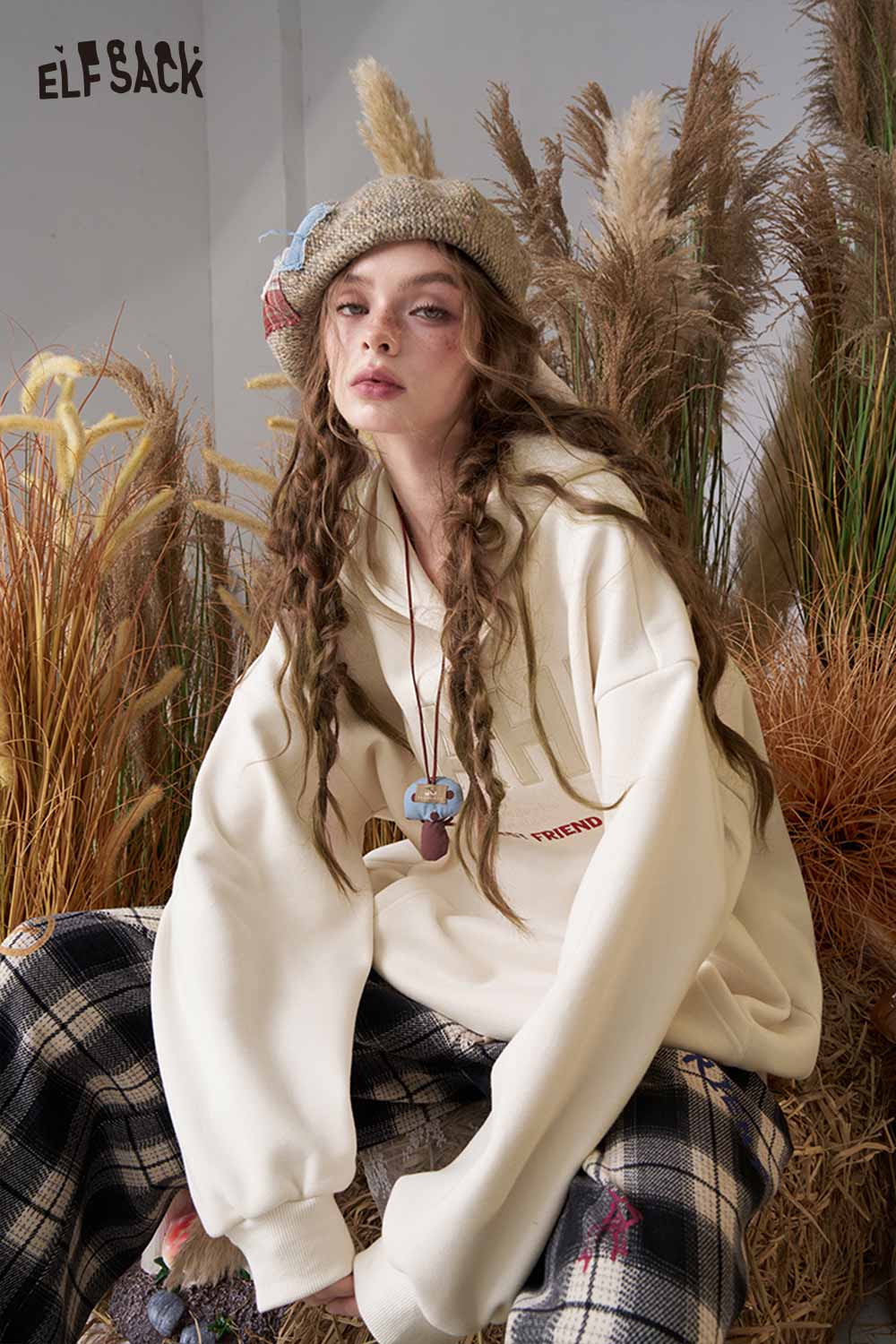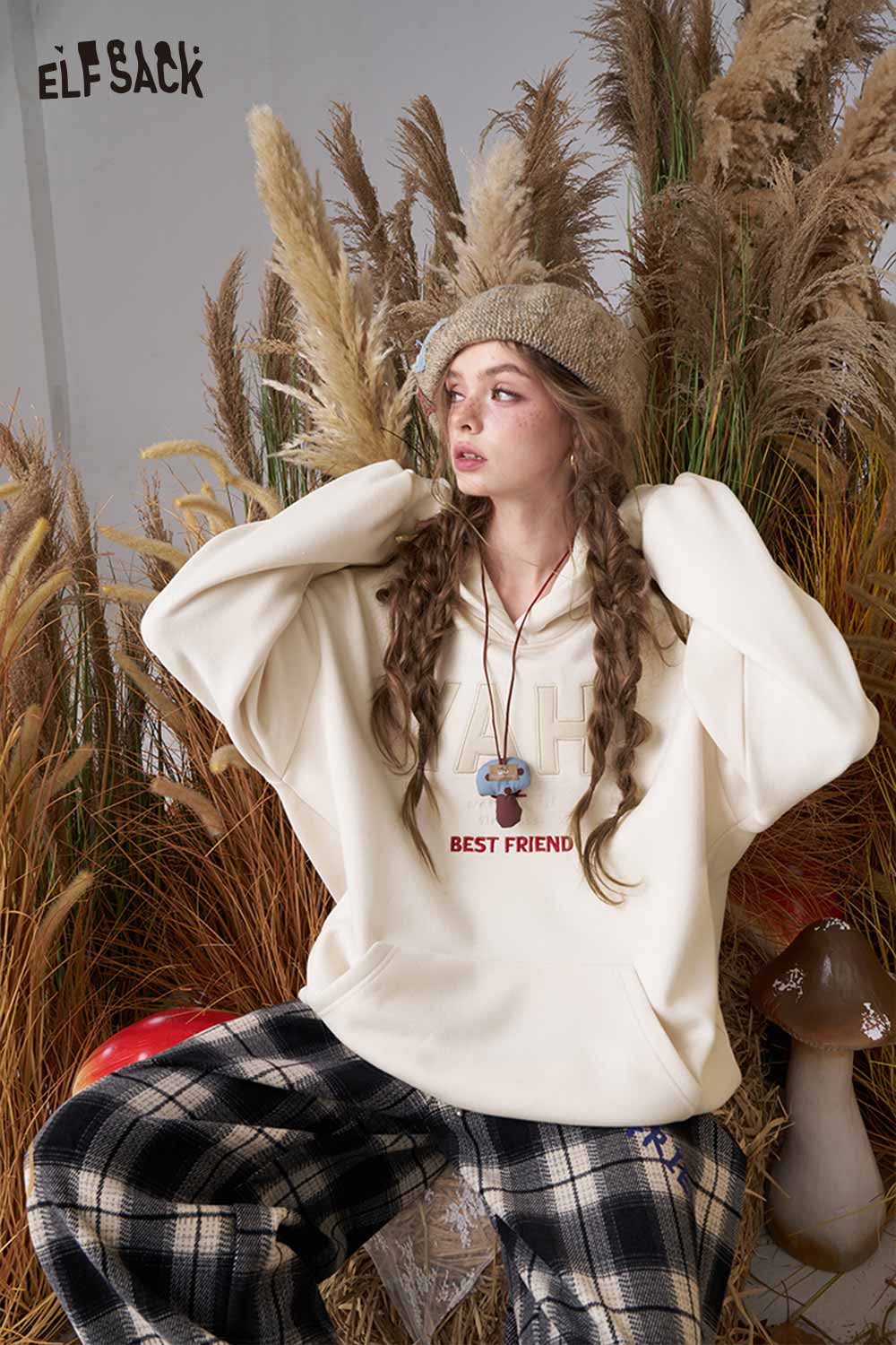 Soft Cotton Logo Lettering Loose Fit Hooded Sweatshirt