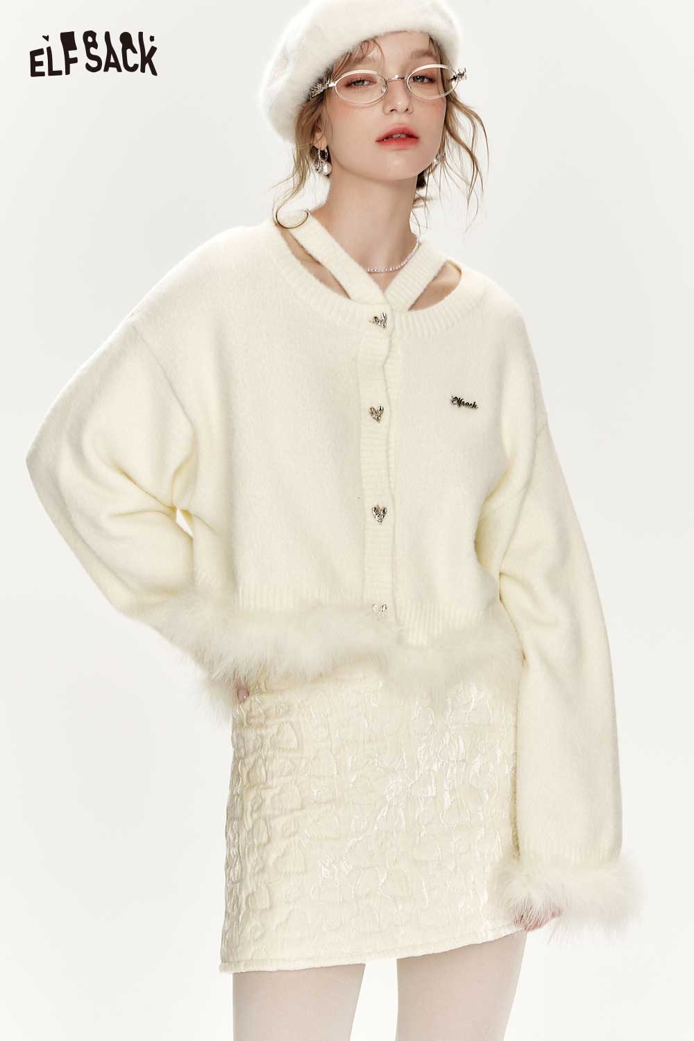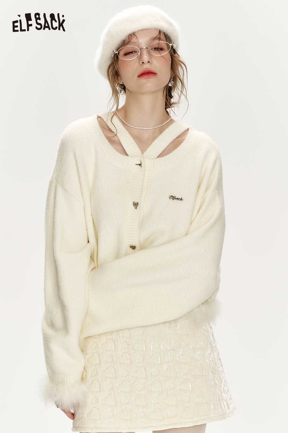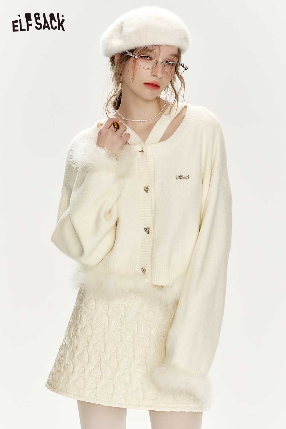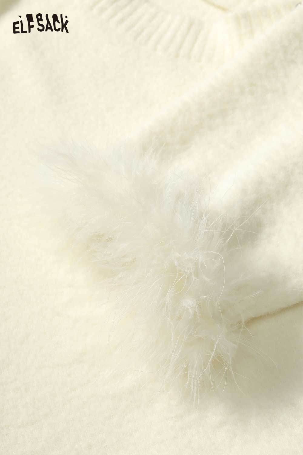 Elegant White Plush Patchwork Sweater