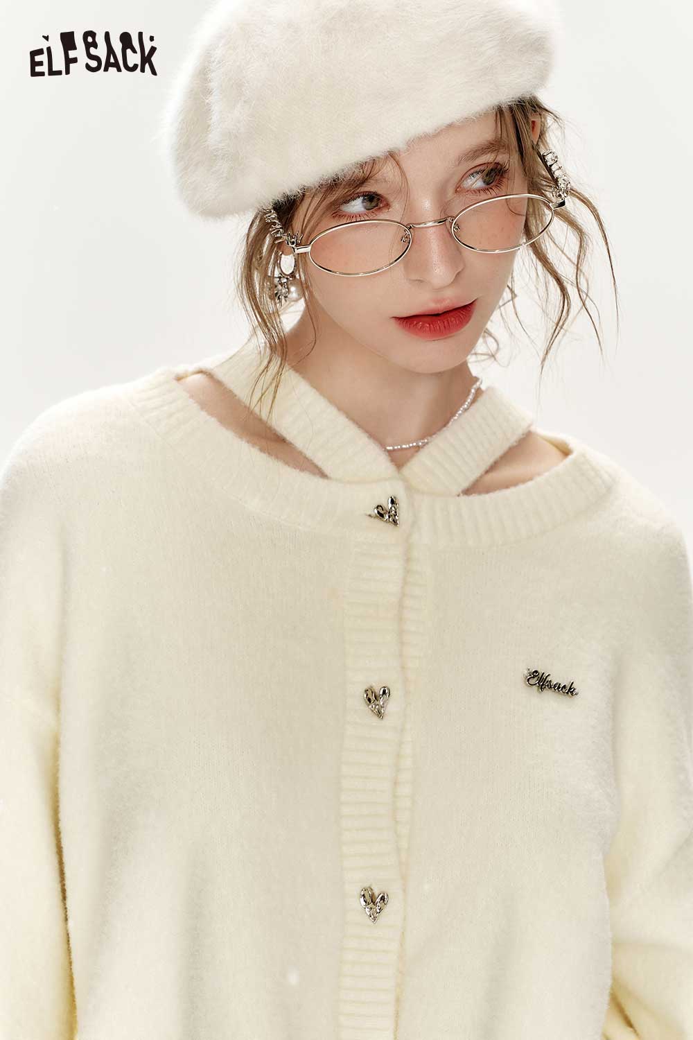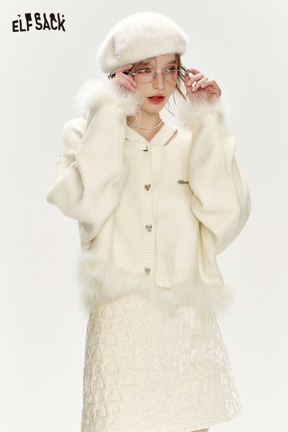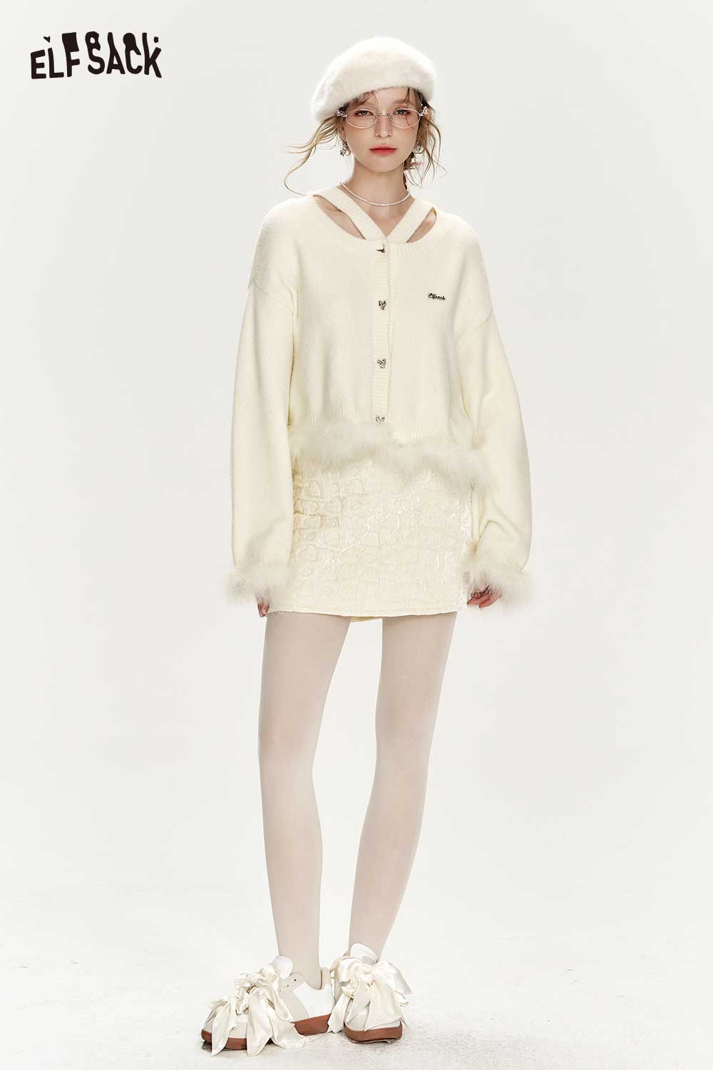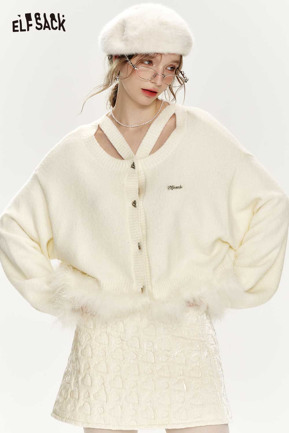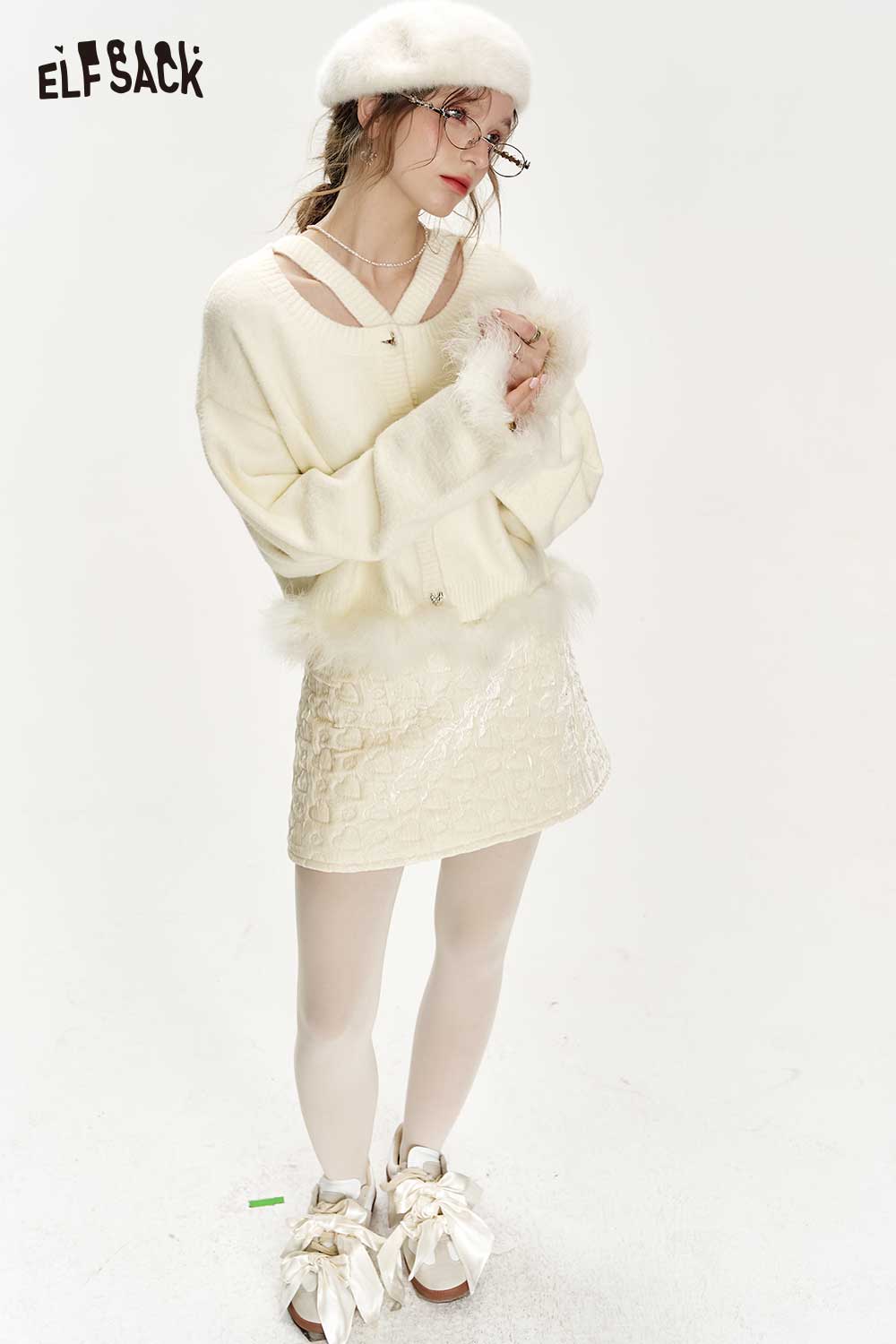 Elegant White Plush Patchwork Sweater