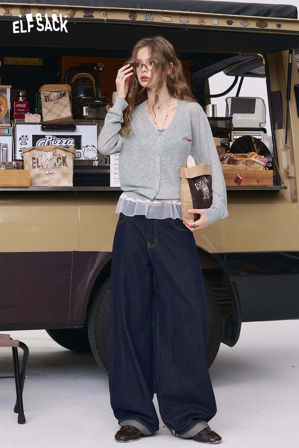 Solid Lightweight Loose V Neck Knitwear Cardigan