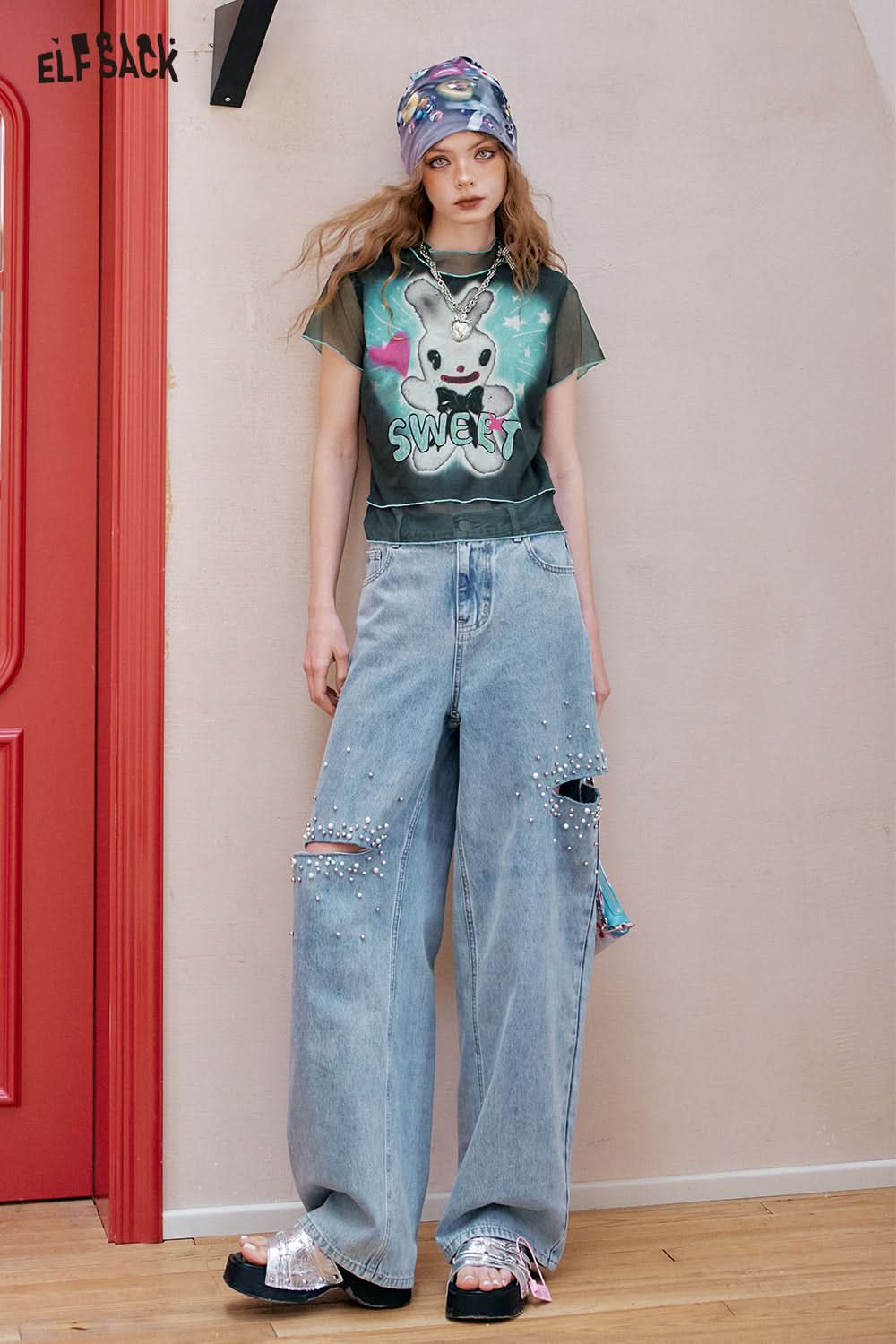 Black Printed Mesh Short Sleeve Chic T-Shirt