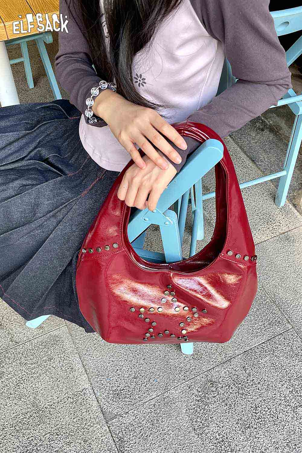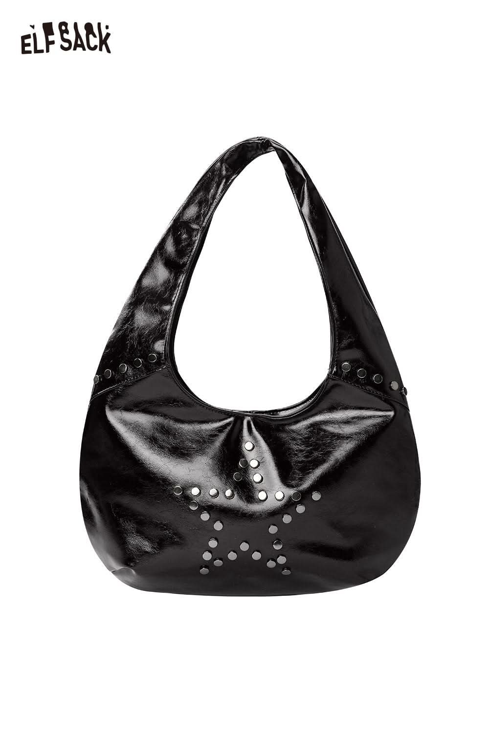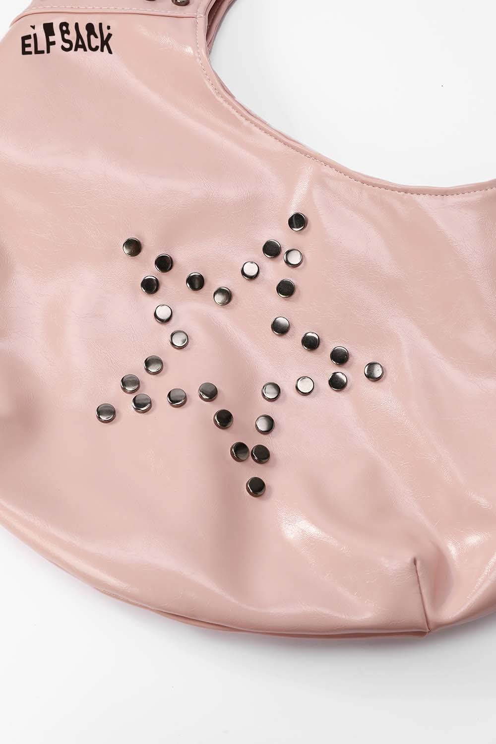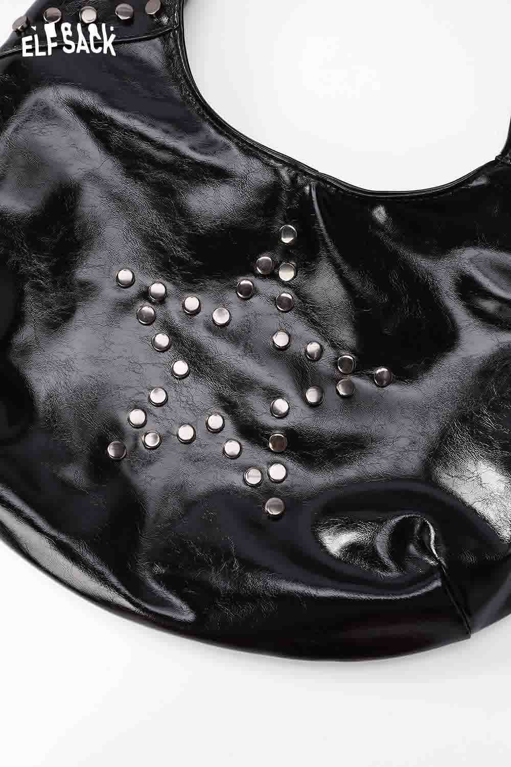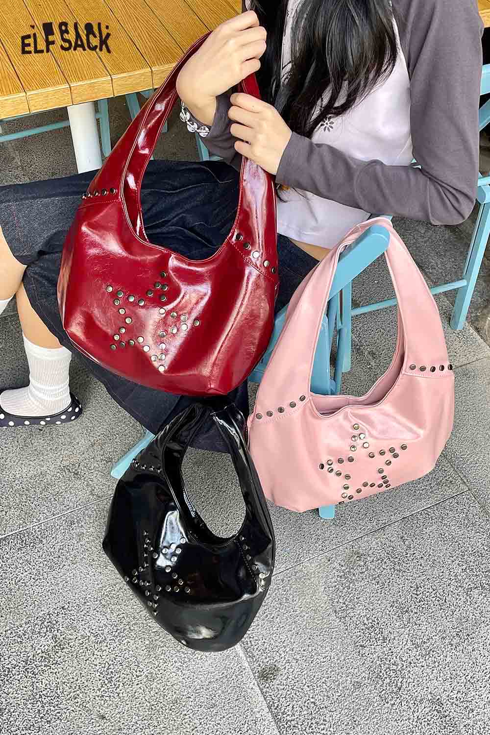 PU Leather Glossy Finish Star Shaped Studded Top Handle Bag