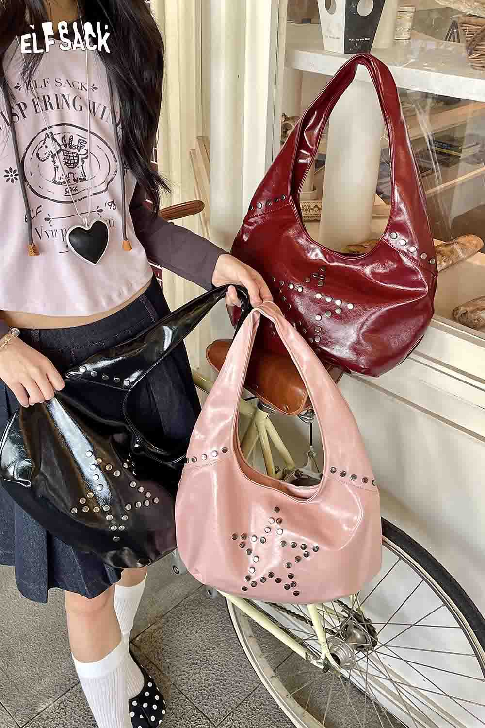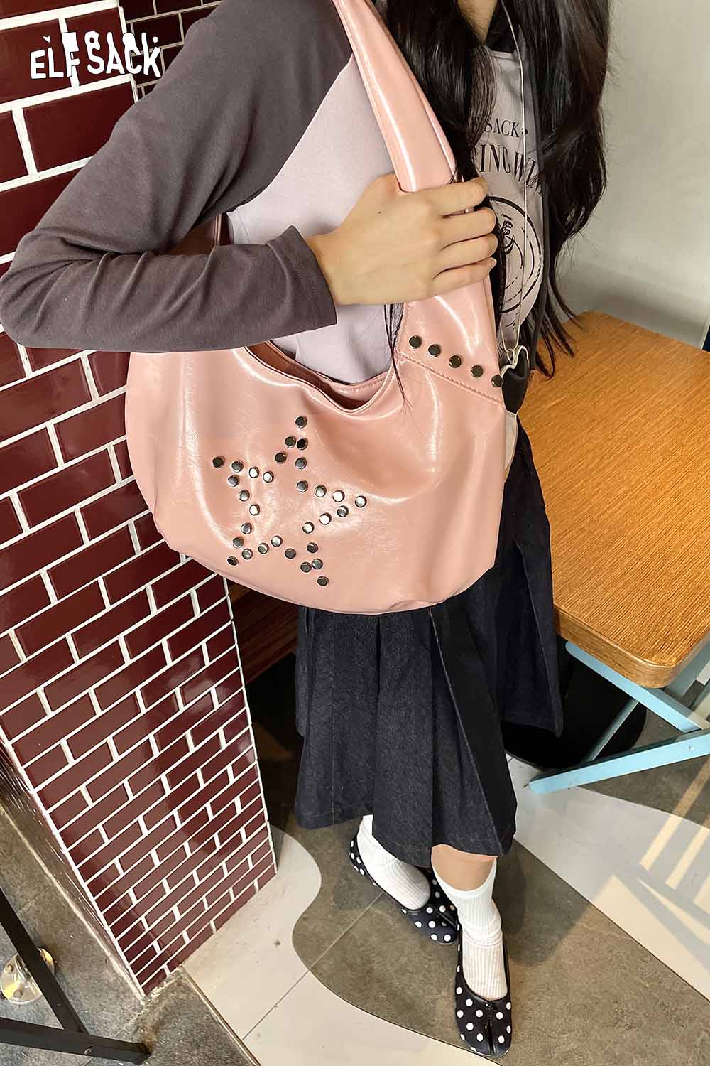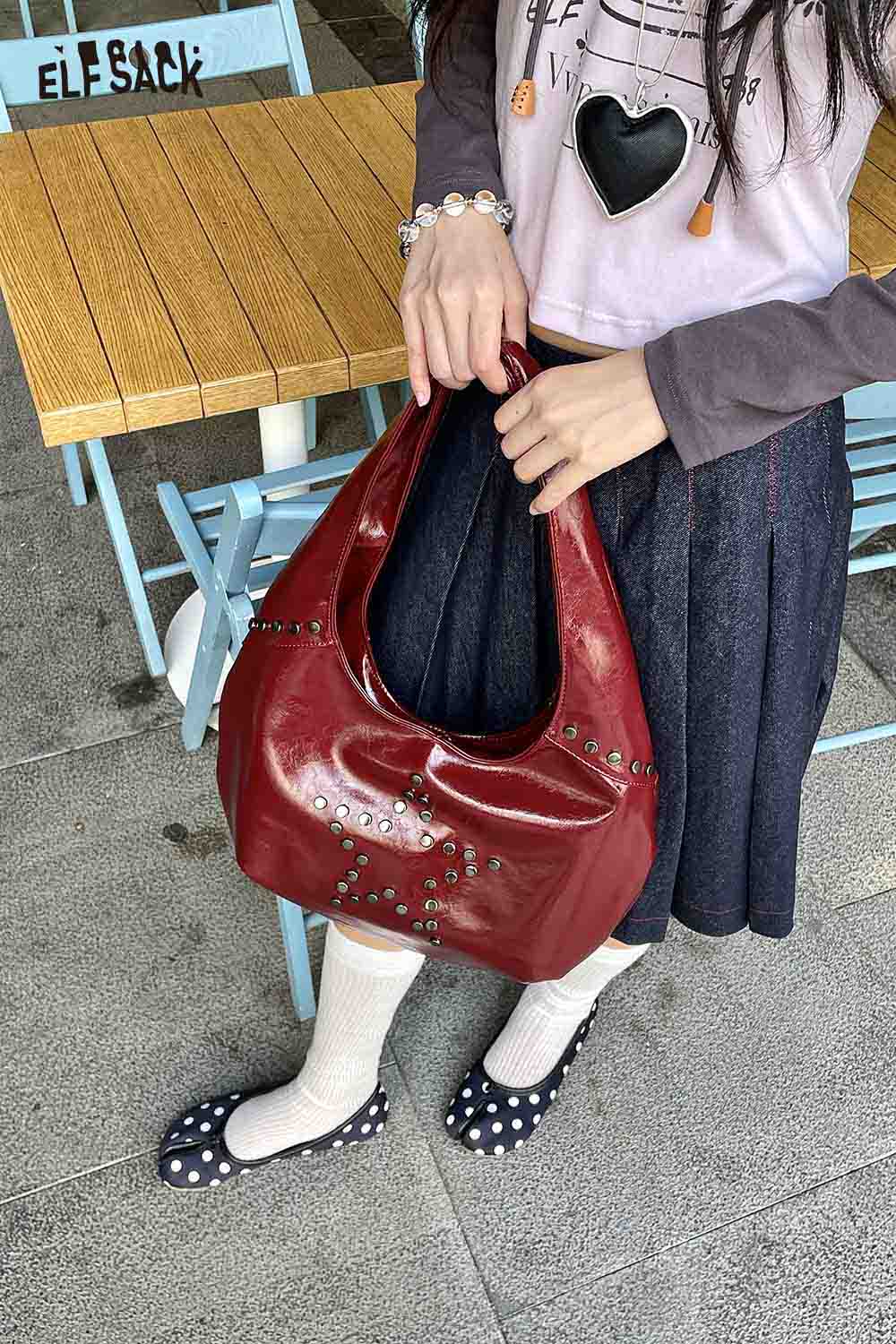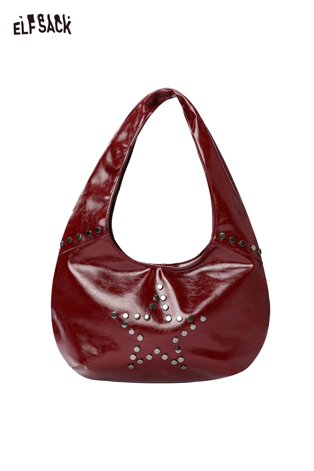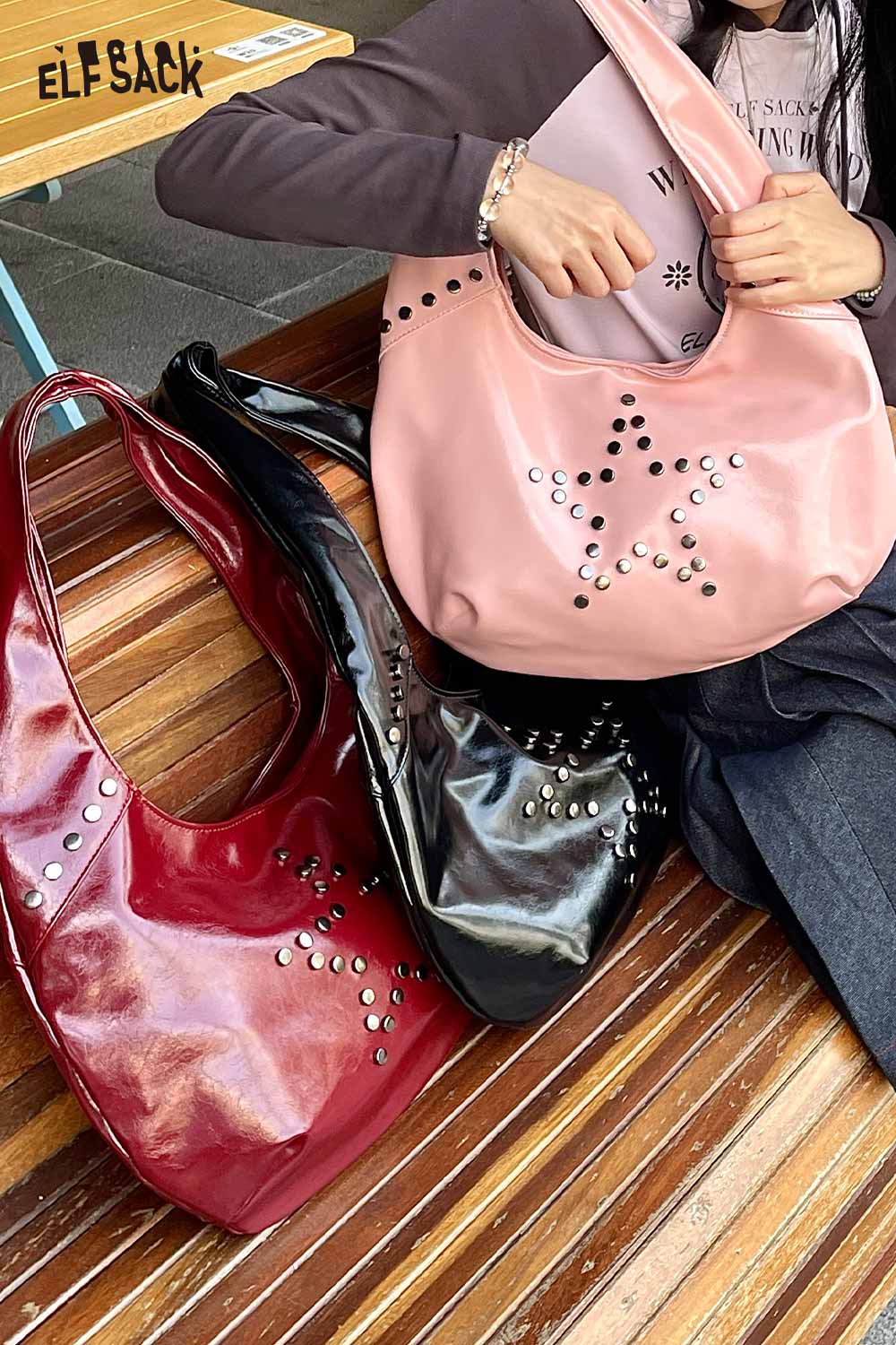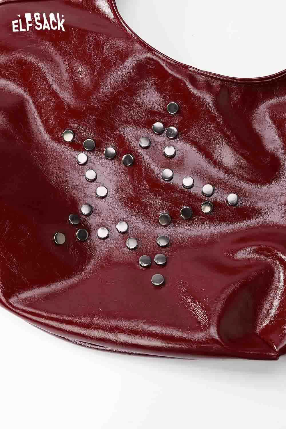 PU Leather Glossy Finish Star Shaped Studded Top Handle Bag