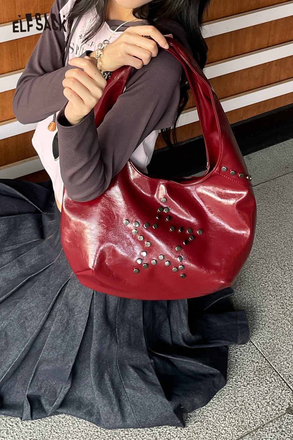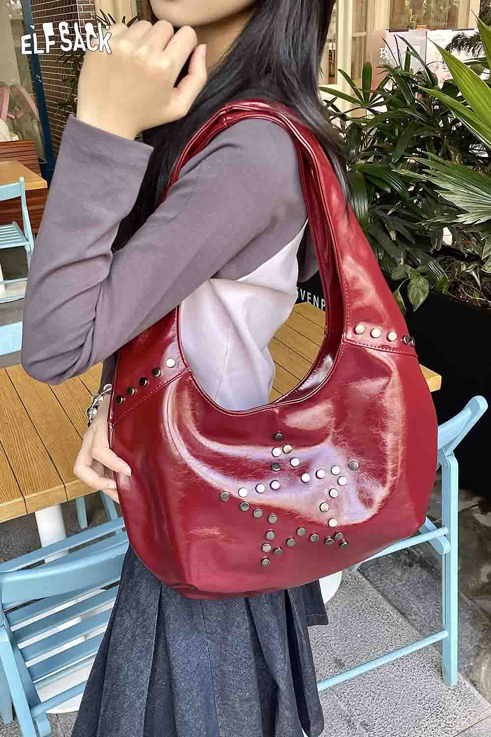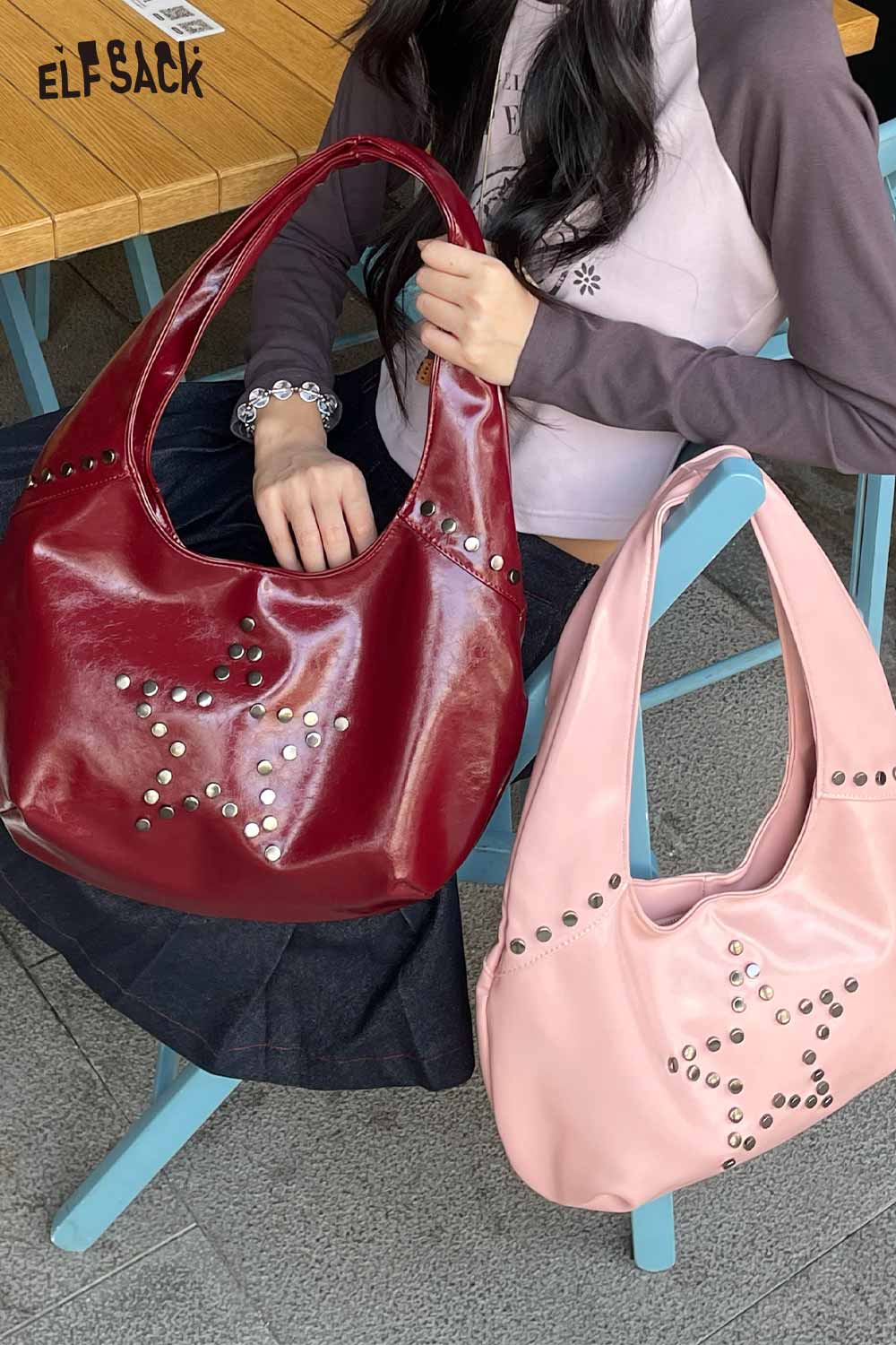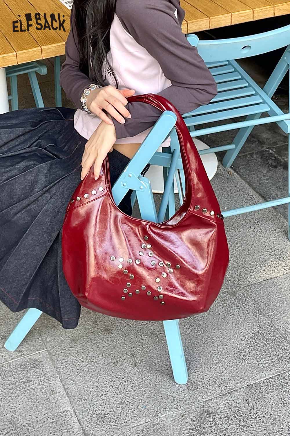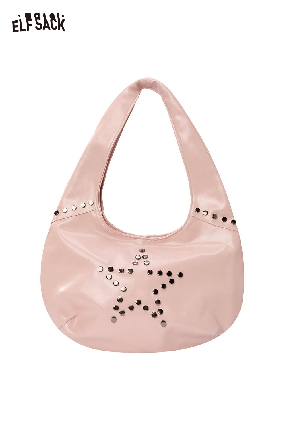 PU Leather Glossy Finish Star Shaped Studded Top Handle Bag