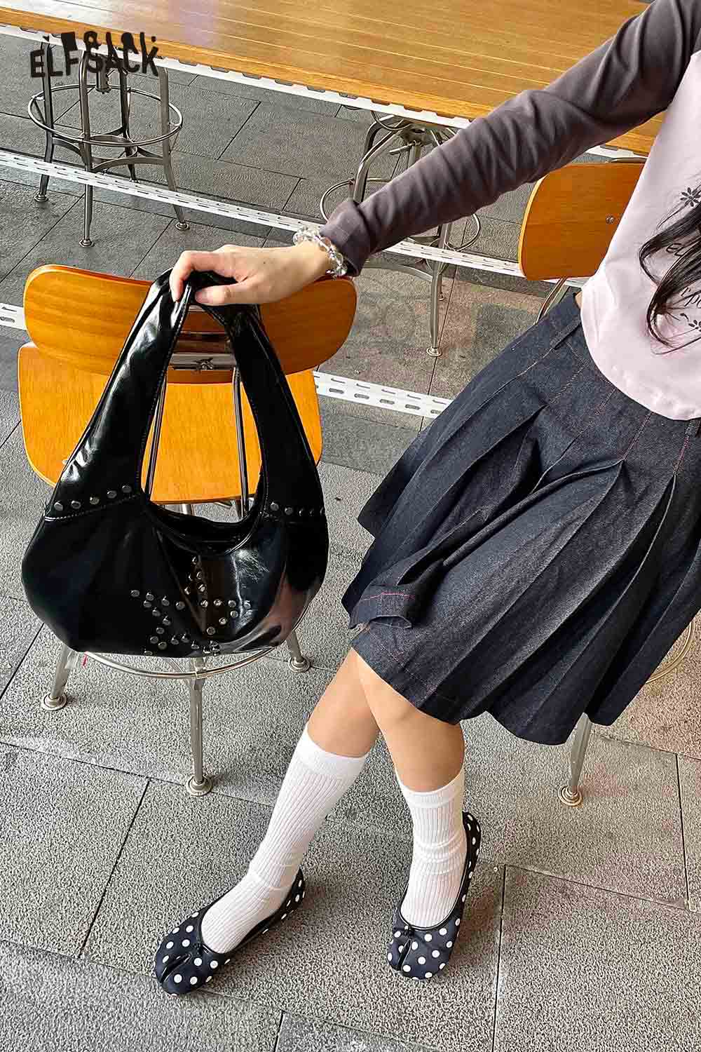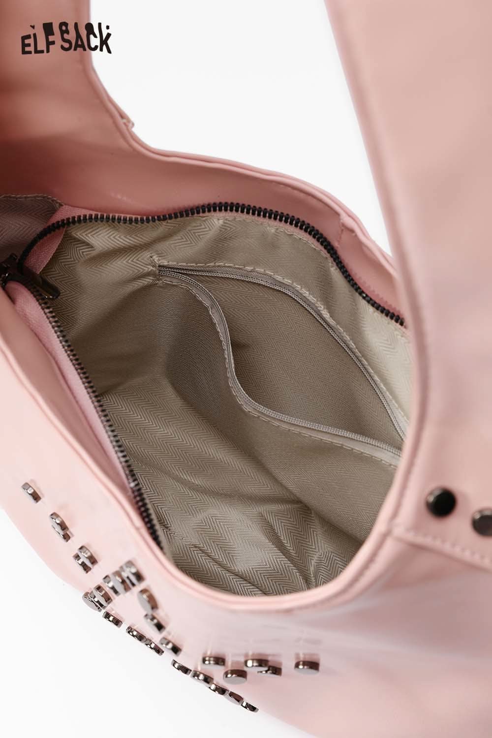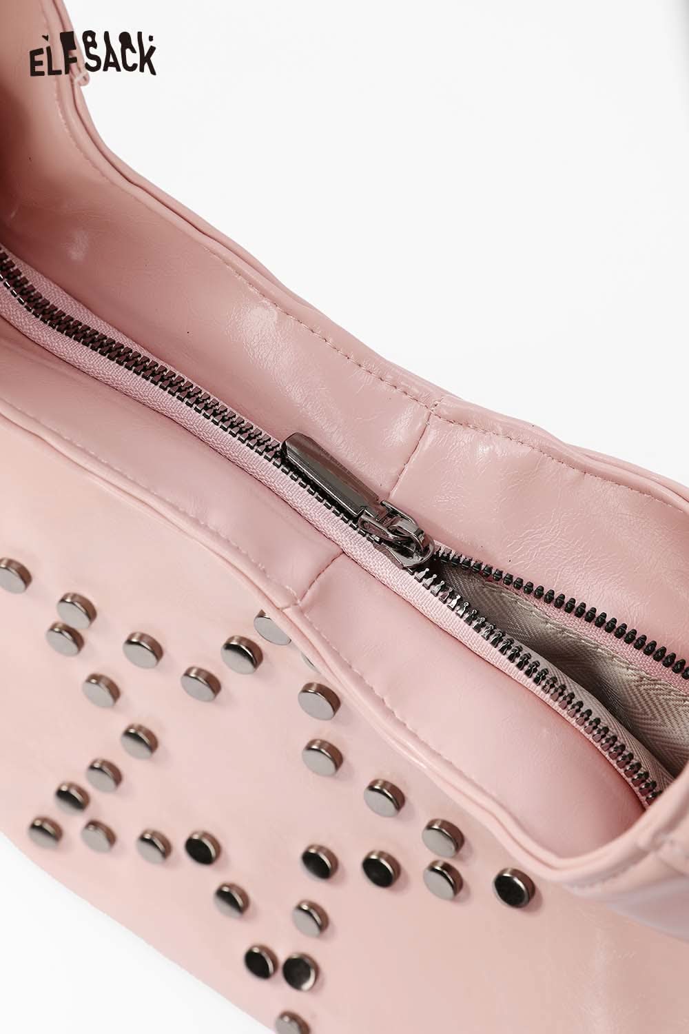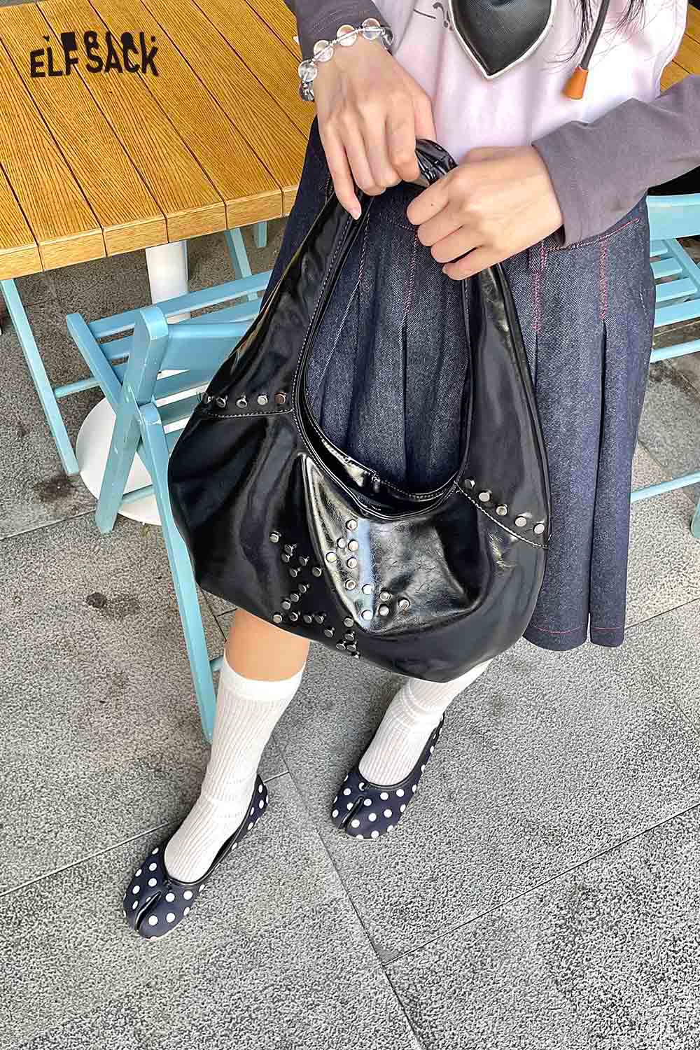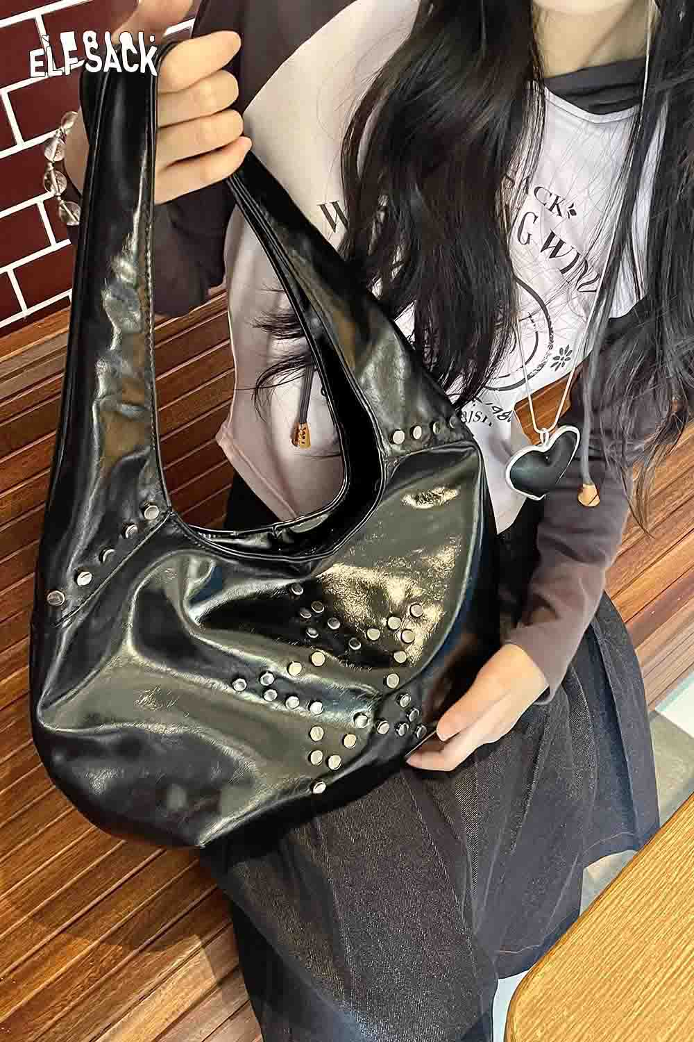 PU Leather Glossy Finish Star Shaped Studded Top Handle Bag