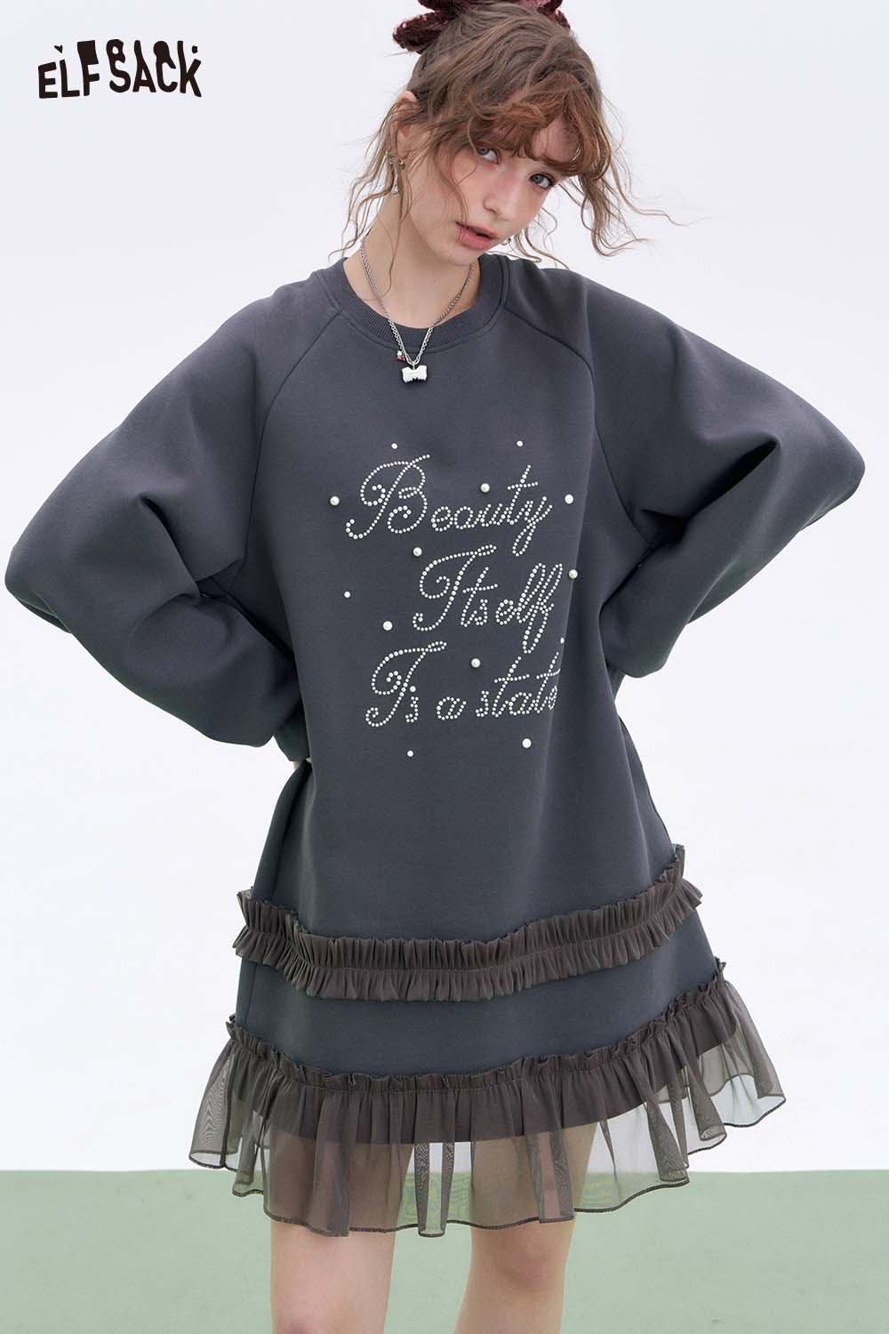 Sweet Petite Bodycon Organza Panel Hoodie Dress