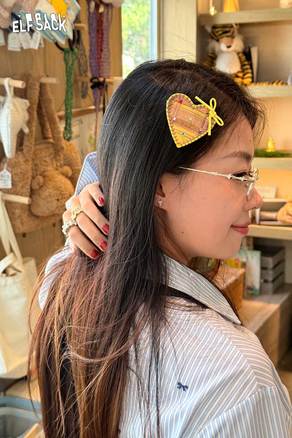 Vintage Plaid Stripe Rhinestone Hair Clip Sweet Design Side Bangs