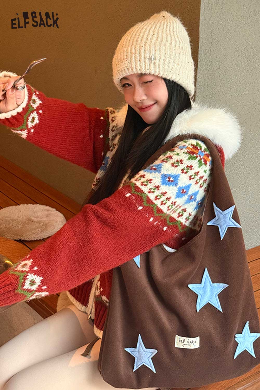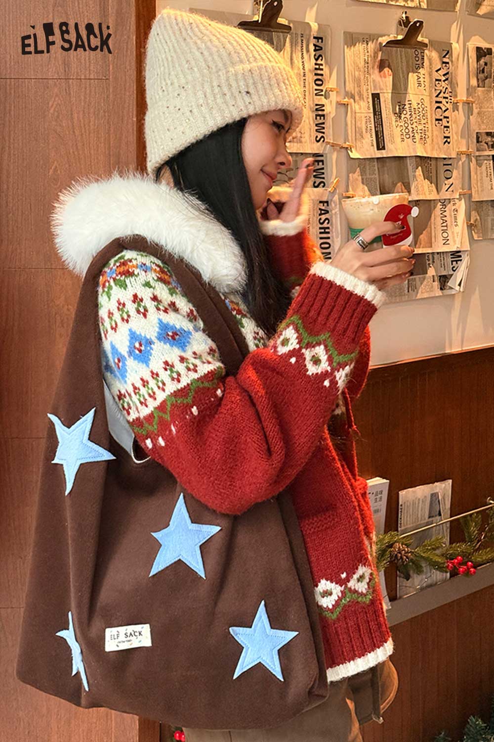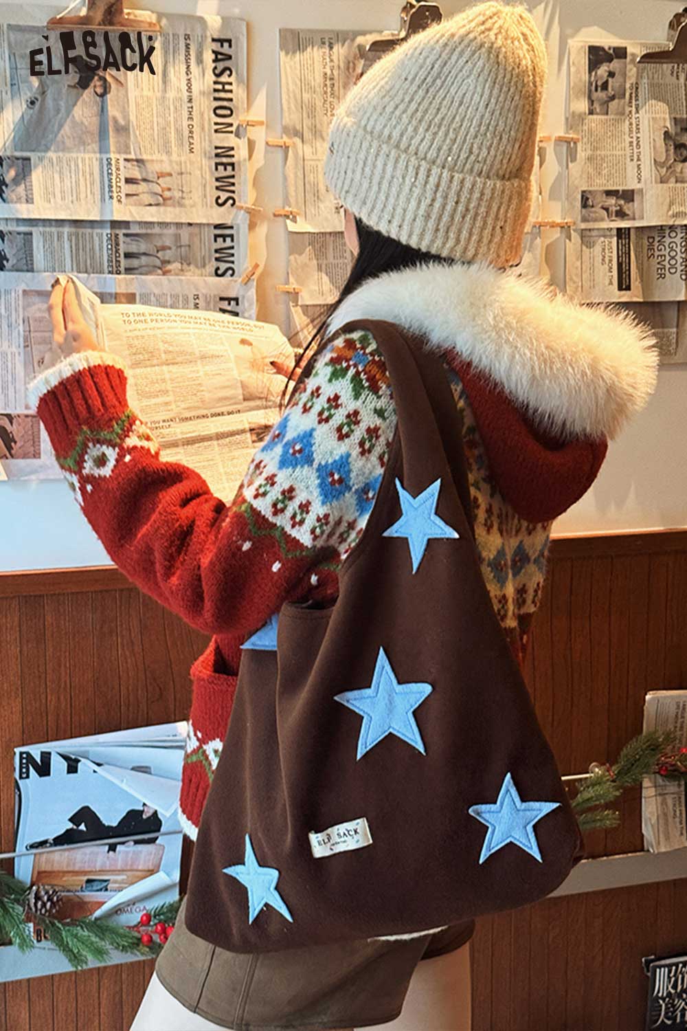 Casual Color Block Star Applique Large Capacity Tote Bag