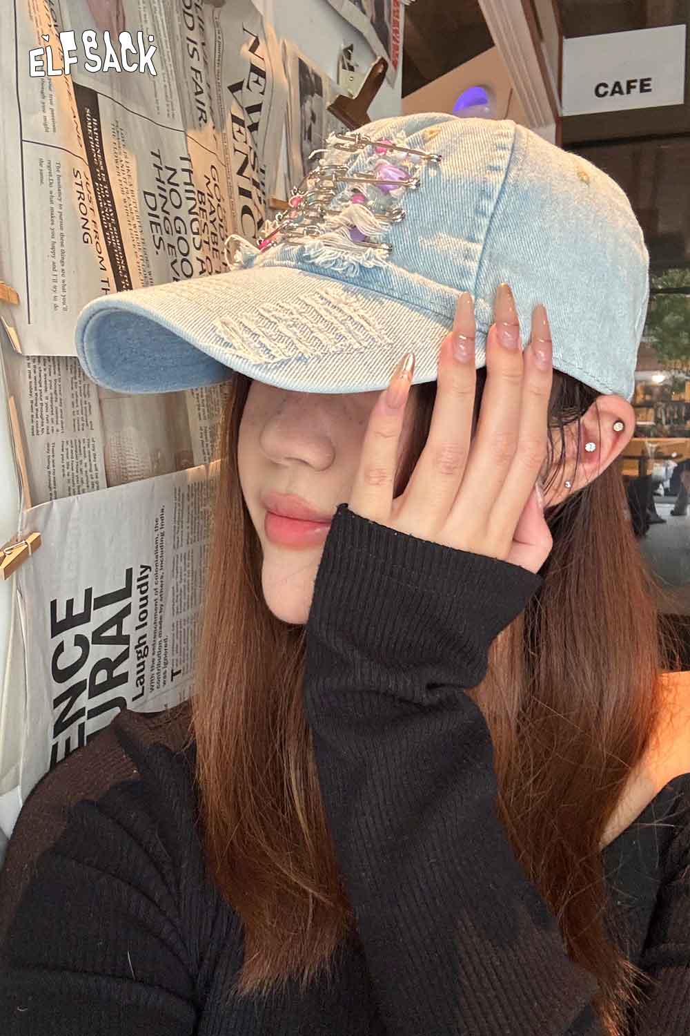 Distressed Denim Baseball Cap