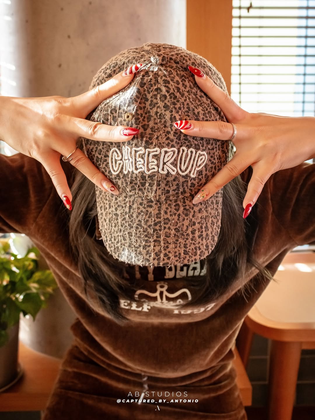 Cotton Twill Leopard Pattern Embroidered Typography Adjustable Strap Cap