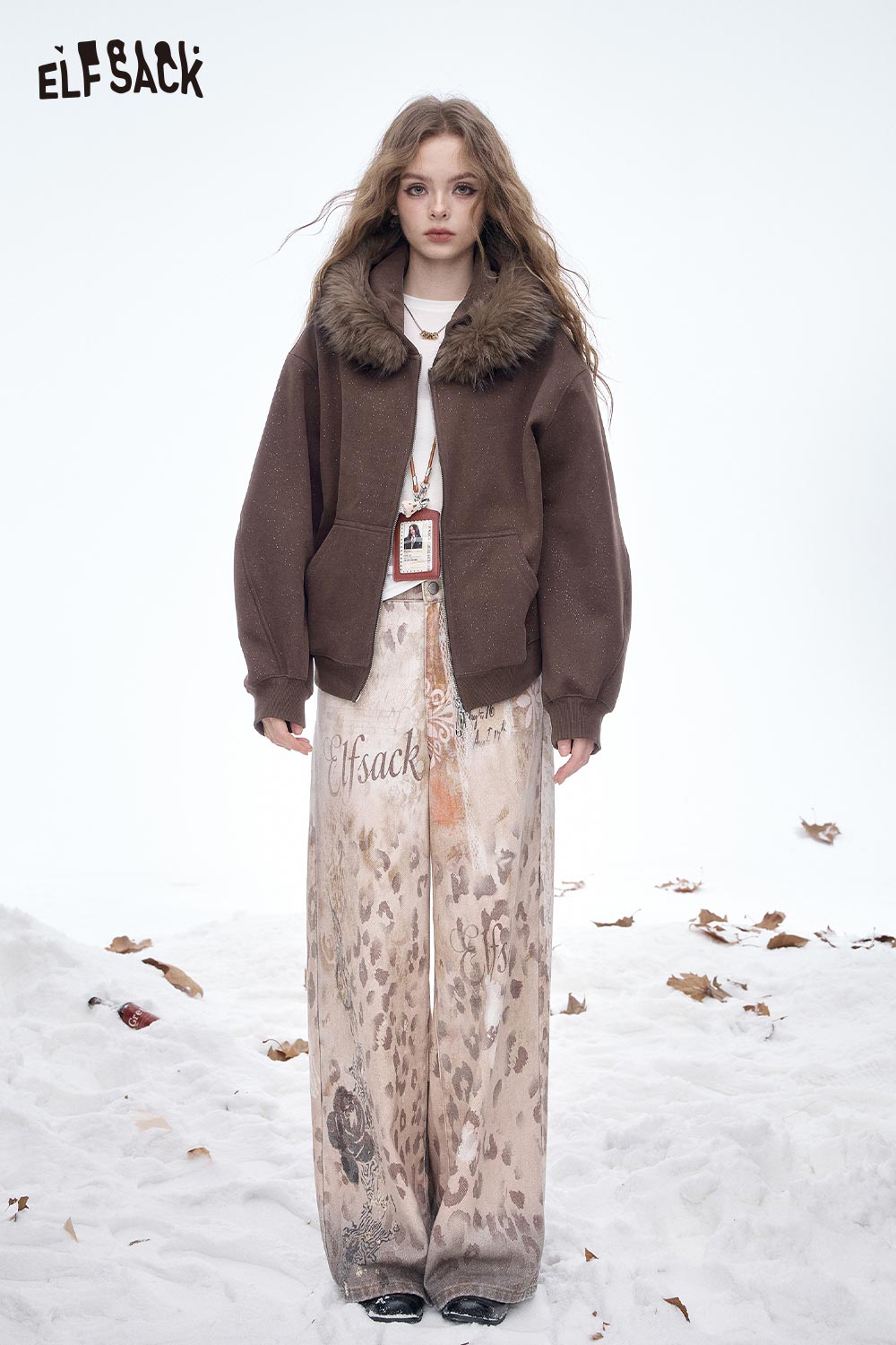 Soft Loose Fit Plush Panel Lapel Collar Puffer Jacket