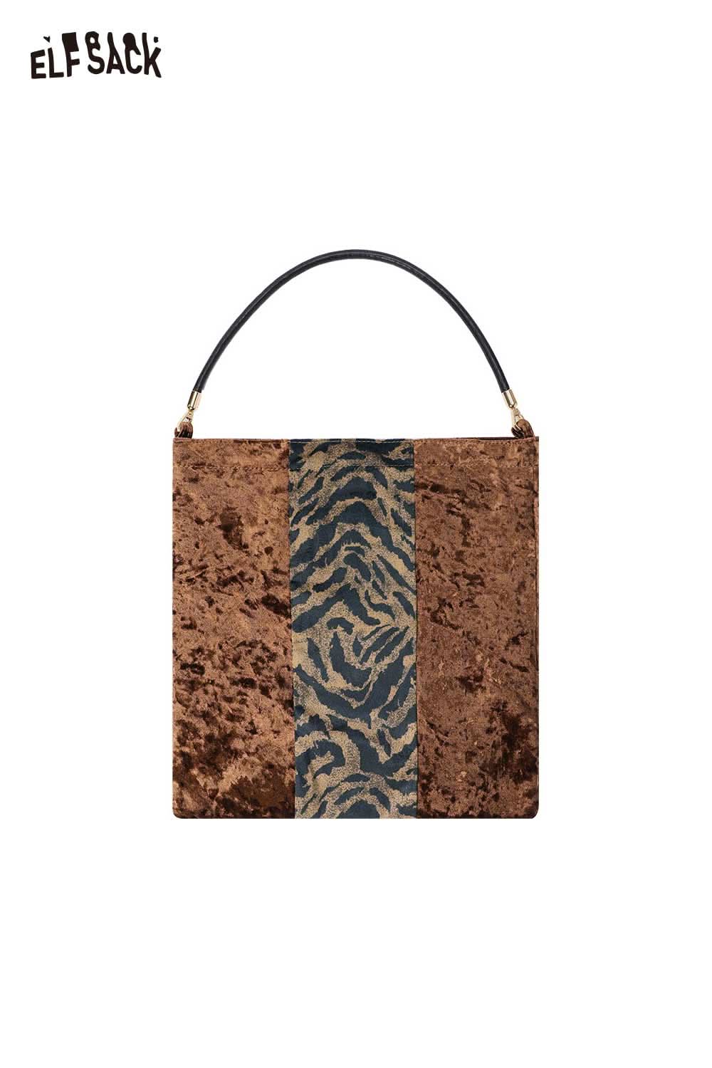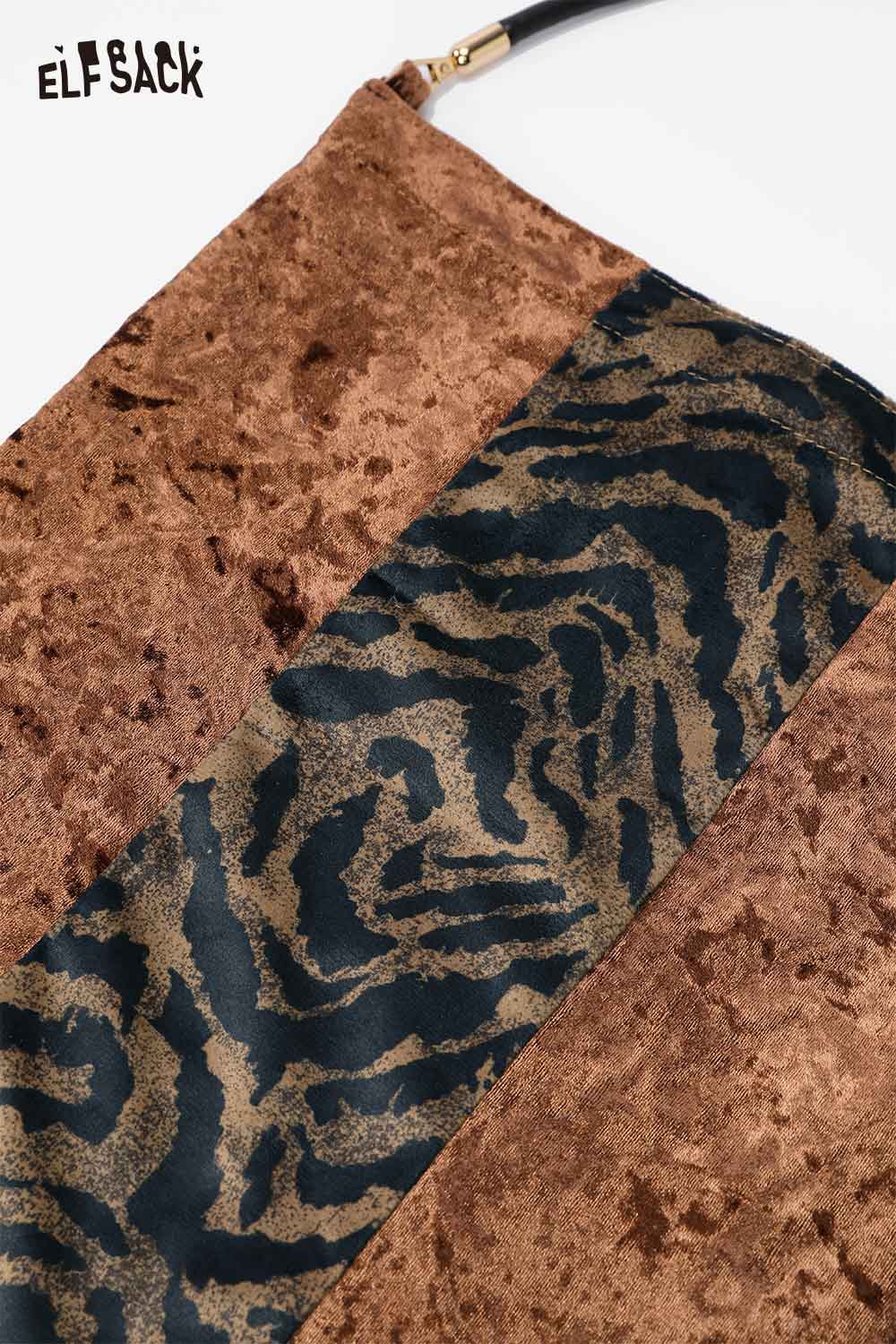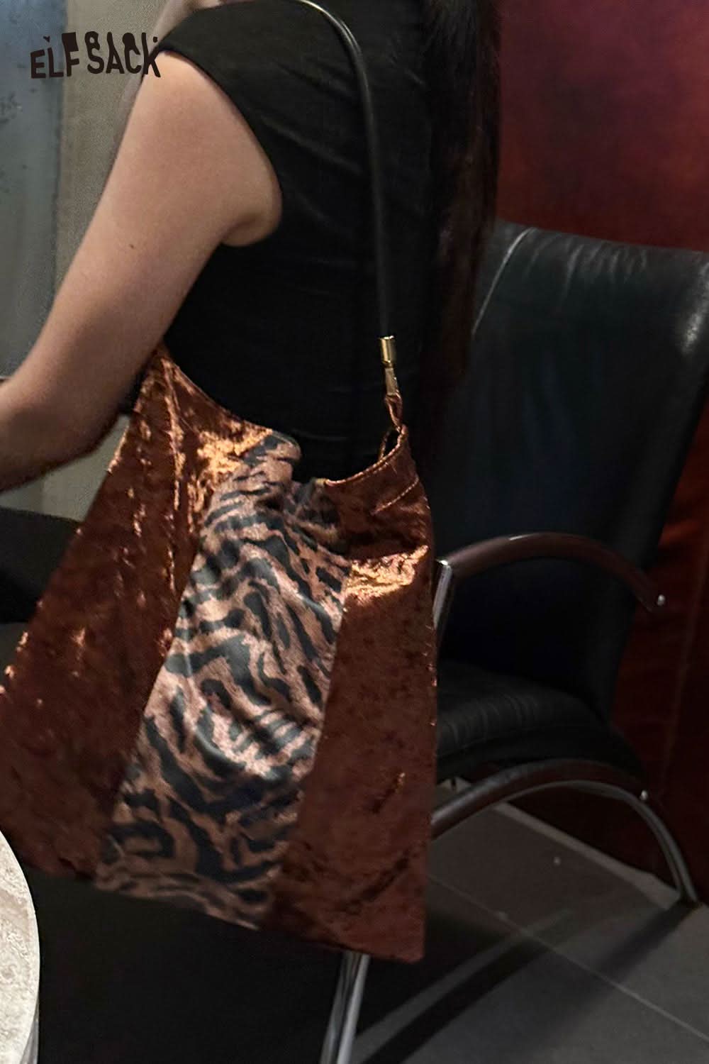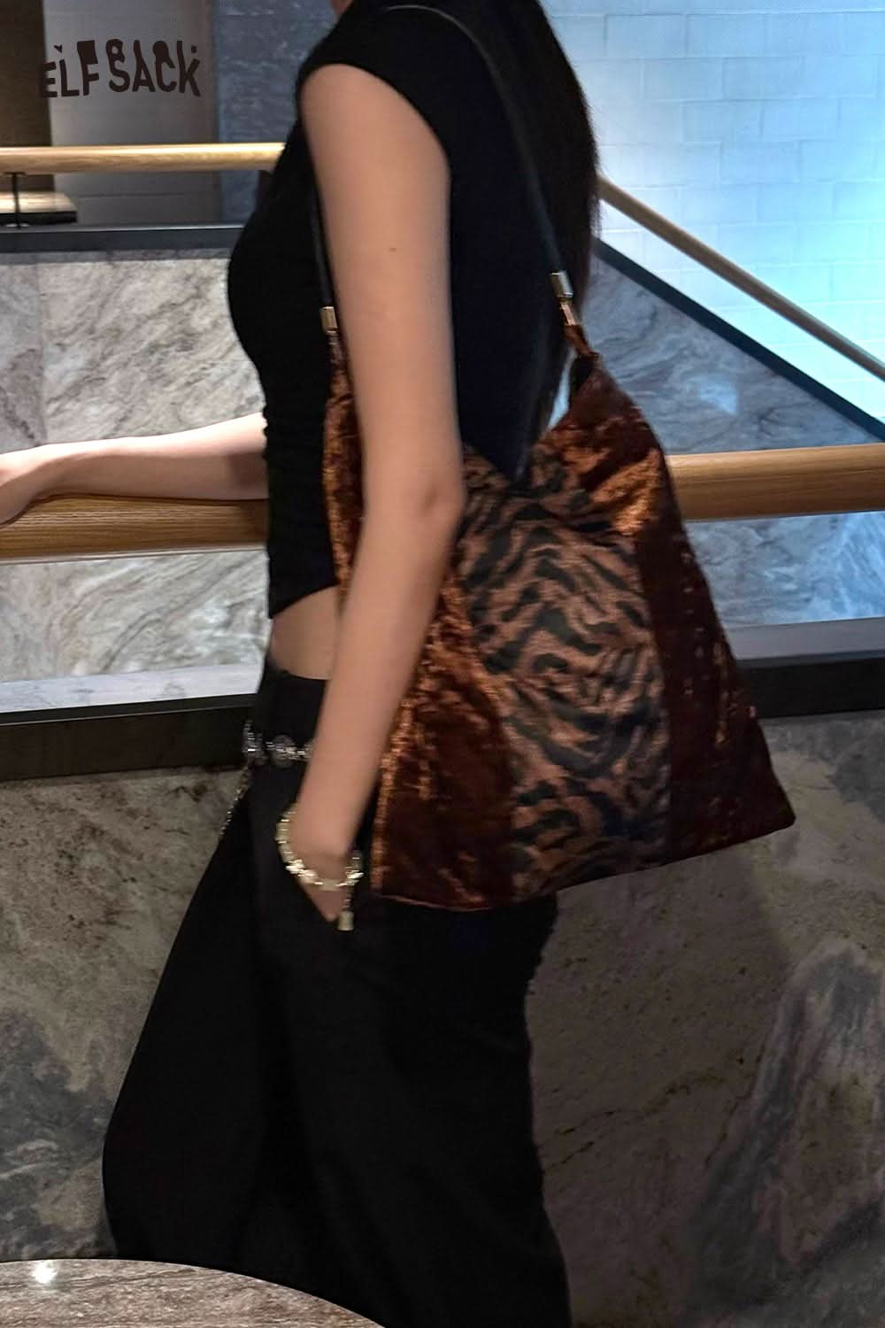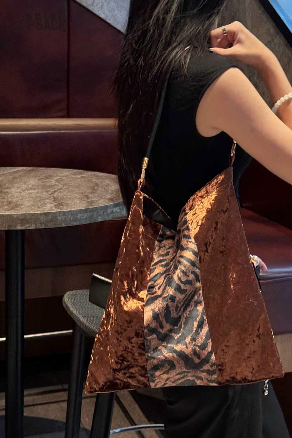 Faux Suede Leopard Print with Flock Detailing Contrast Panel Shoulder Bag