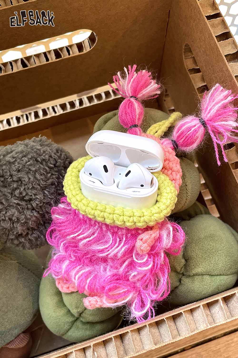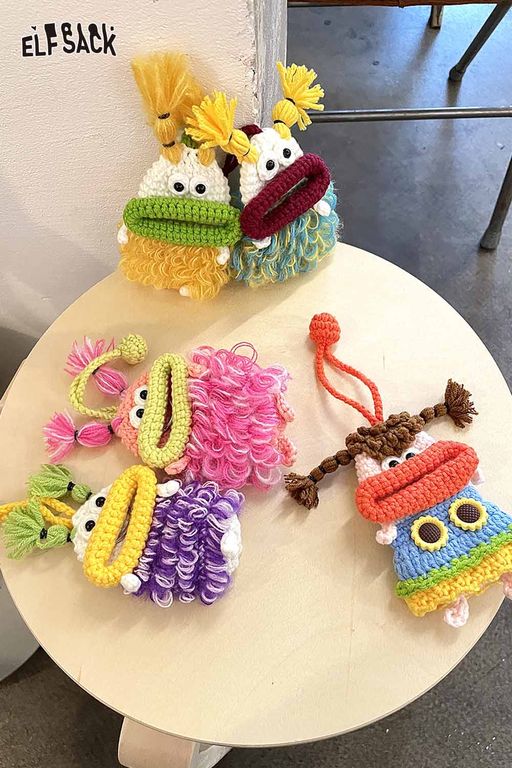 Handcrafted Knitted Key Cover with Playful Character Design