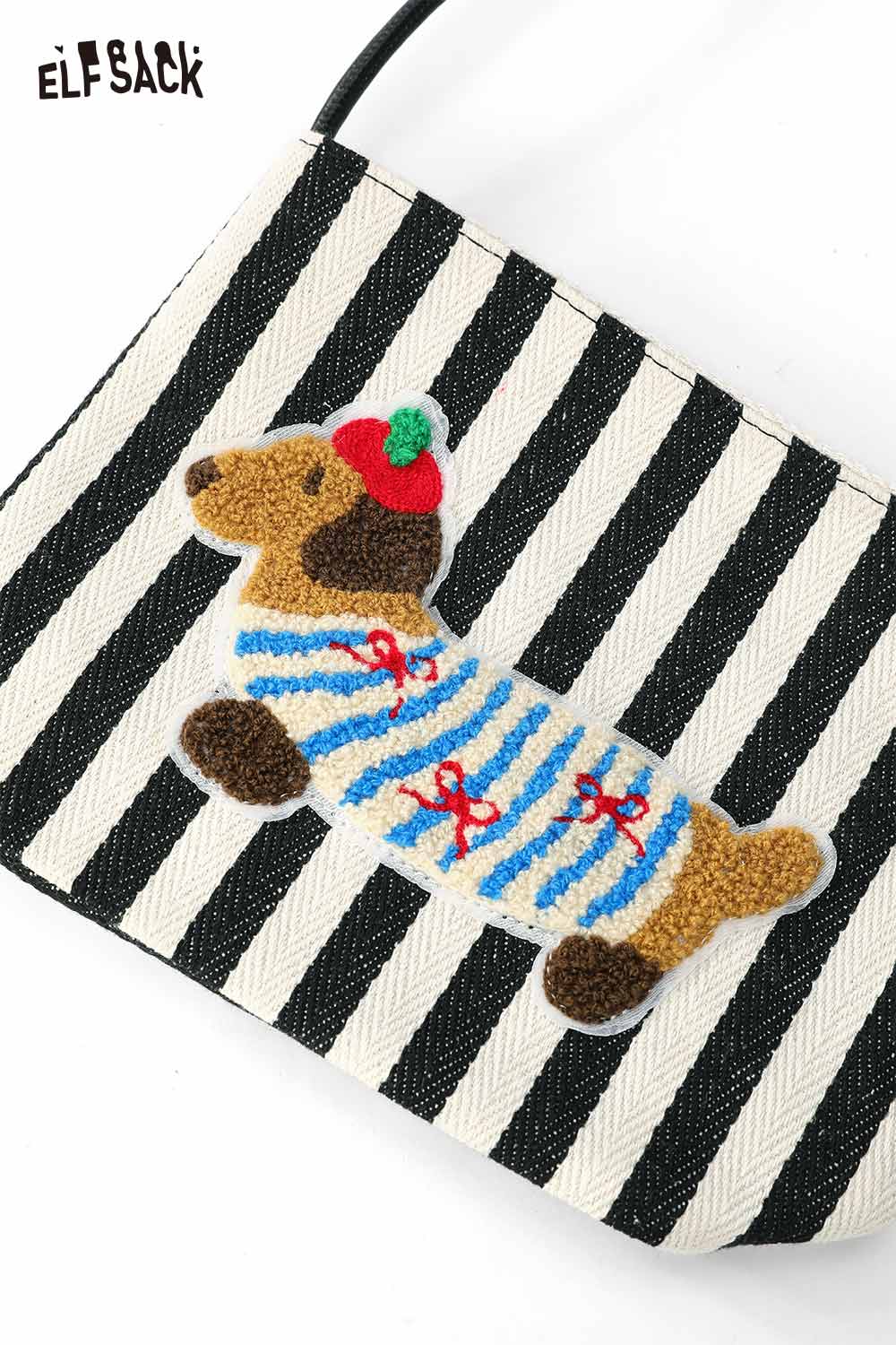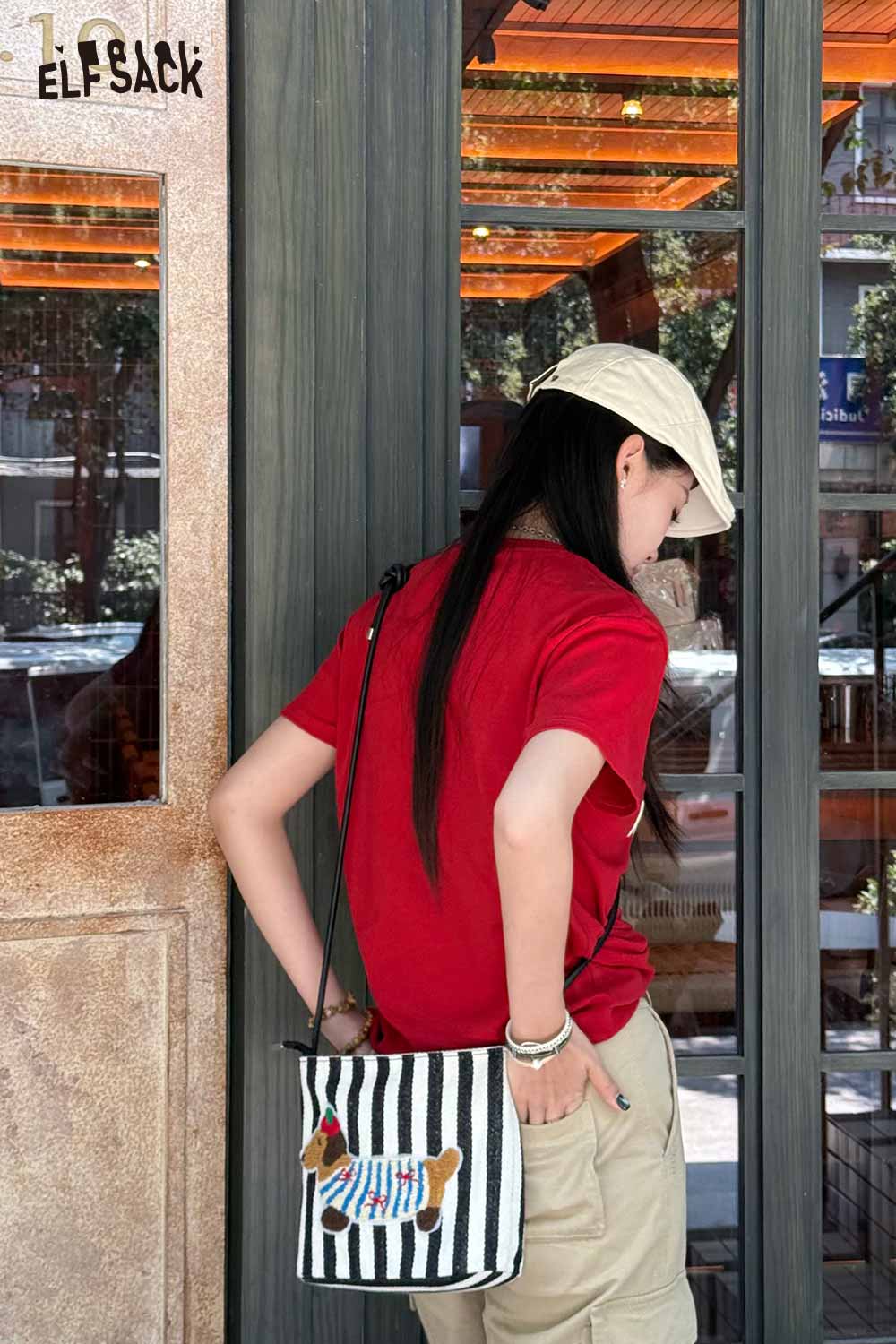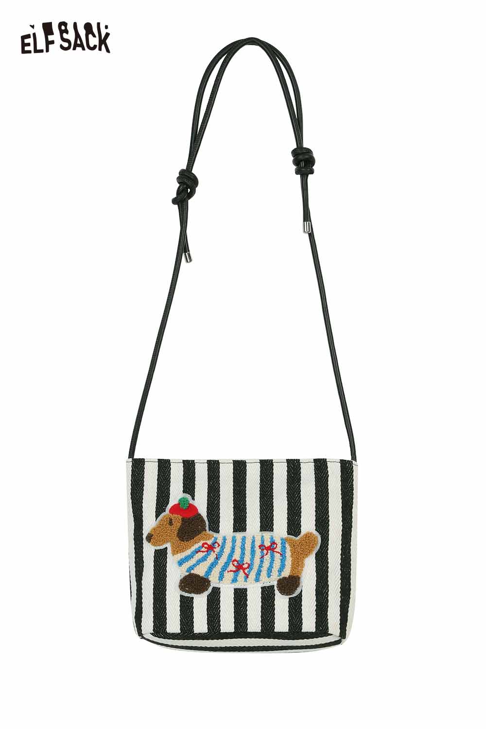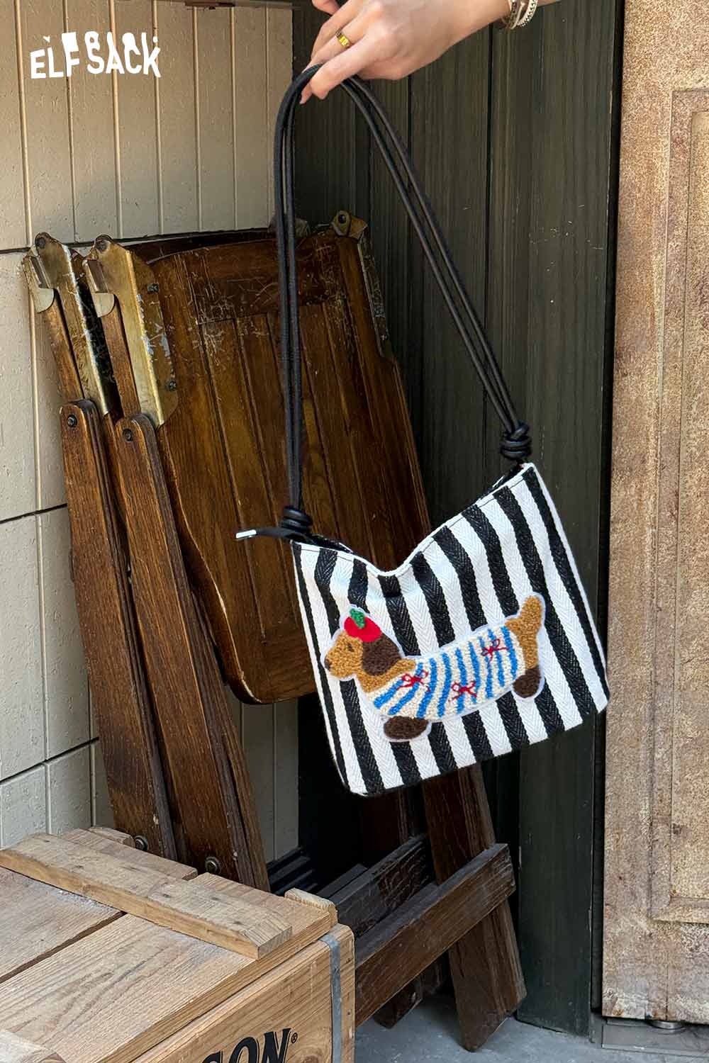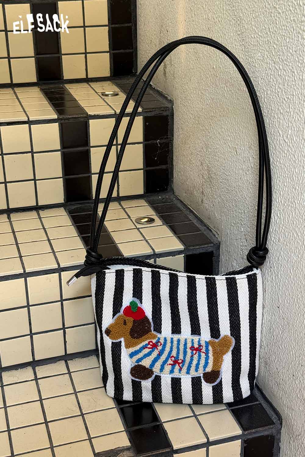 Light Cherry Dachshund Stripe Color Block Shoulder Bag