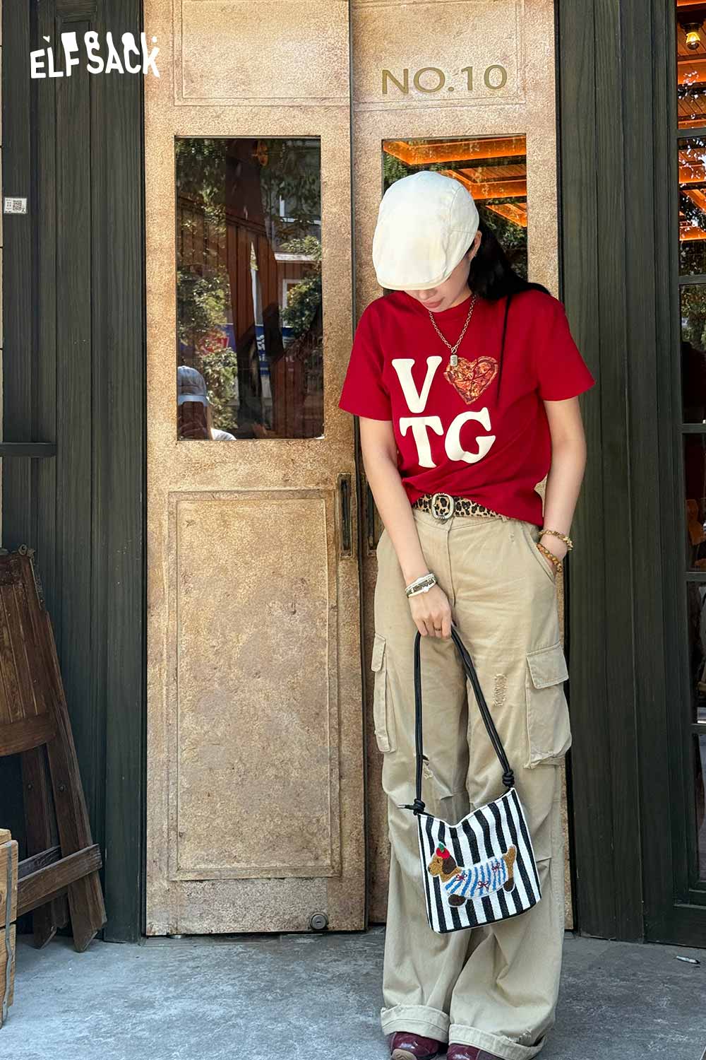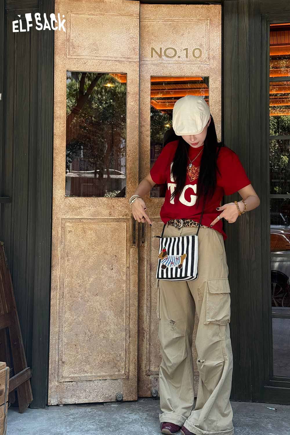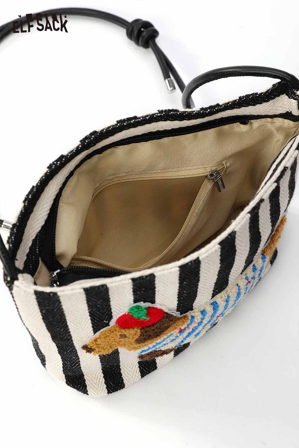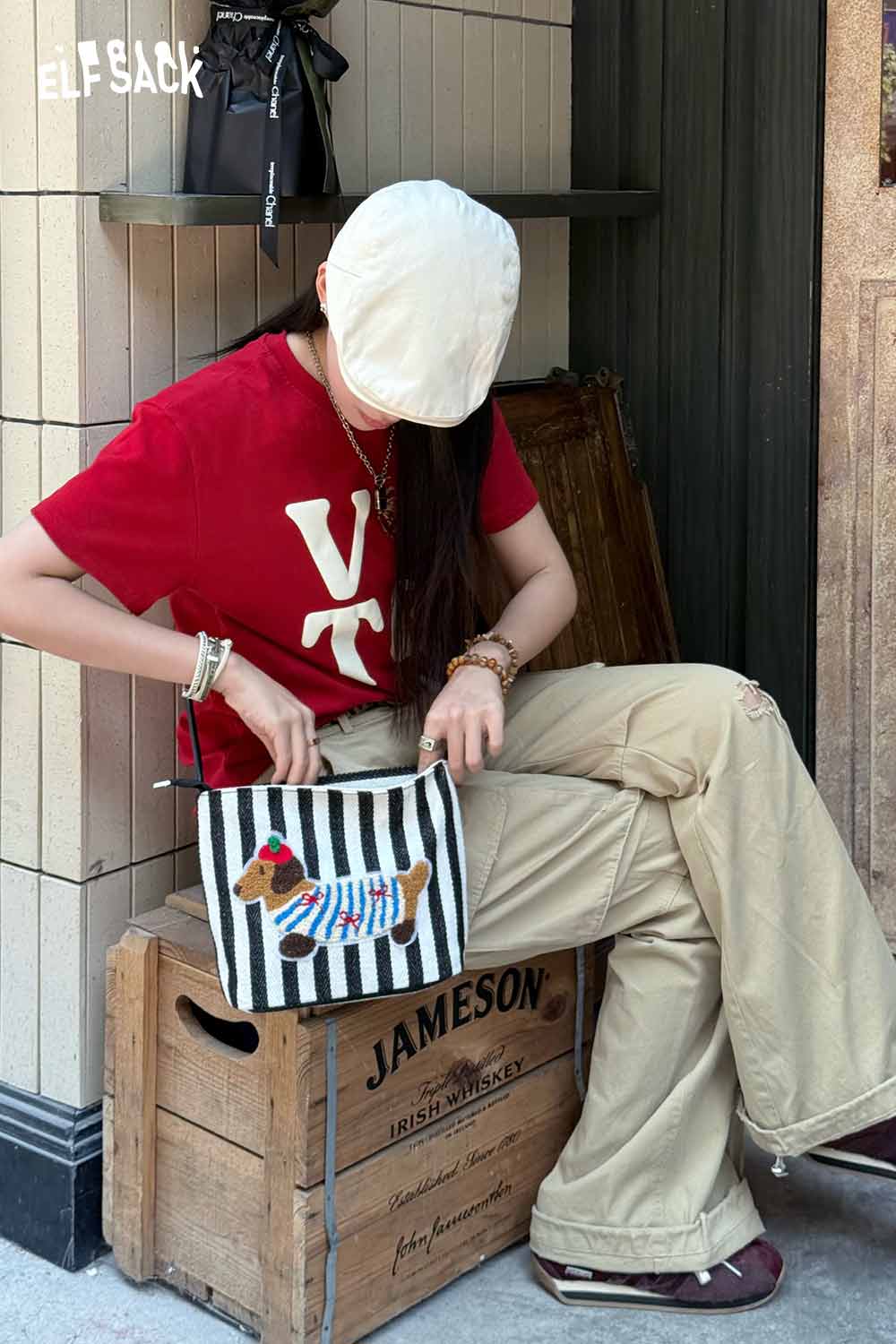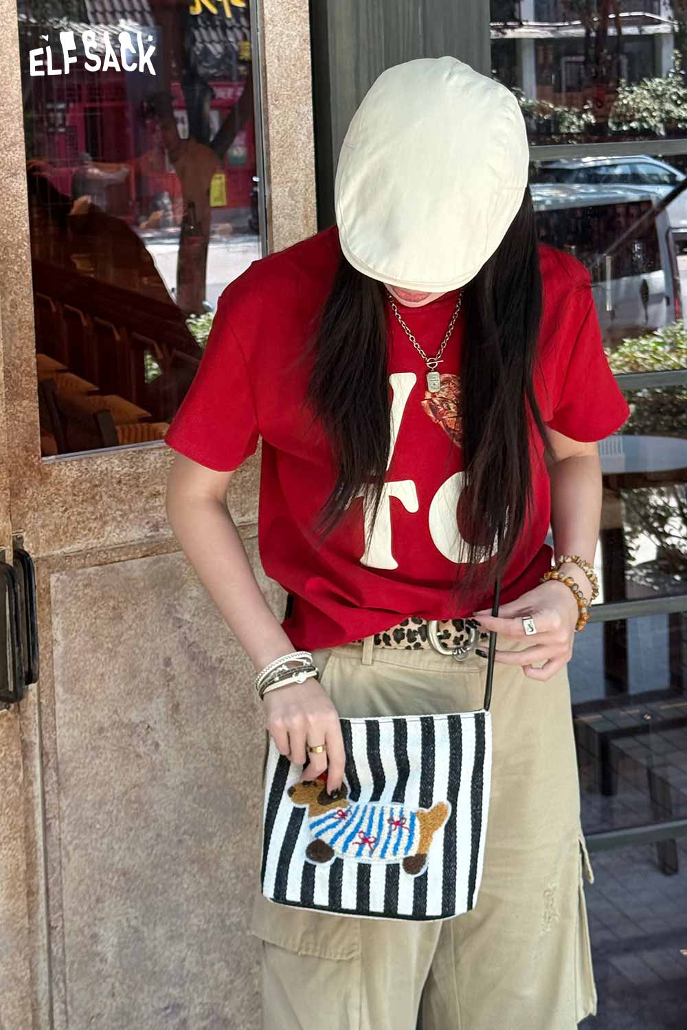 Light Cherry Dachshund Stripe Color Block Shoulder Bag