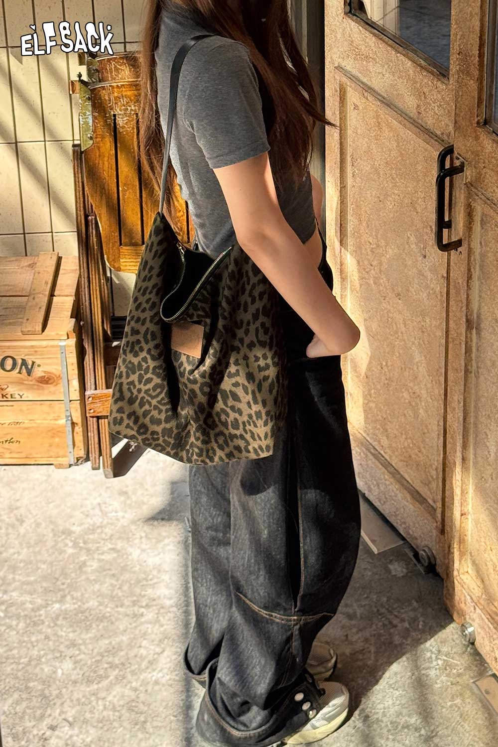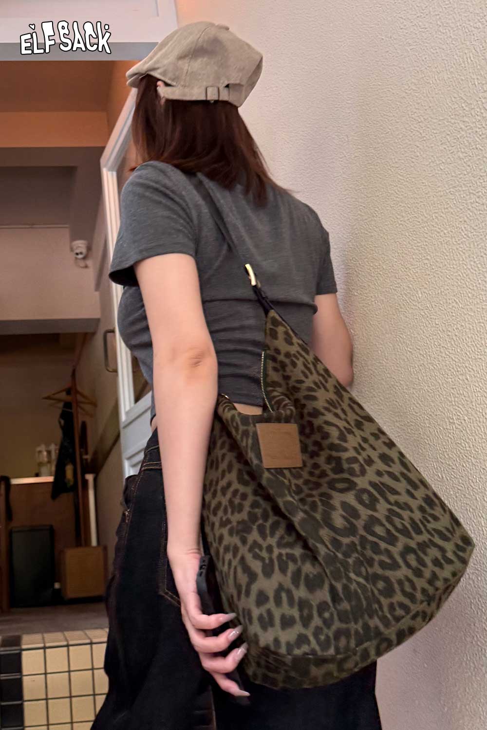 Light Leopard Print Versatile Shoulder Tote Bag