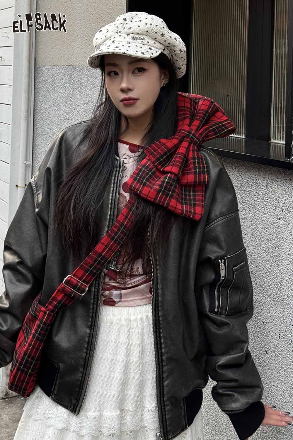 Sweet Plaid Bow Adjustable Strap Portable Shoulder Bag Crossbody Bag