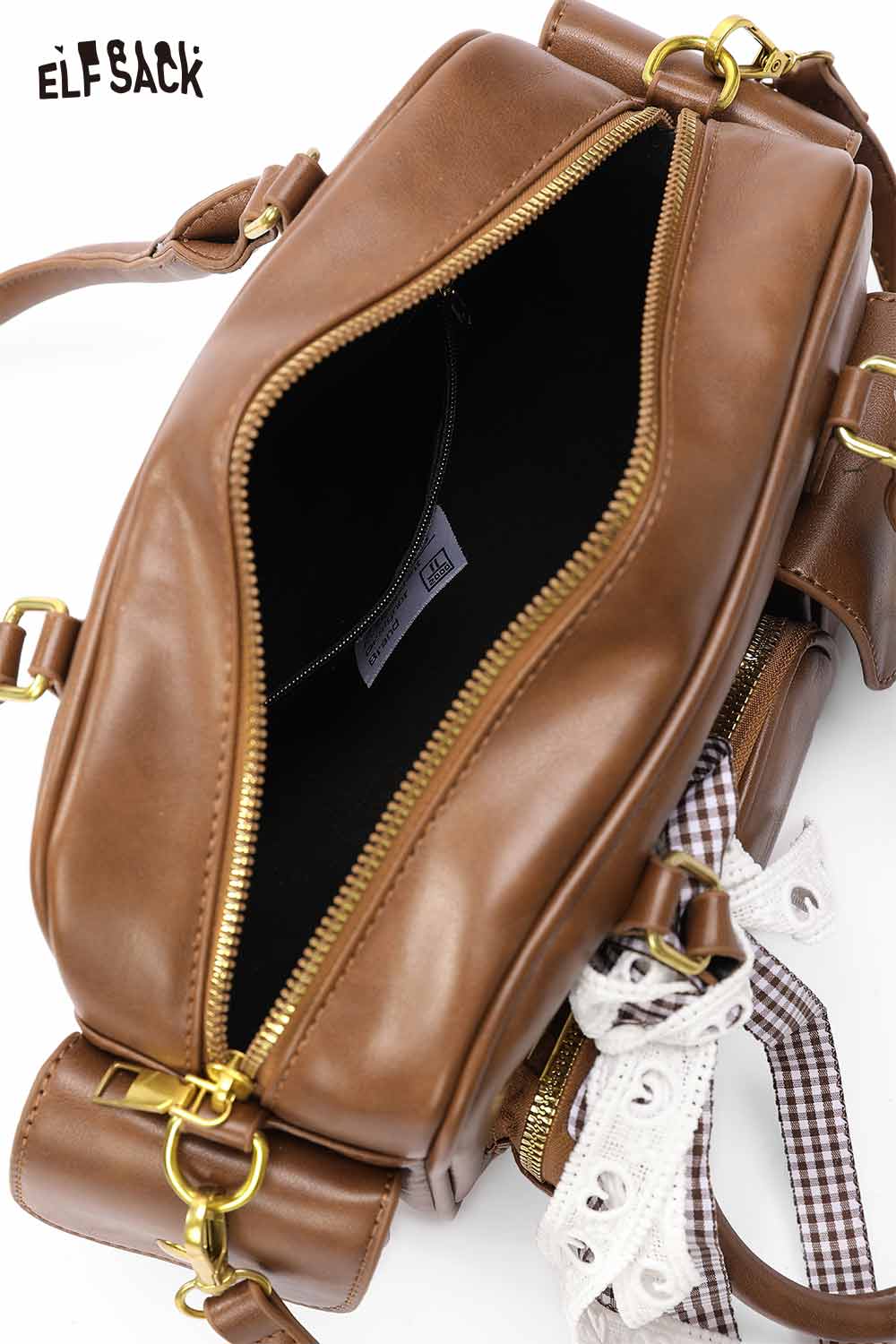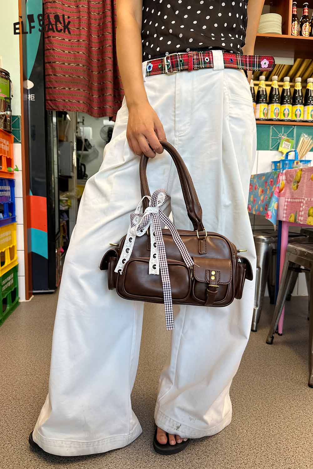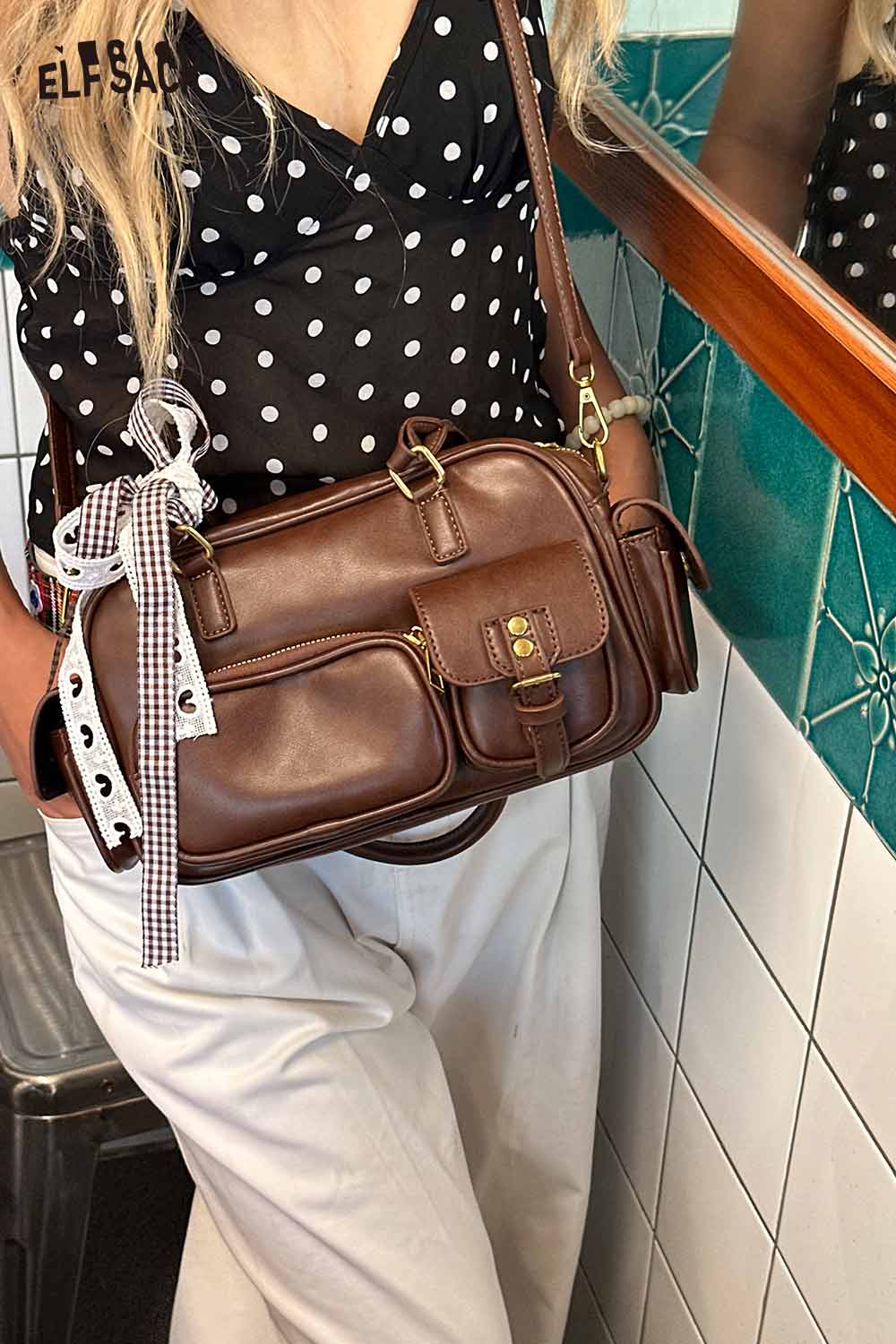 Pu Leather Multi-Pocket Preppy Shoulder Bowling Bag