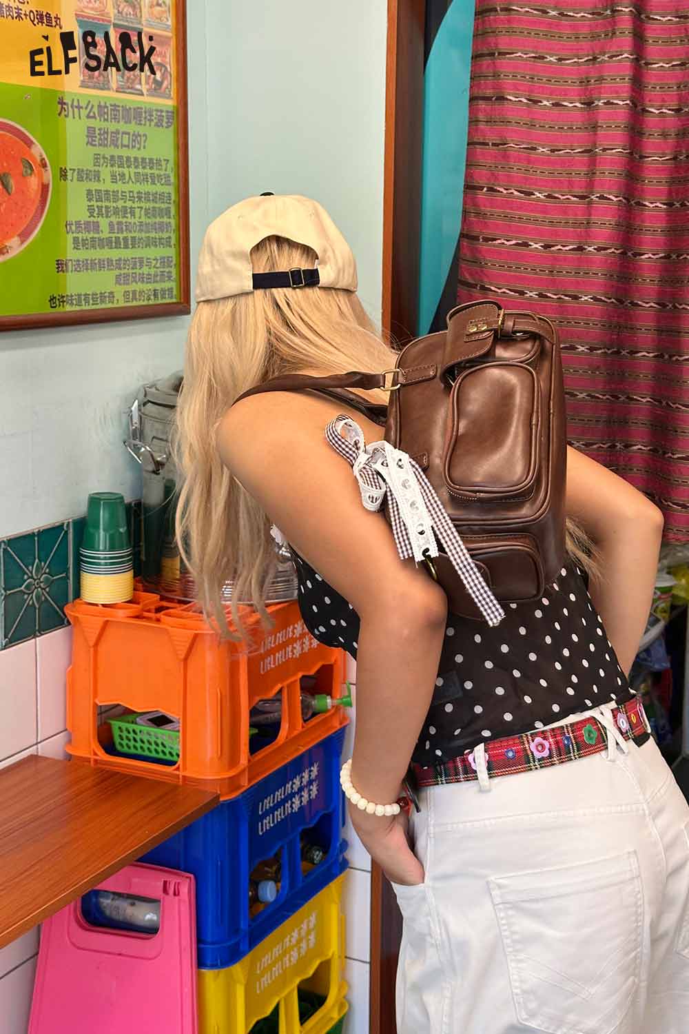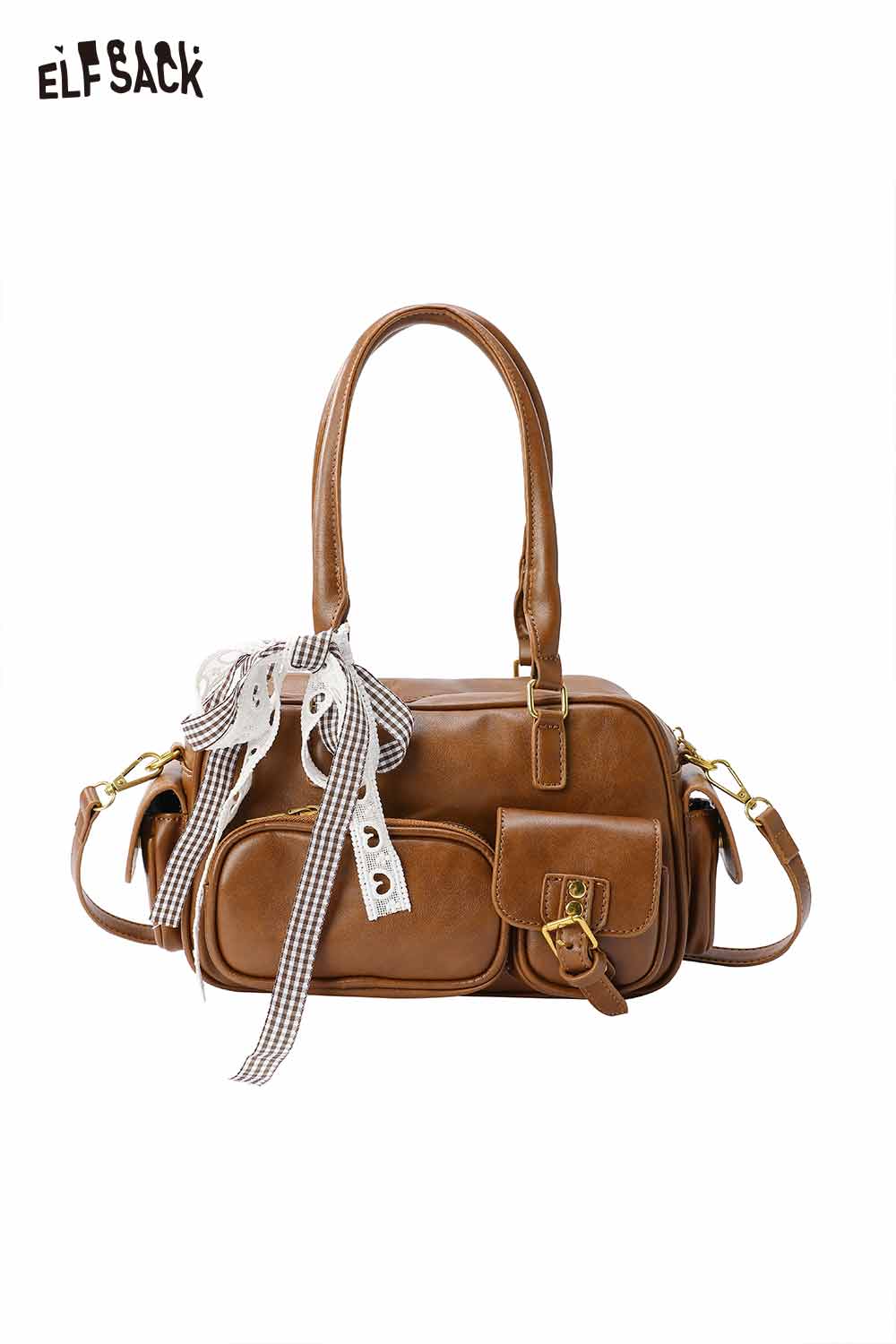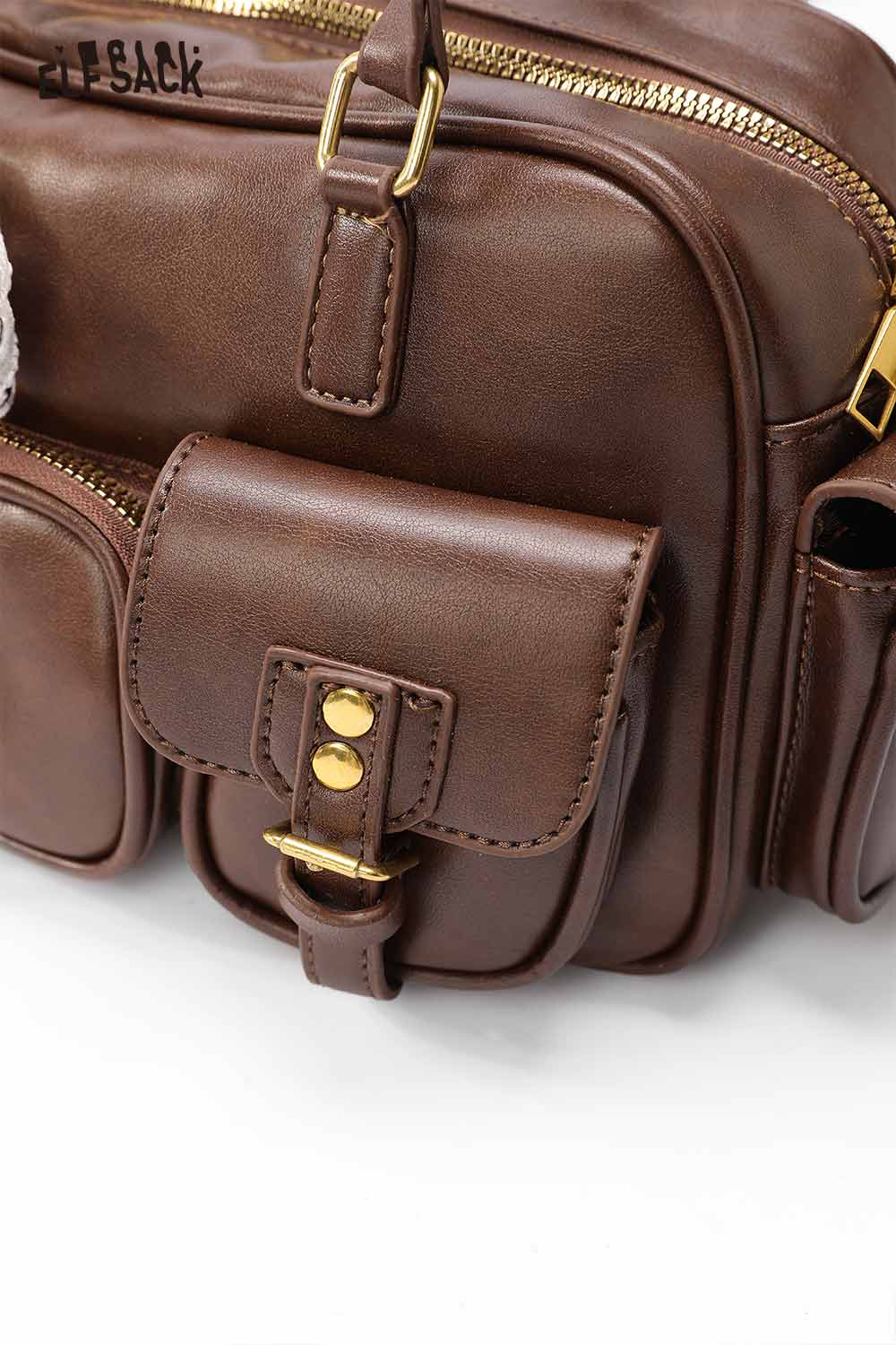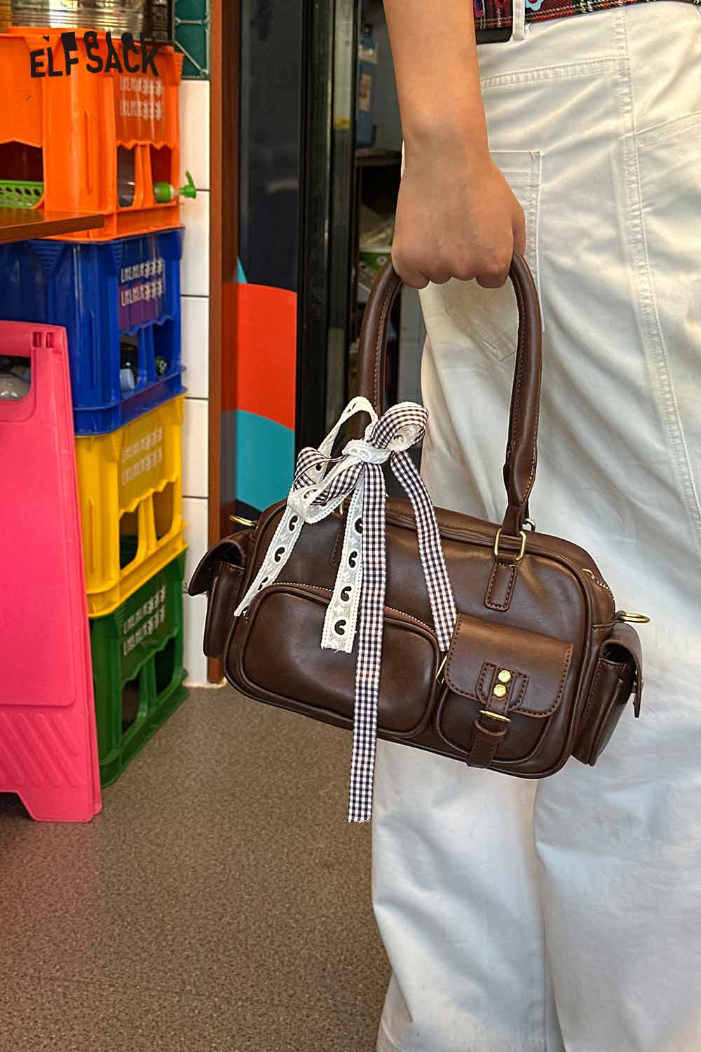 Pu Leather Multi-Pocket Preppy Shoulder Bowling Bag