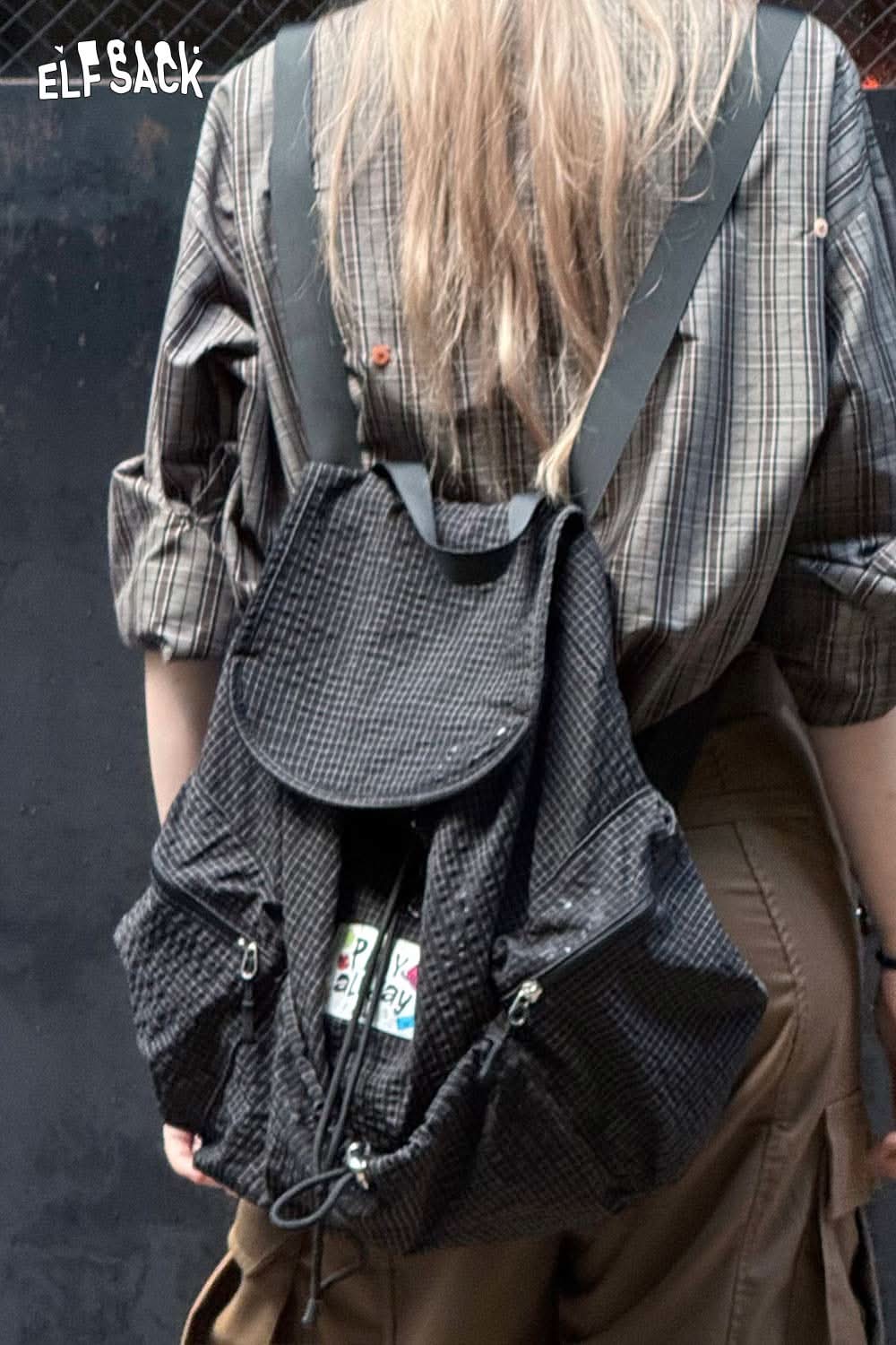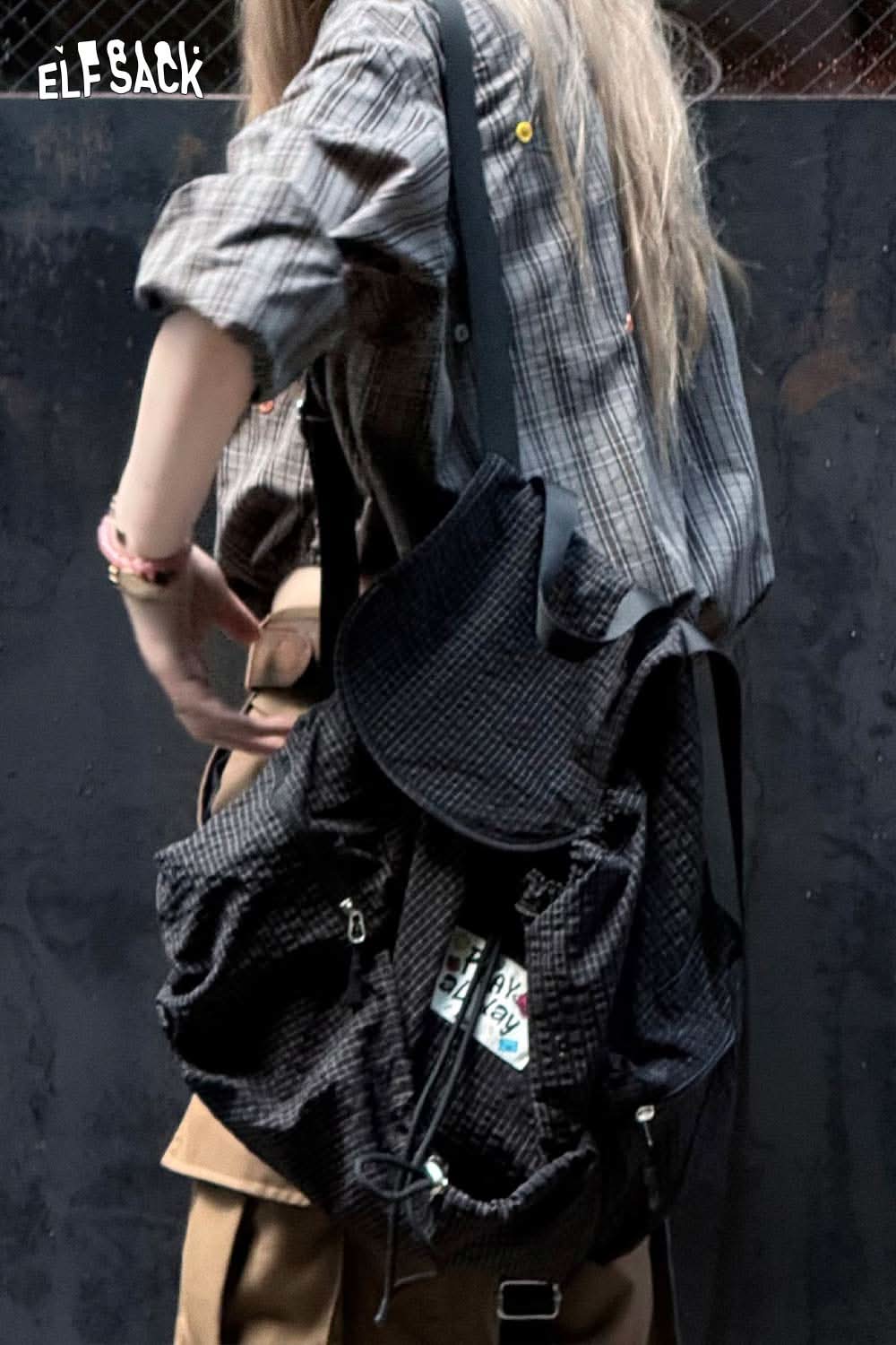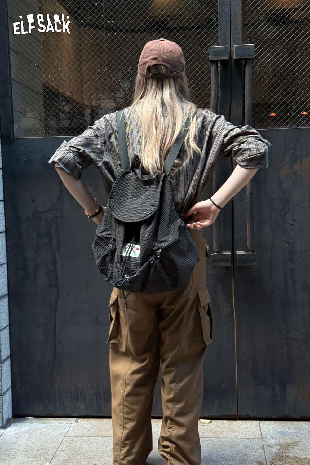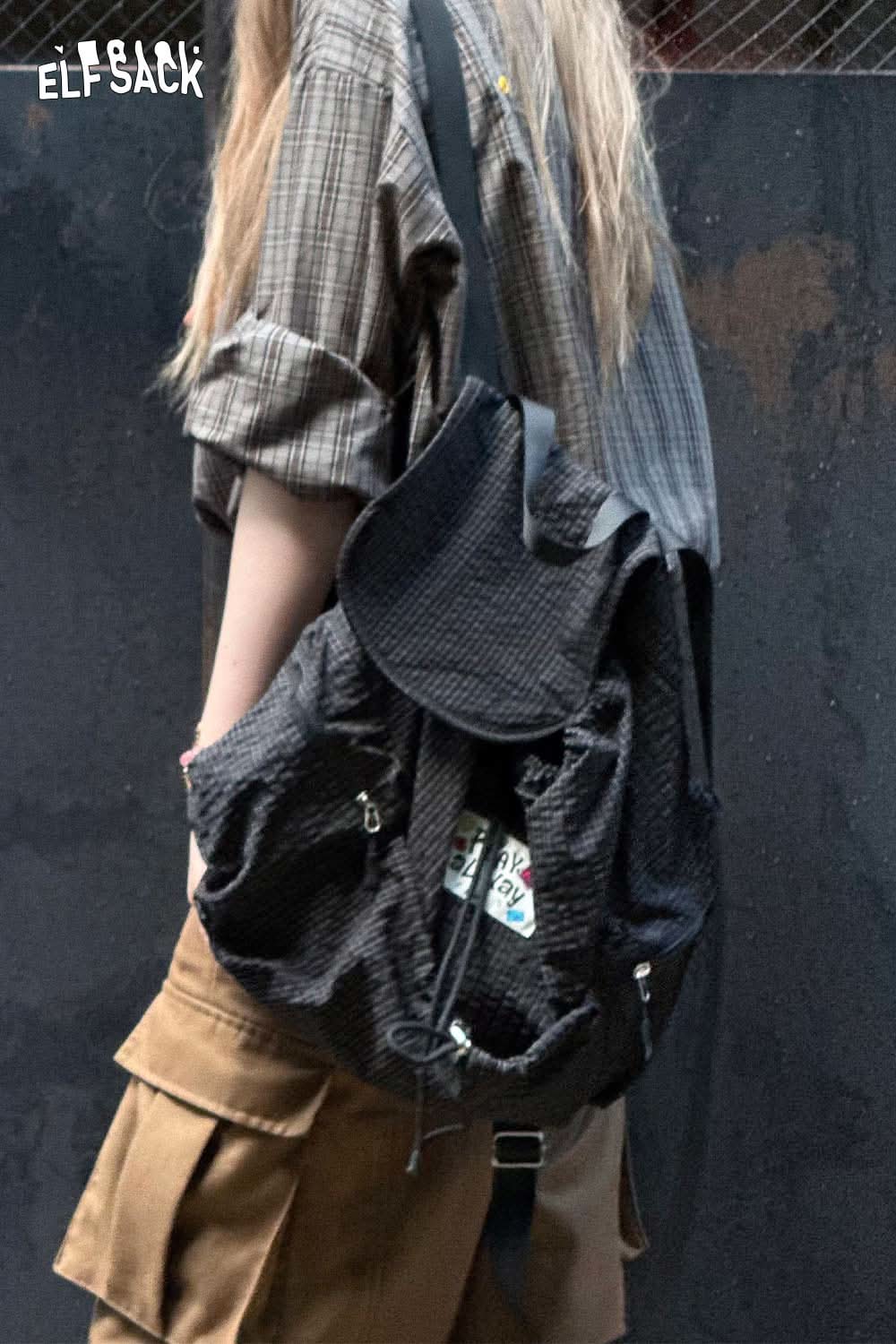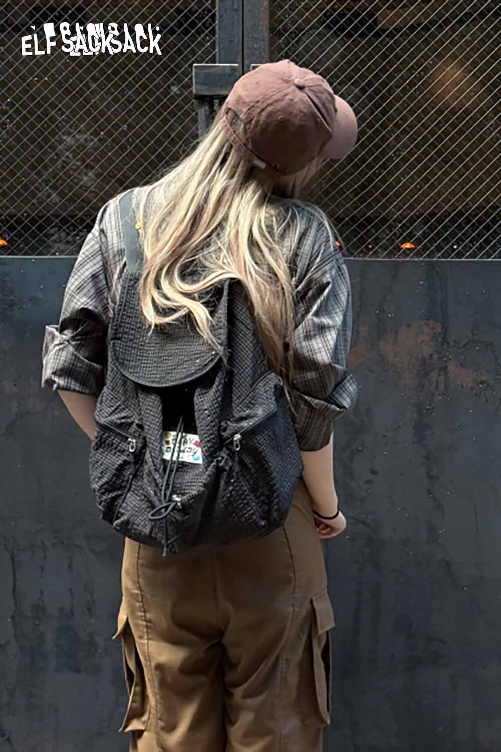 Soft Crinkled Texture Adjustable Drawstring Flap Closure Rucksack