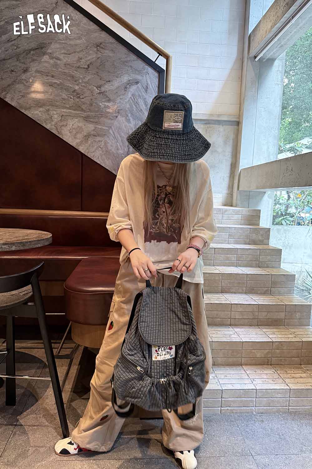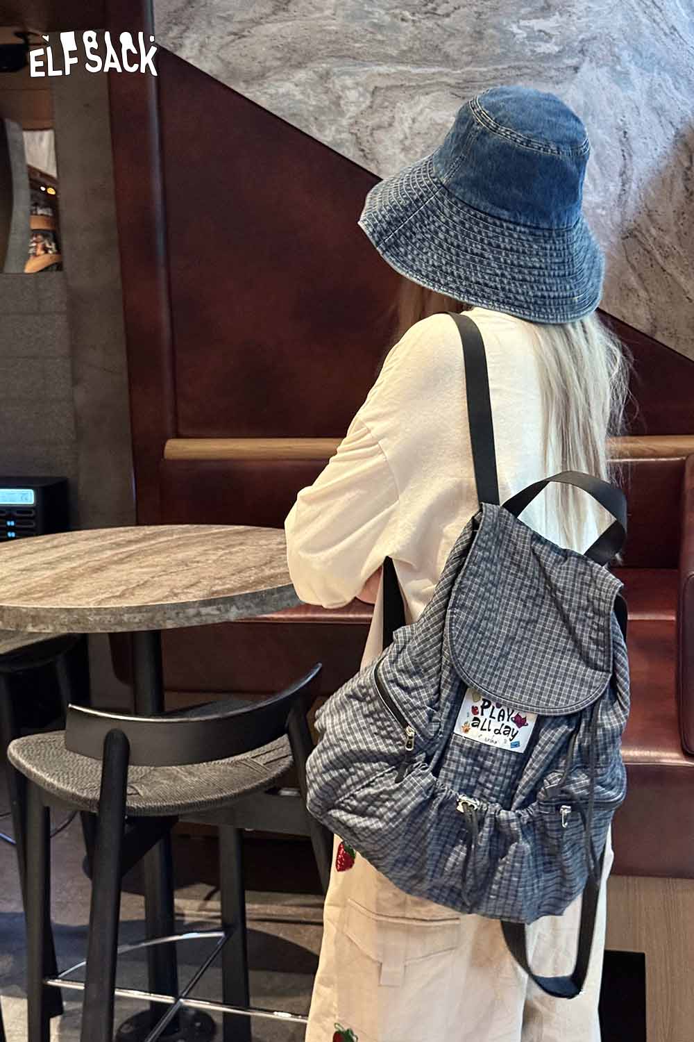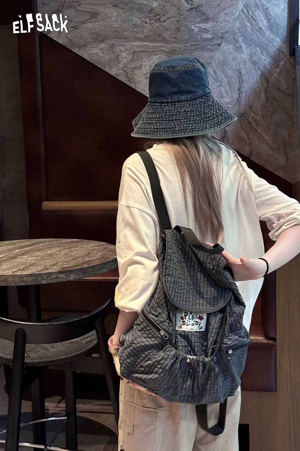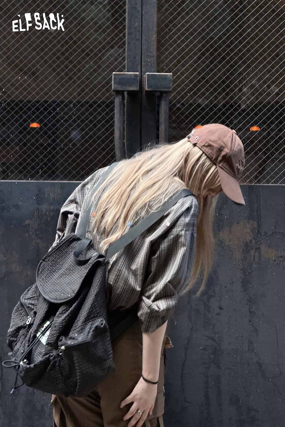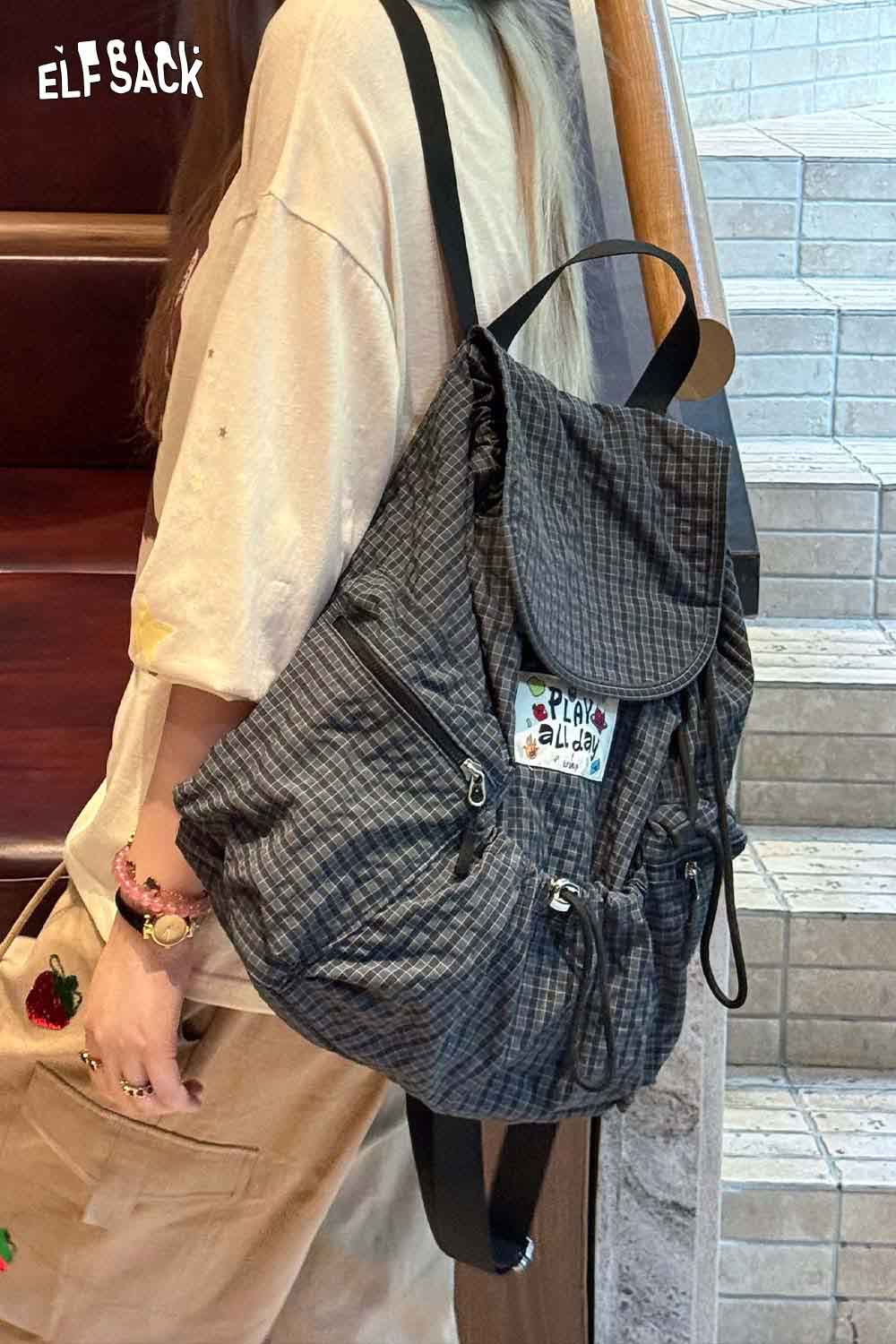 Soft Crinkled Texture Adjustable Drawstring Flap Closure Rucksack