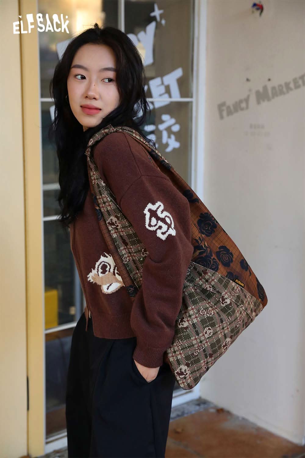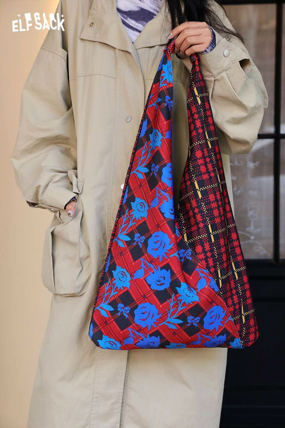 Vintage Casual Stripe Fabric Bow Graphic Patchwork Tote Bag