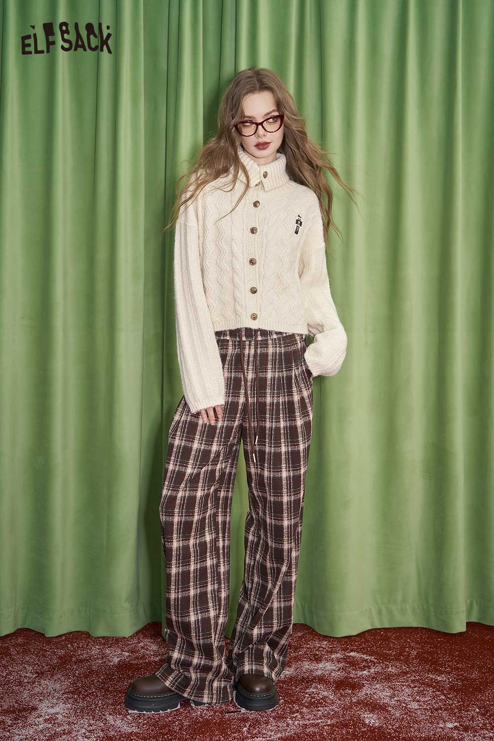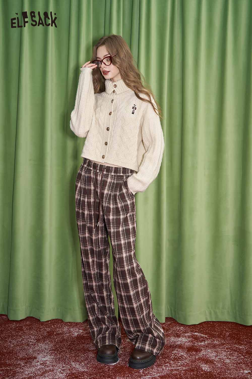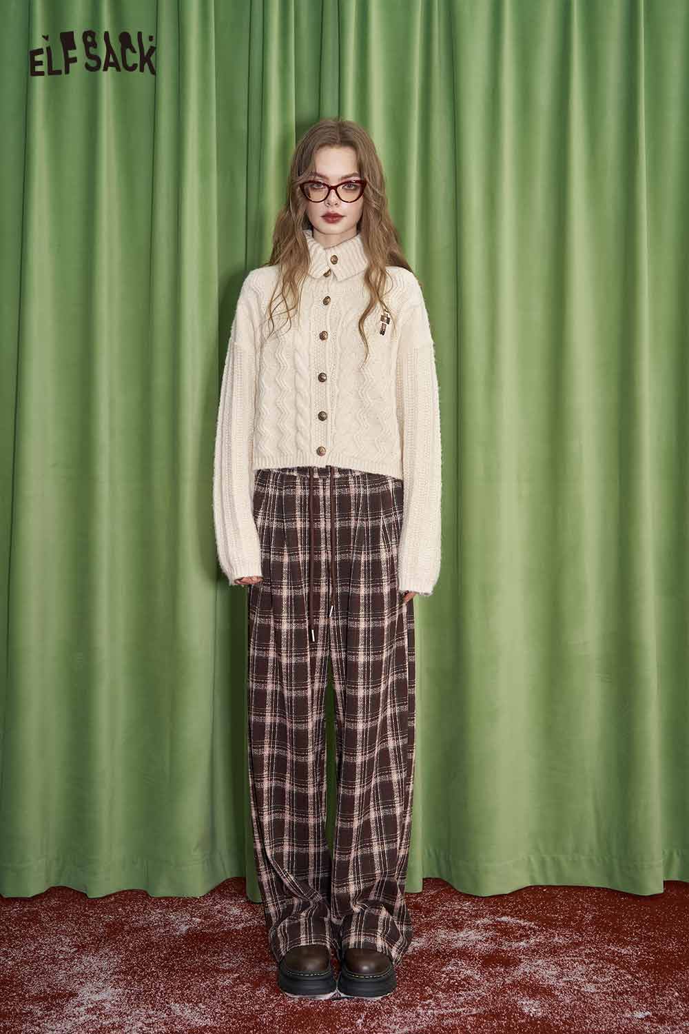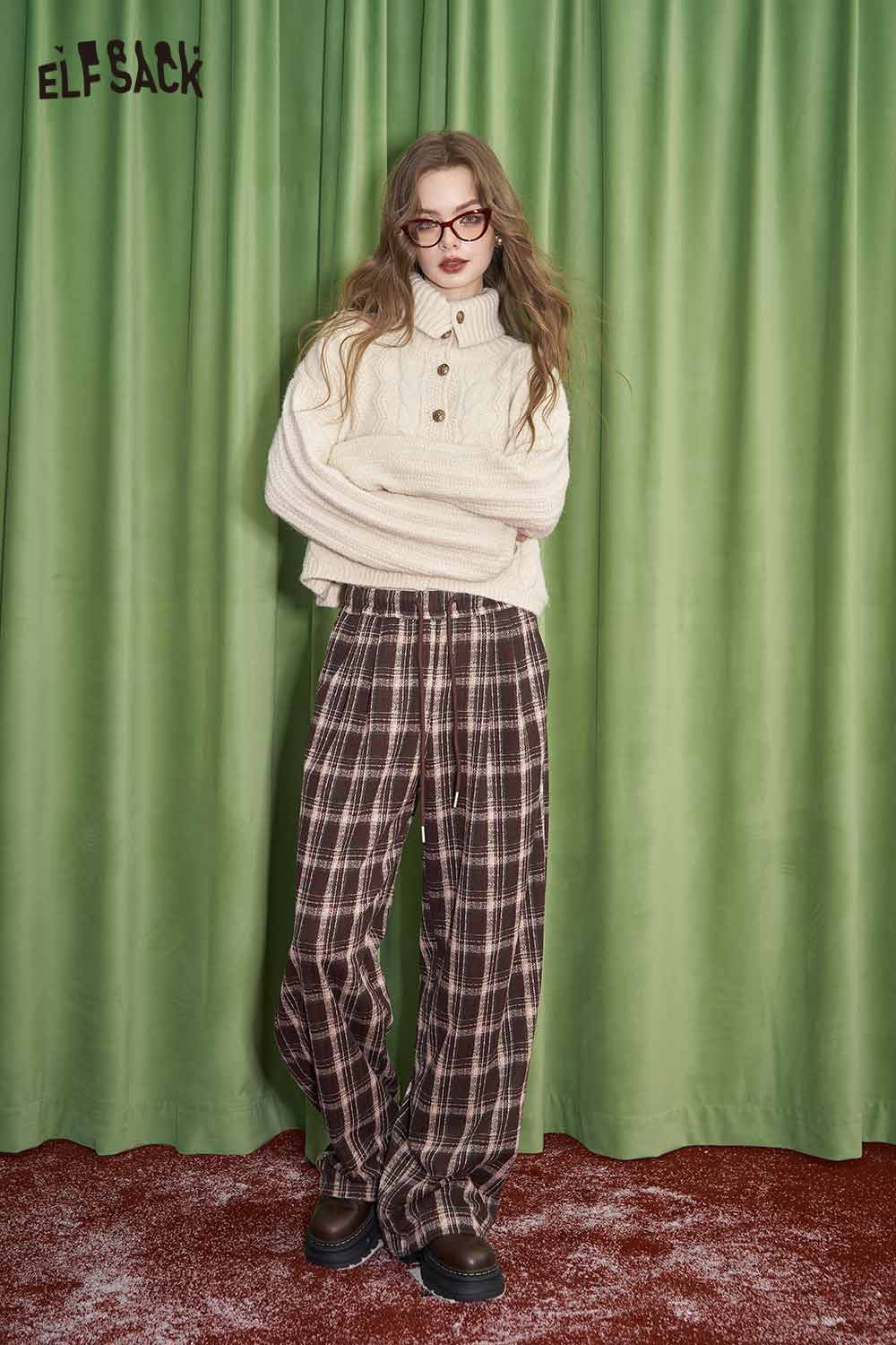 Breathable Lazy Style Vintage Plaid Straight Relaxed Pants
