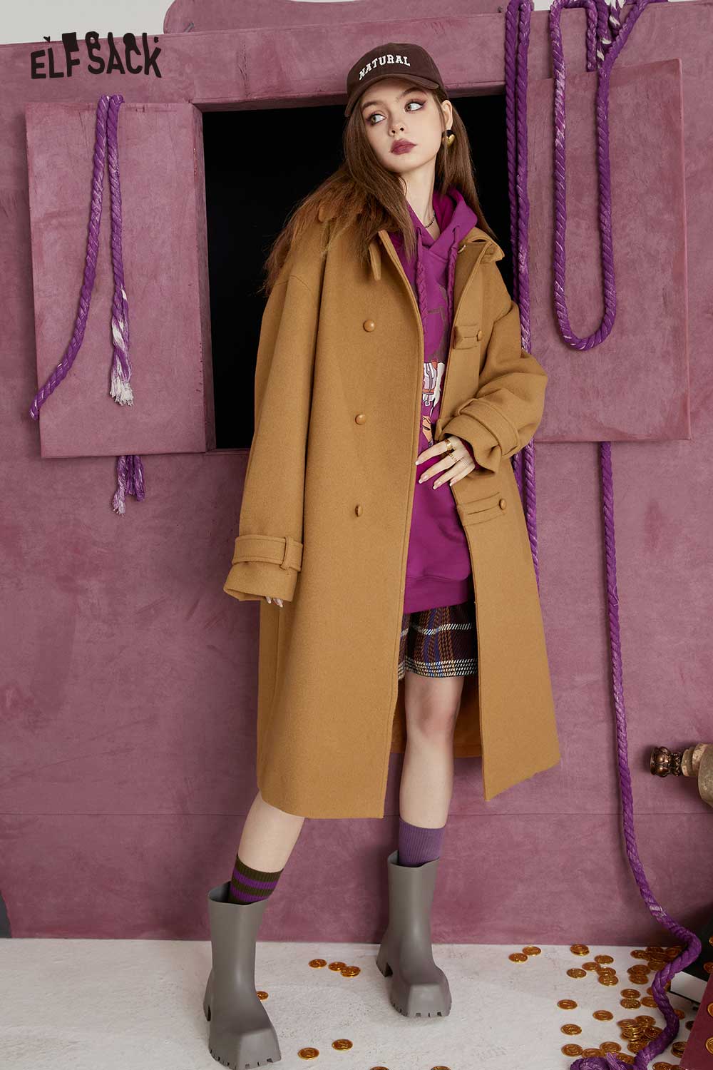 Soft Vintage Double Breasted Mid Length Solid Coat