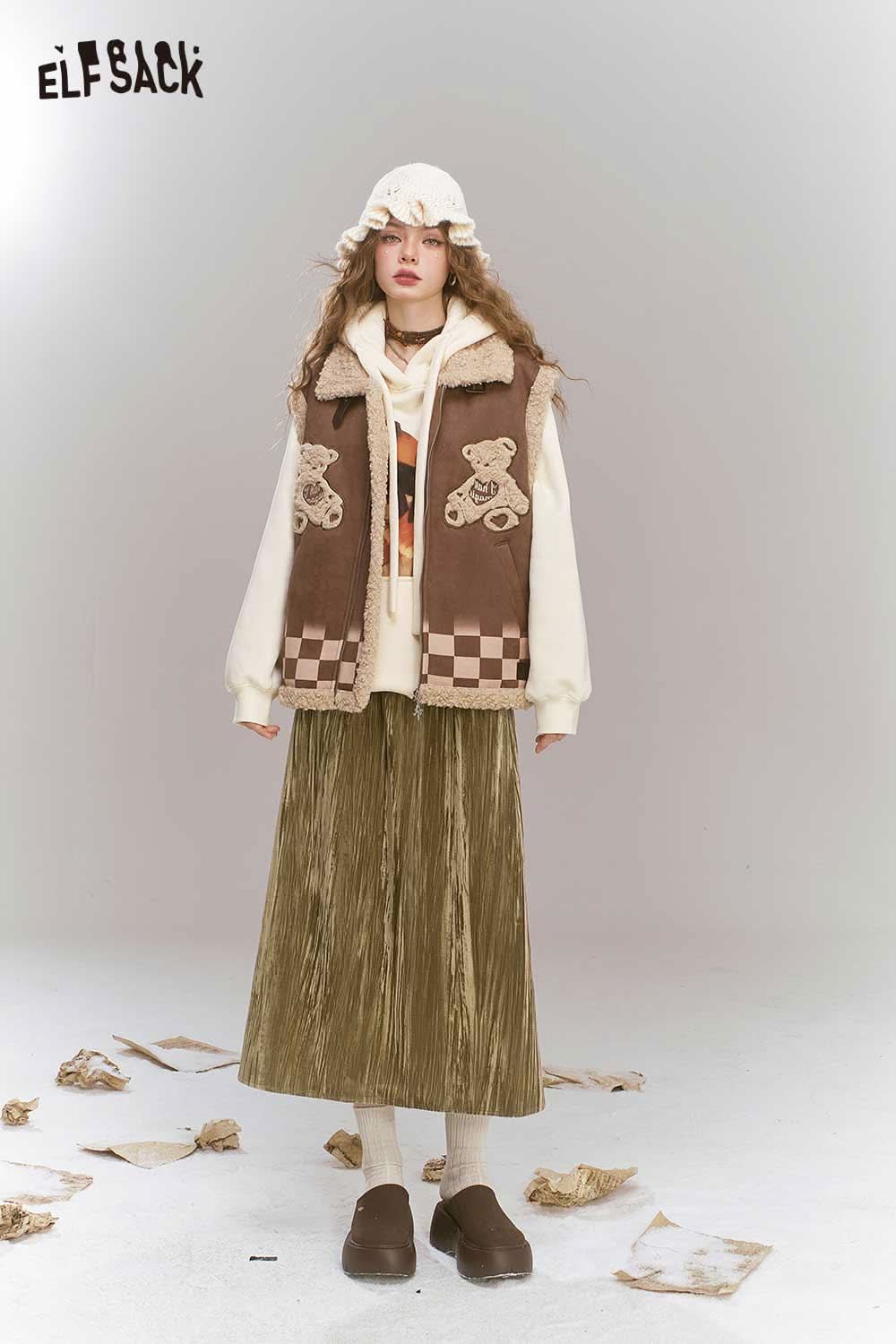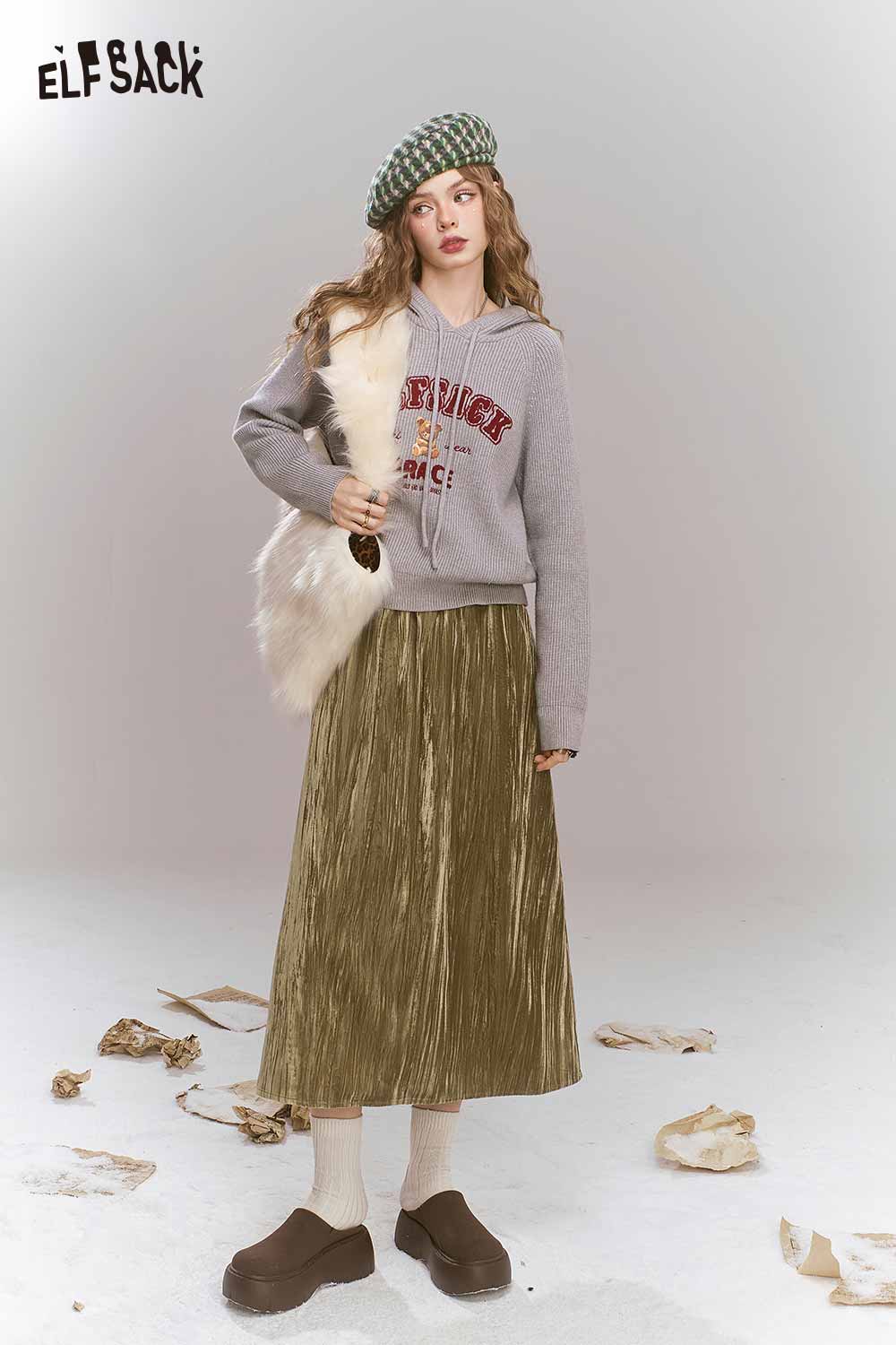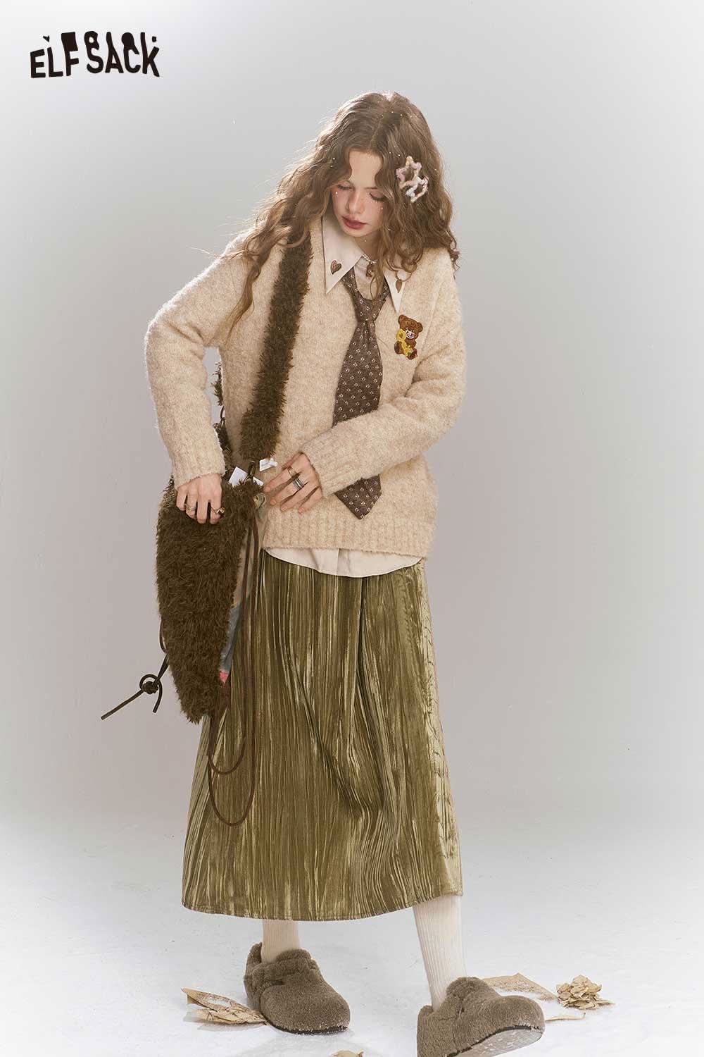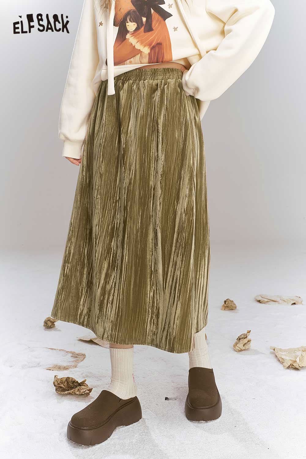 Soft Vintage Velvet 3D Pleated Straight Long Skirt