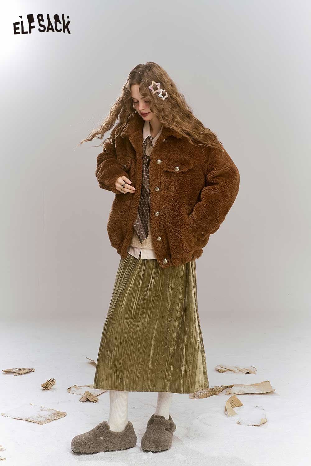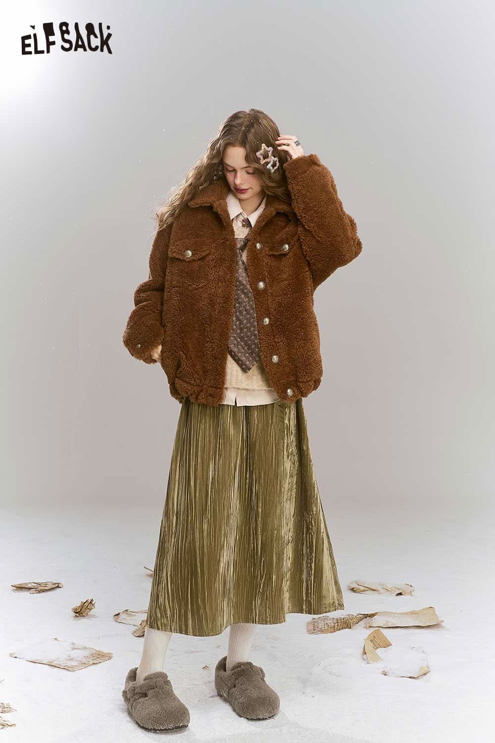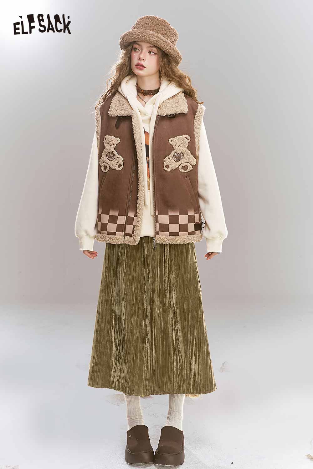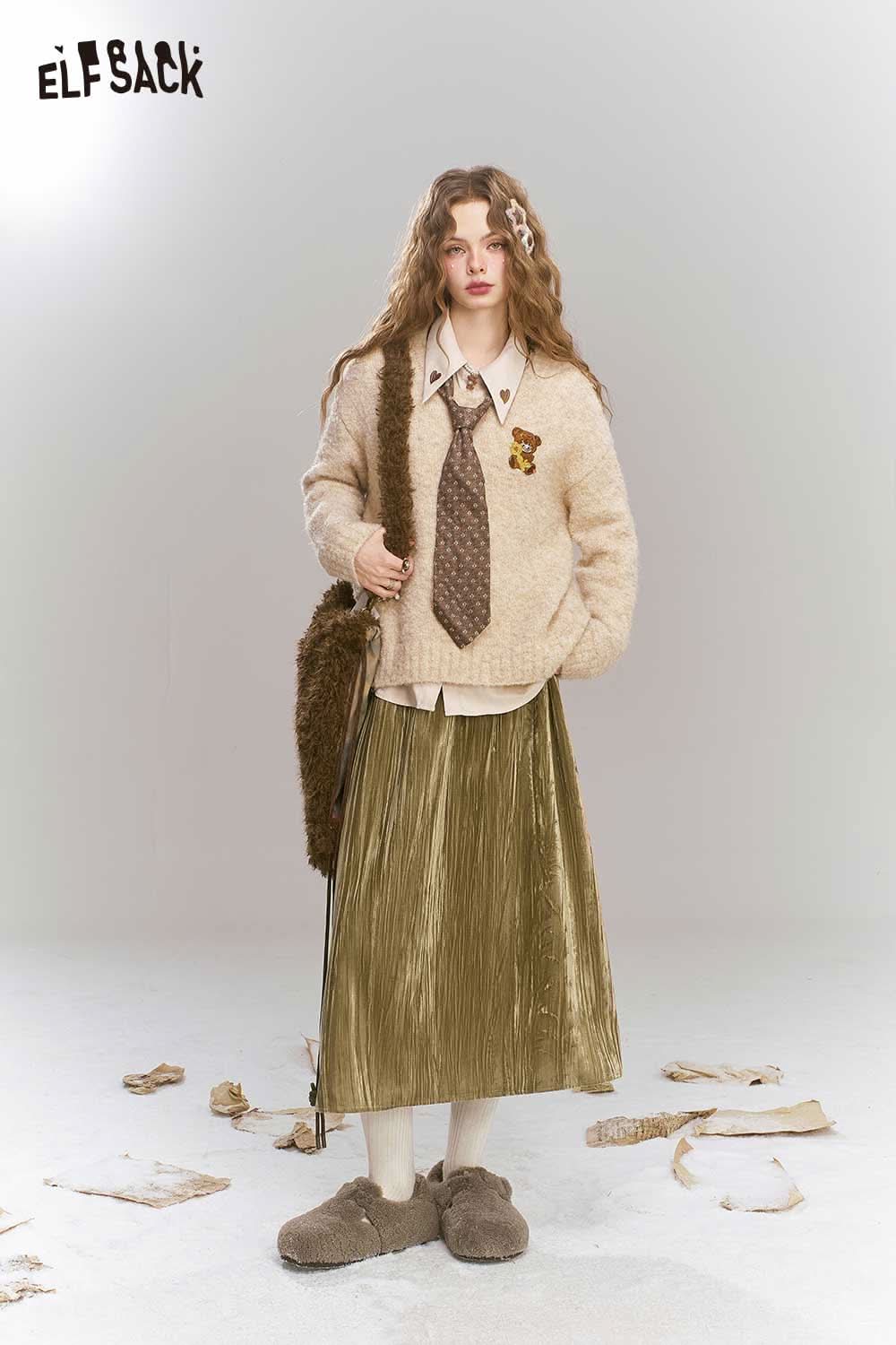 Soft Vintage Velvet 3D Pleated Straight Long Skirt