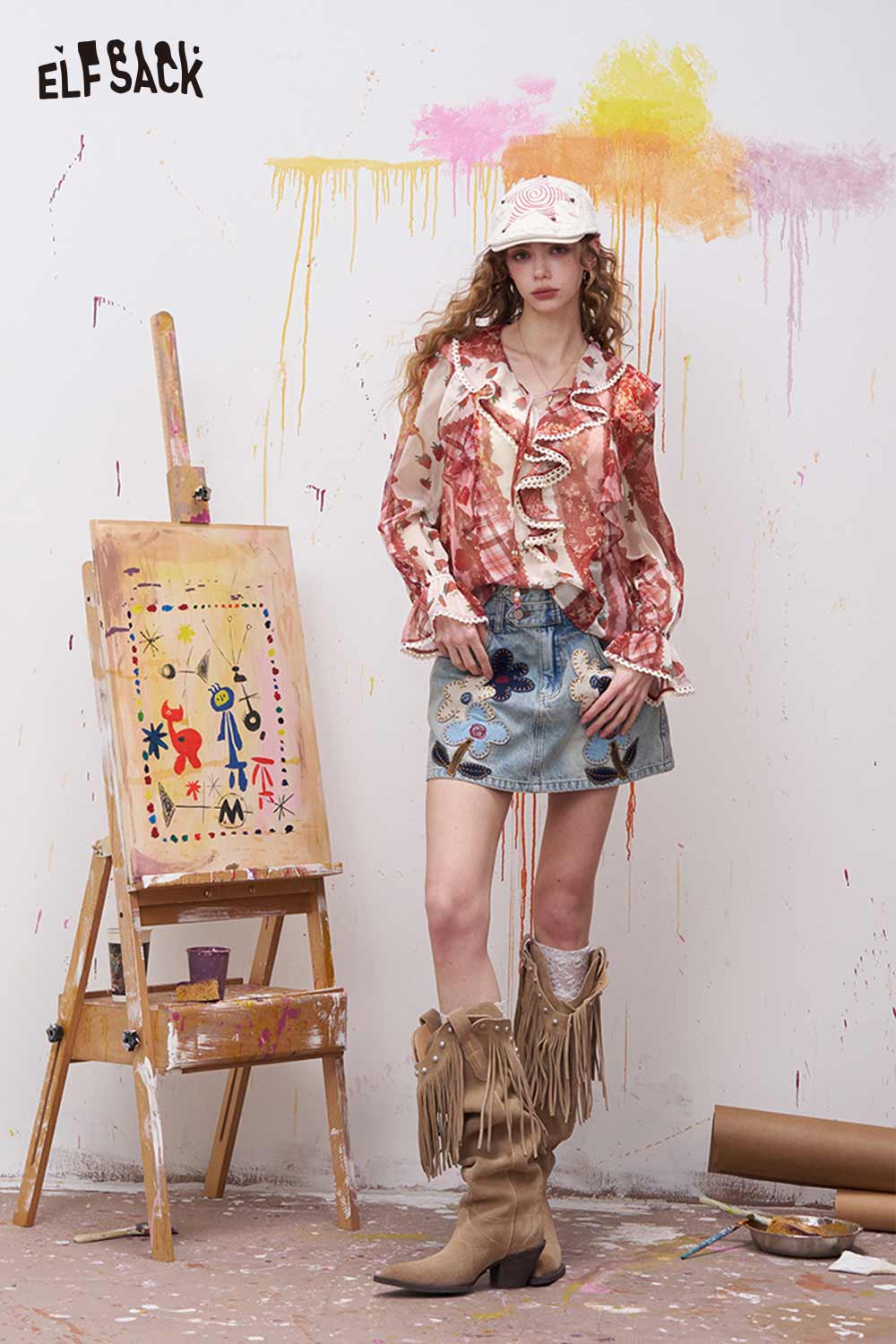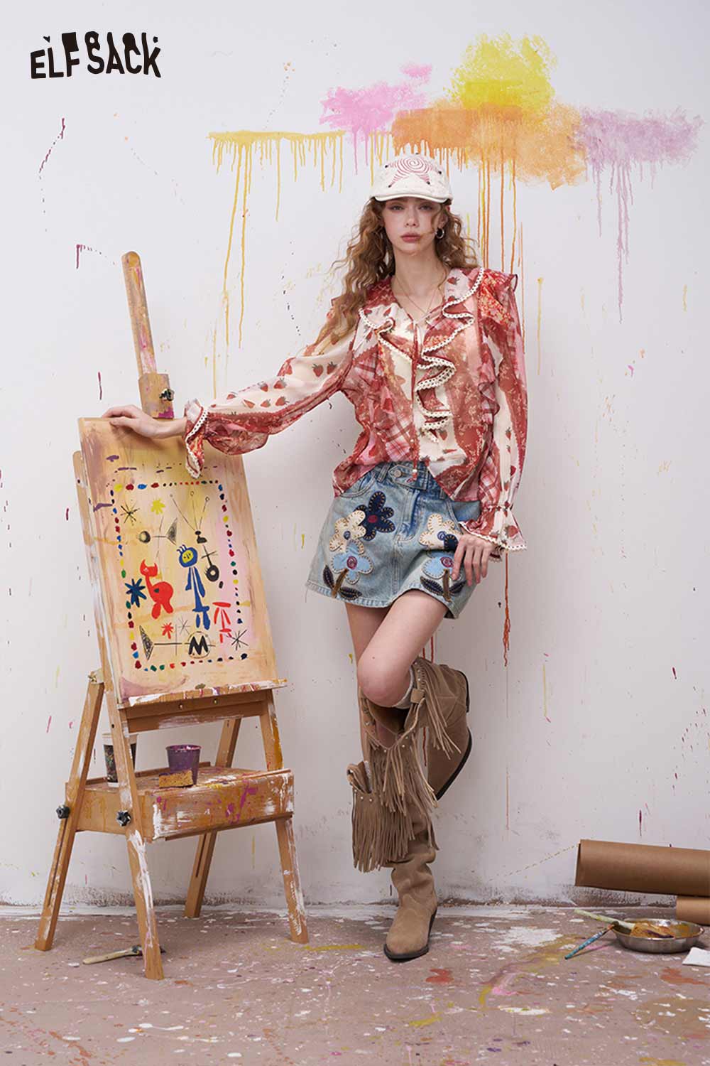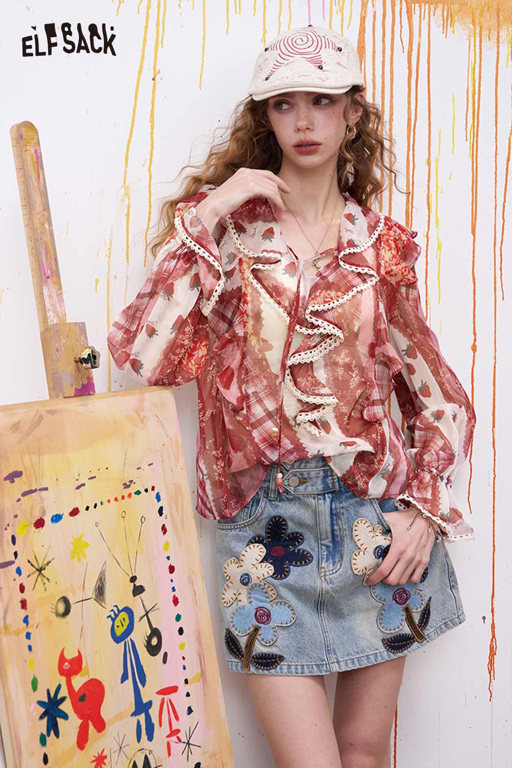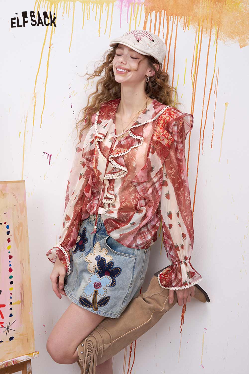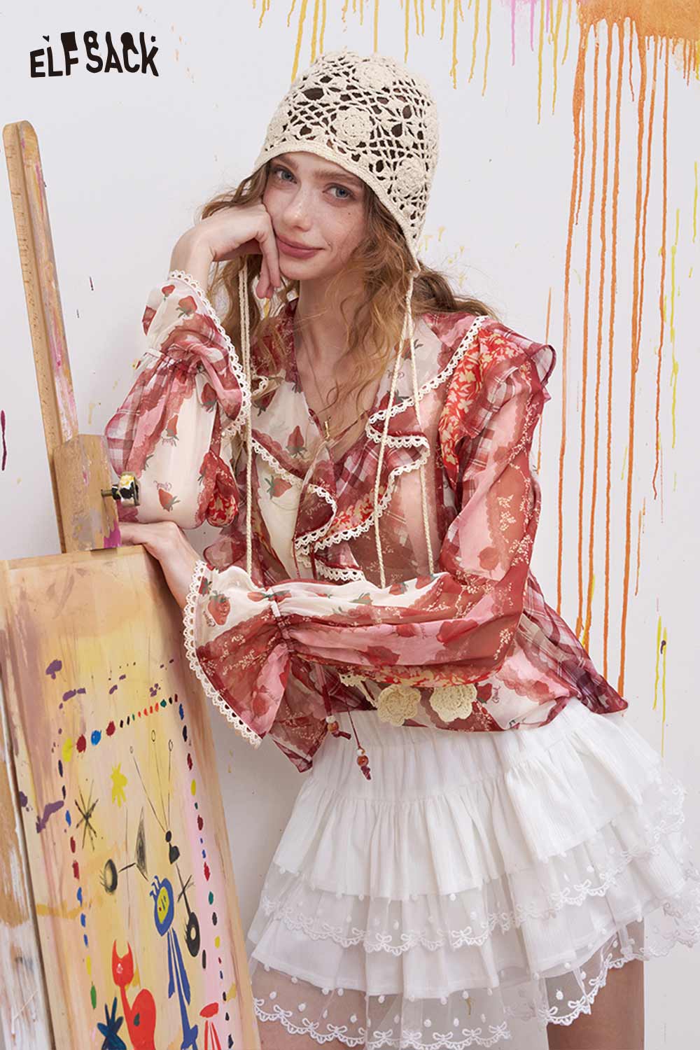 Strawberry Ruffled Chiffon Blouse
