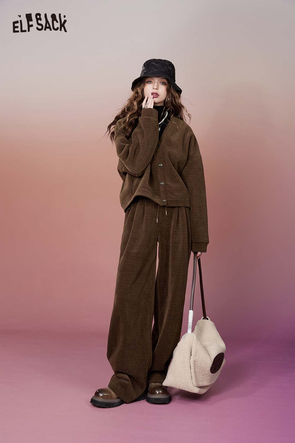 Classic Two Piece Set Lazy Style Knit Hoodie Pants Set
