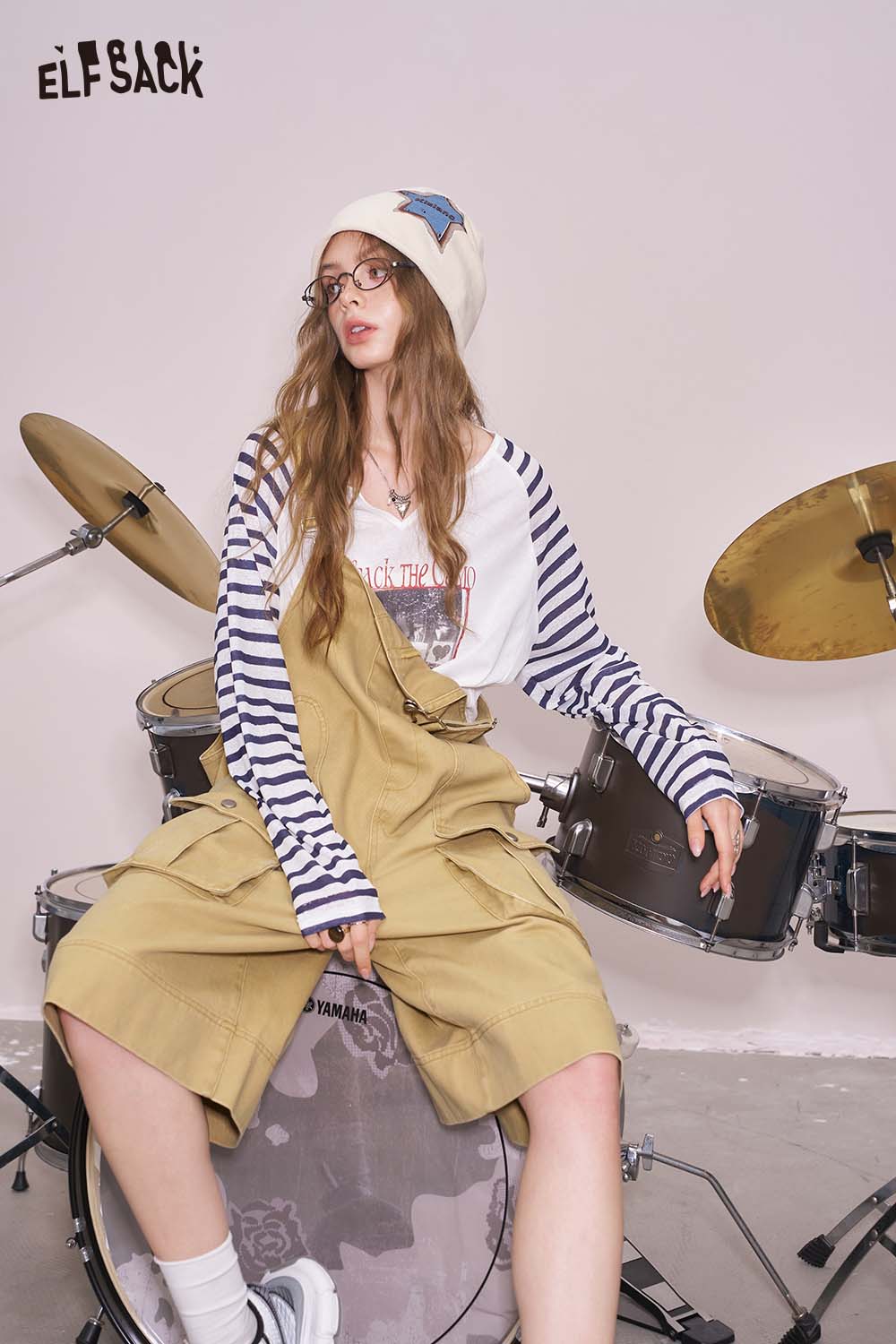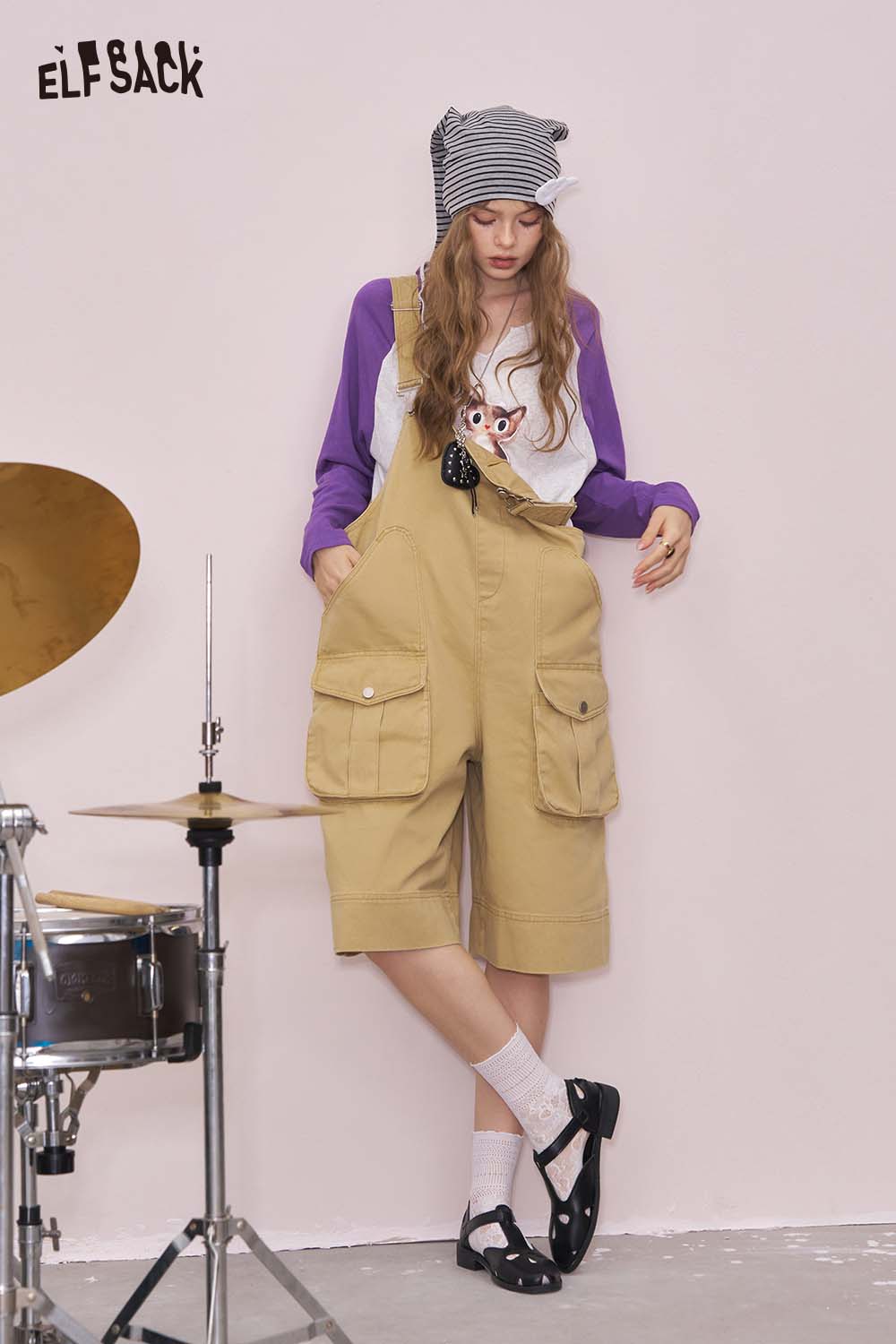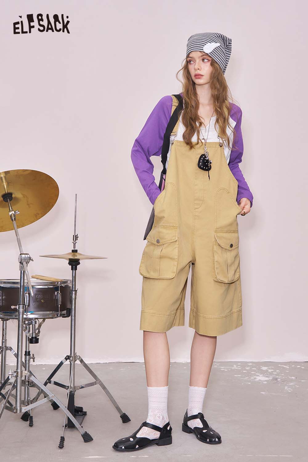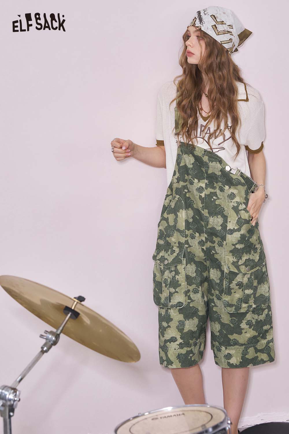 Printed Jumpsuit Color Block Utility Sweet Cool Shorts