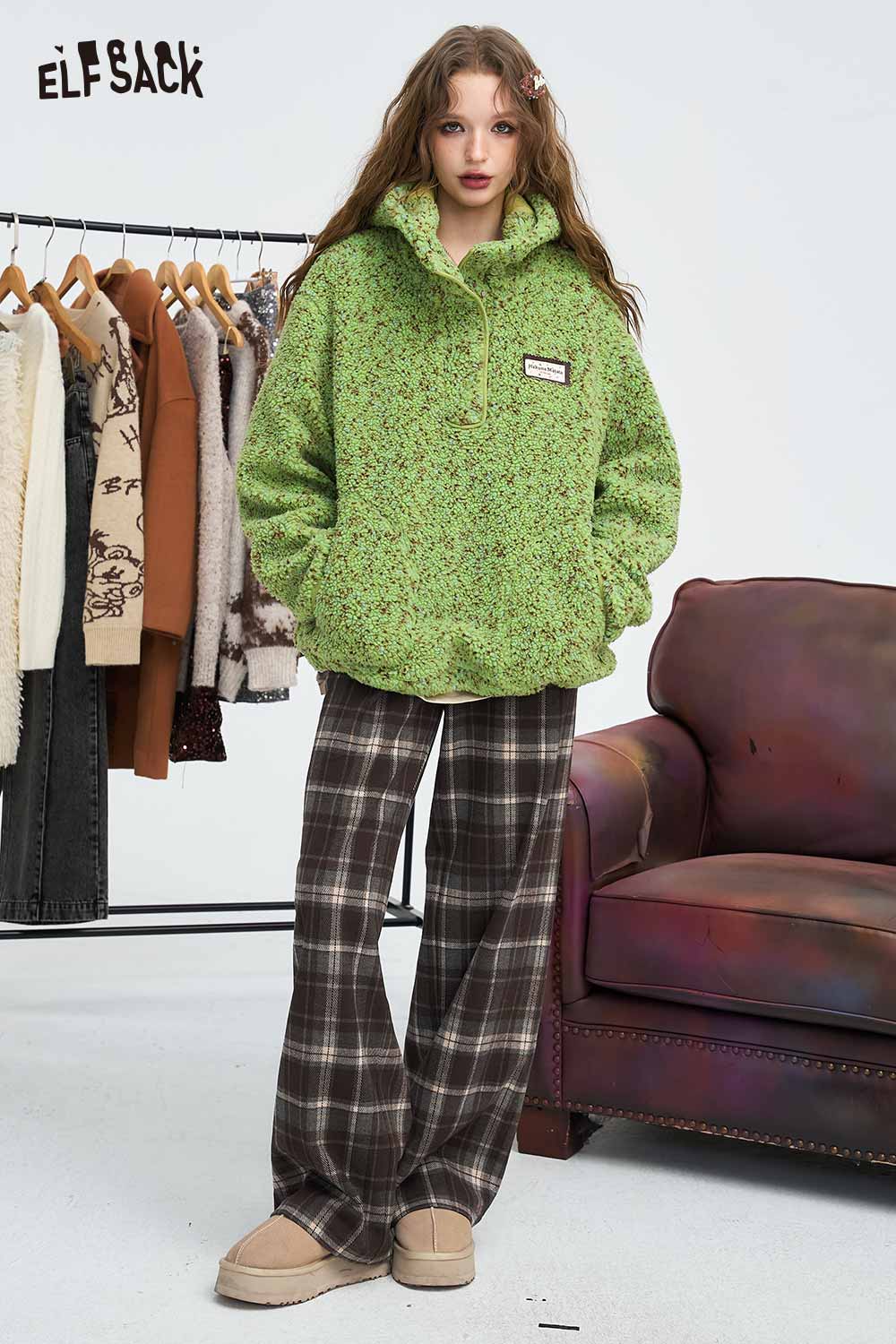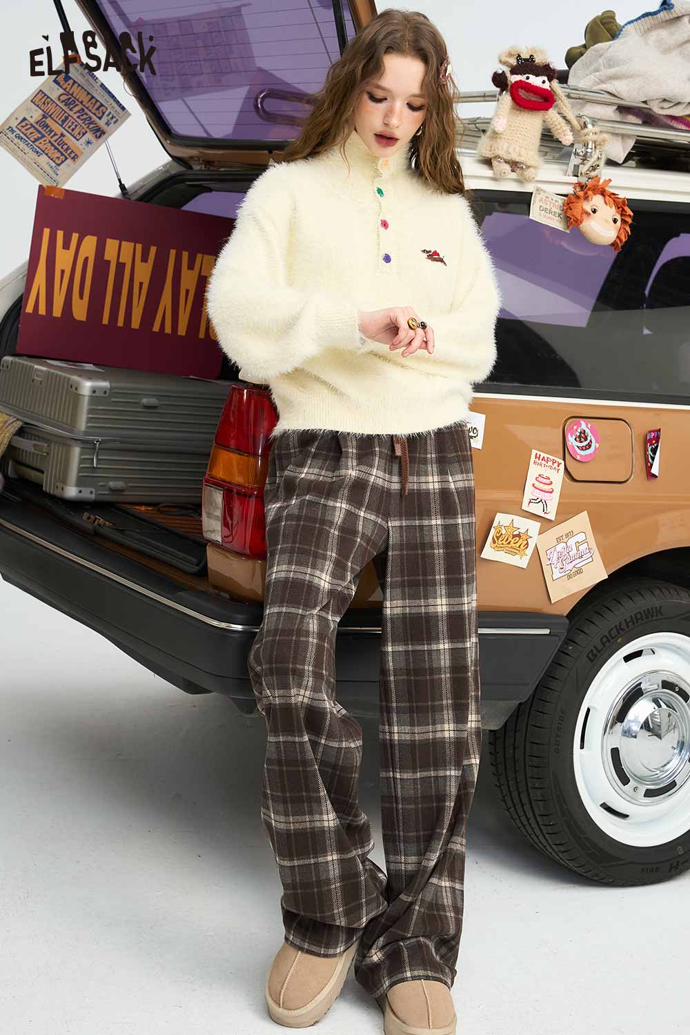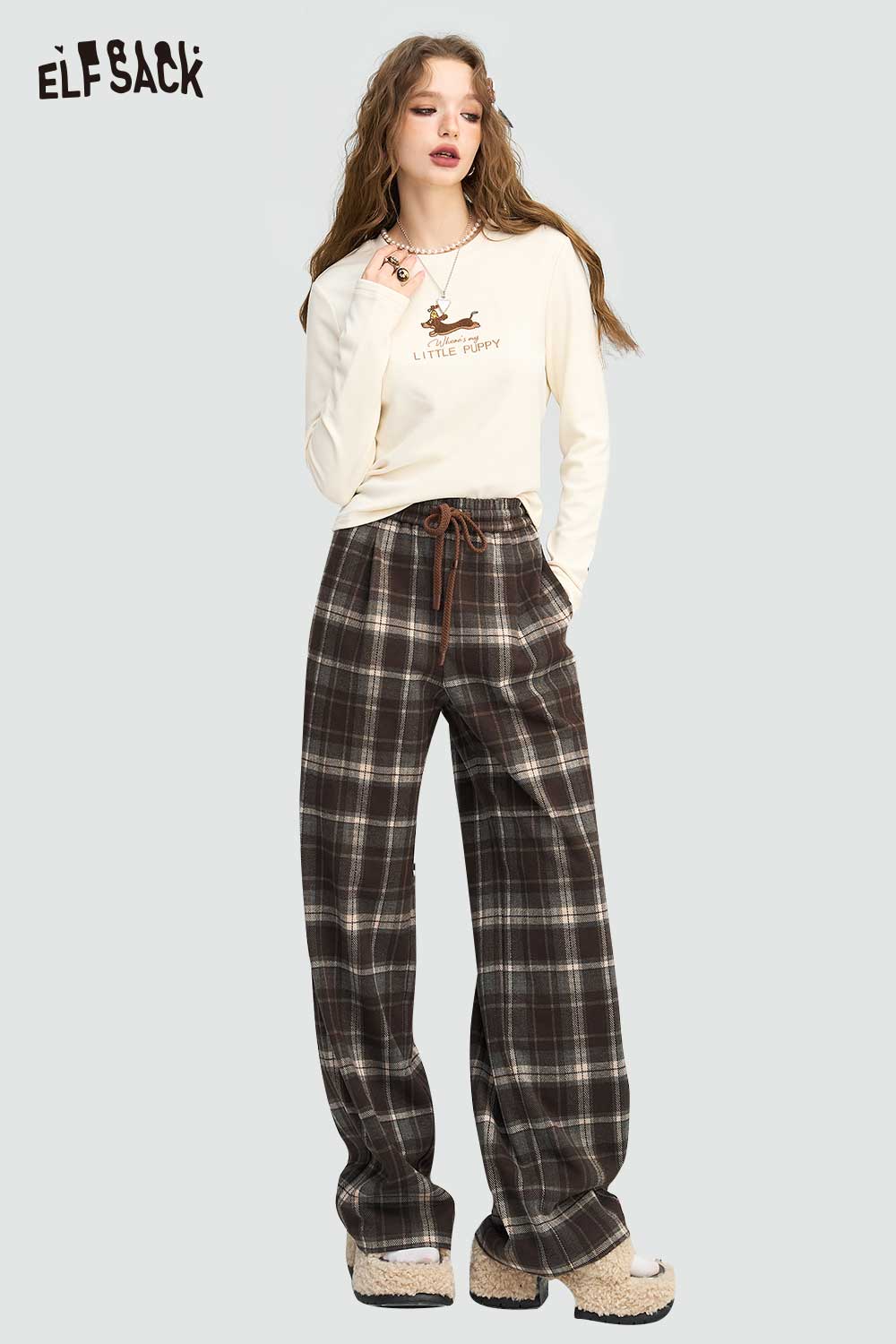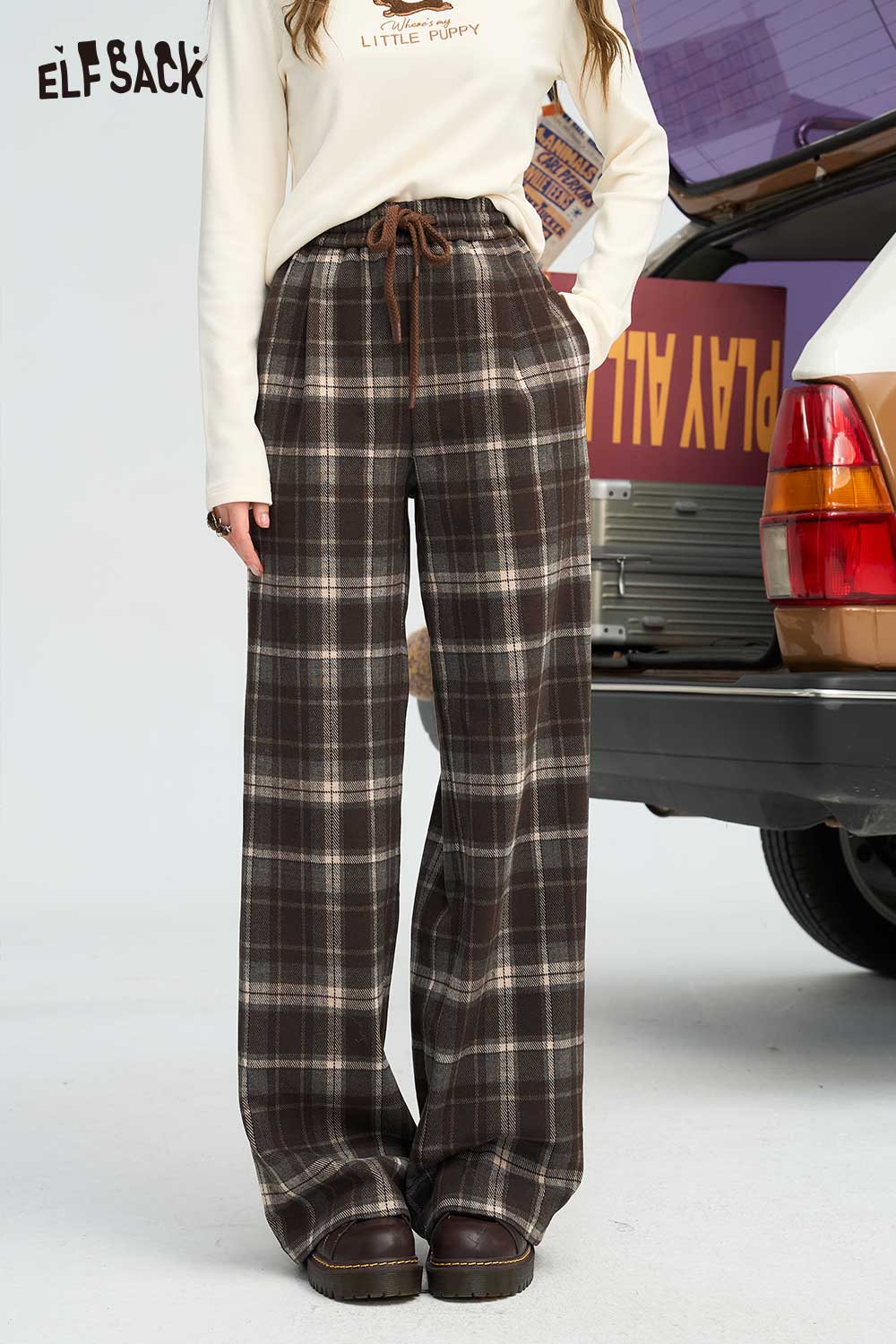 Relaxed Vintage Plaid Casual Wide Leg Loose Pants
