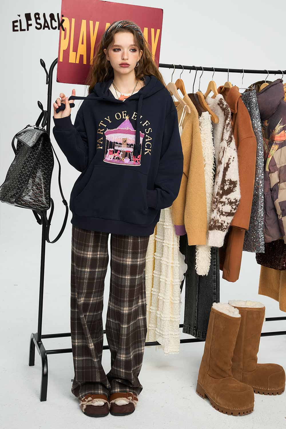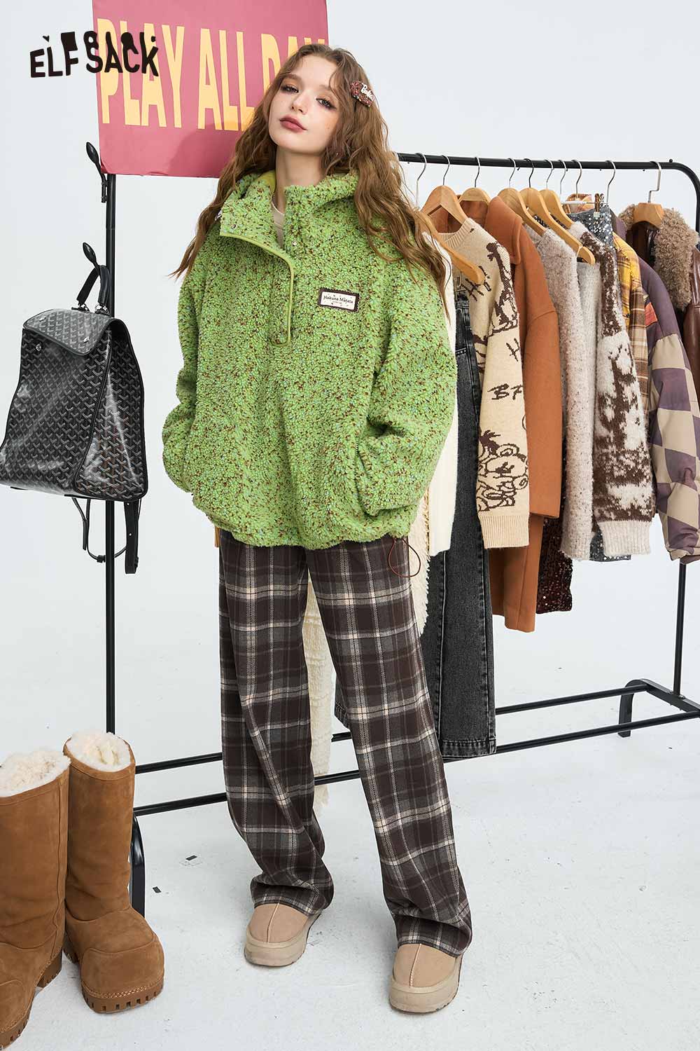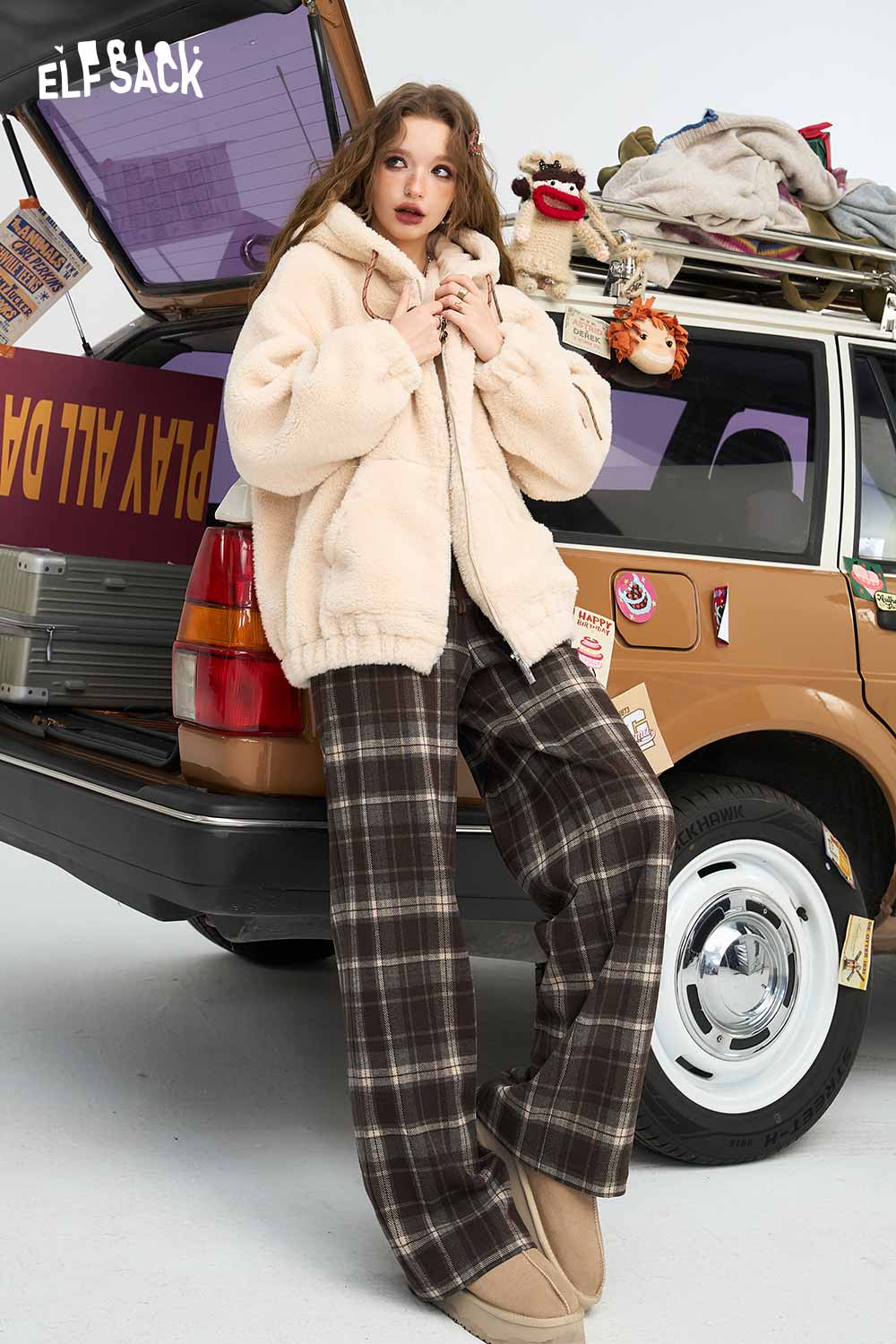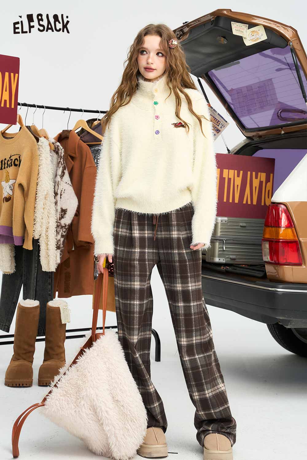Relaxed Vintage Plaid Casual Wide Leg Loose Pants
